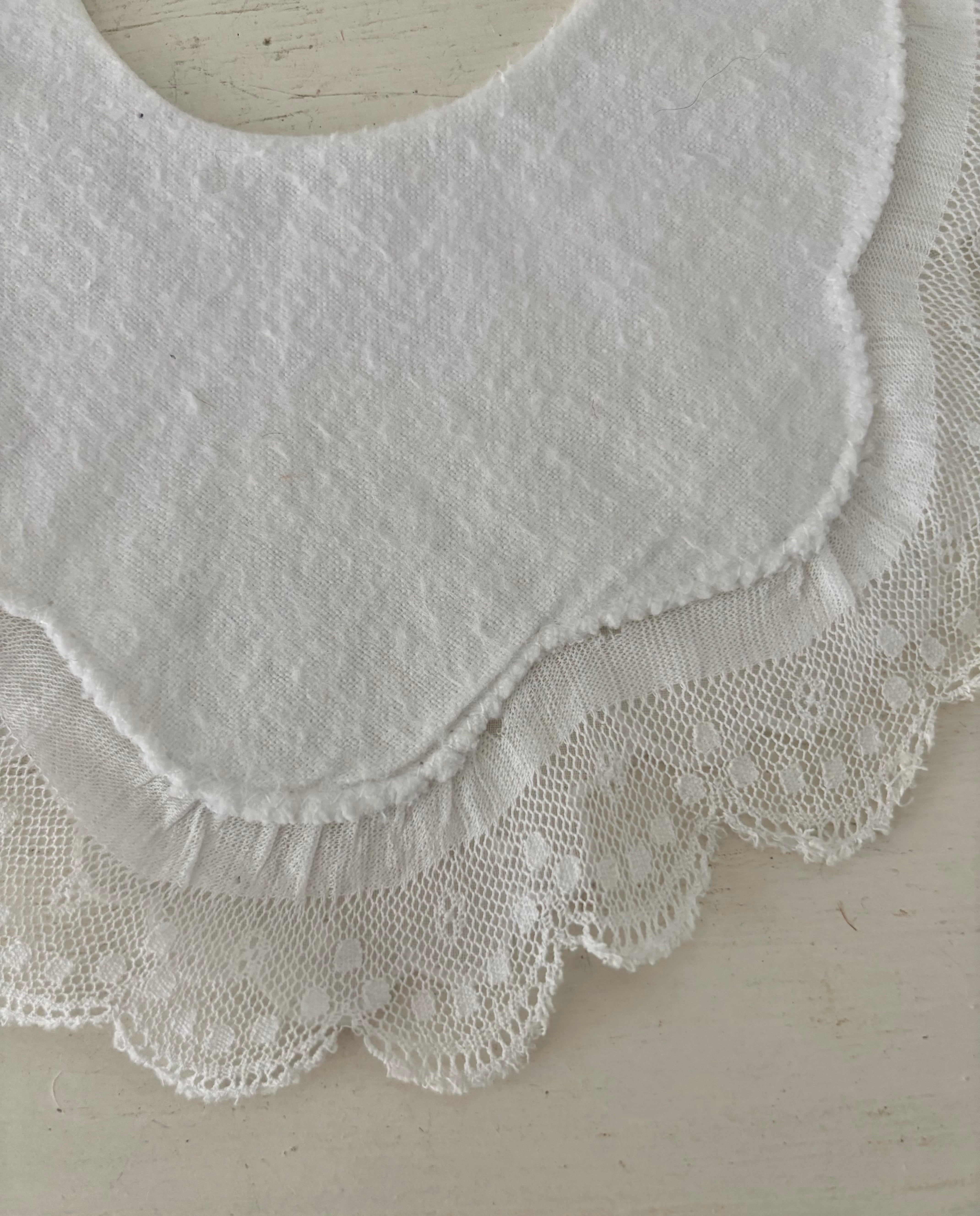 Bébéの文字とカットワークのお花の刺繍が施された可愛いスタイです。リムやドットのホワイトワークも可愛いです。裏側に生地の薄れや破れ(写真5、6枚目)はありますが良い状態です。内側にボタンが付いています。