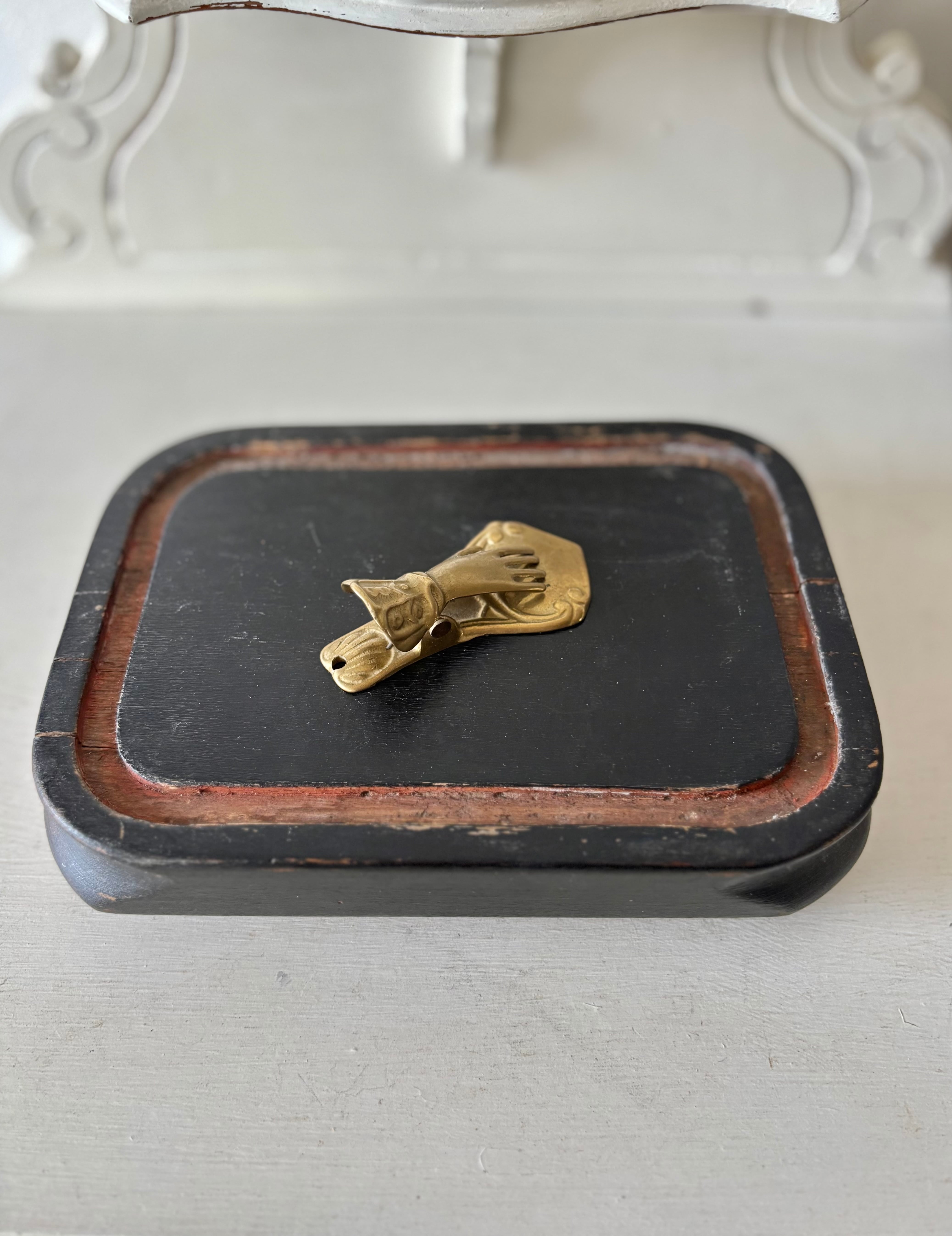 ヴィクトリアンスタイルのエレガントな袖口とアール・ヌーヴォーの美しい装飾が施されとても素敵です。小さいですが真鍮製でずっしり重さがあります。古いもので変色がありますが、バネの状態も良好で全体的にグッドコンディションです。壁掛けも出来ます。