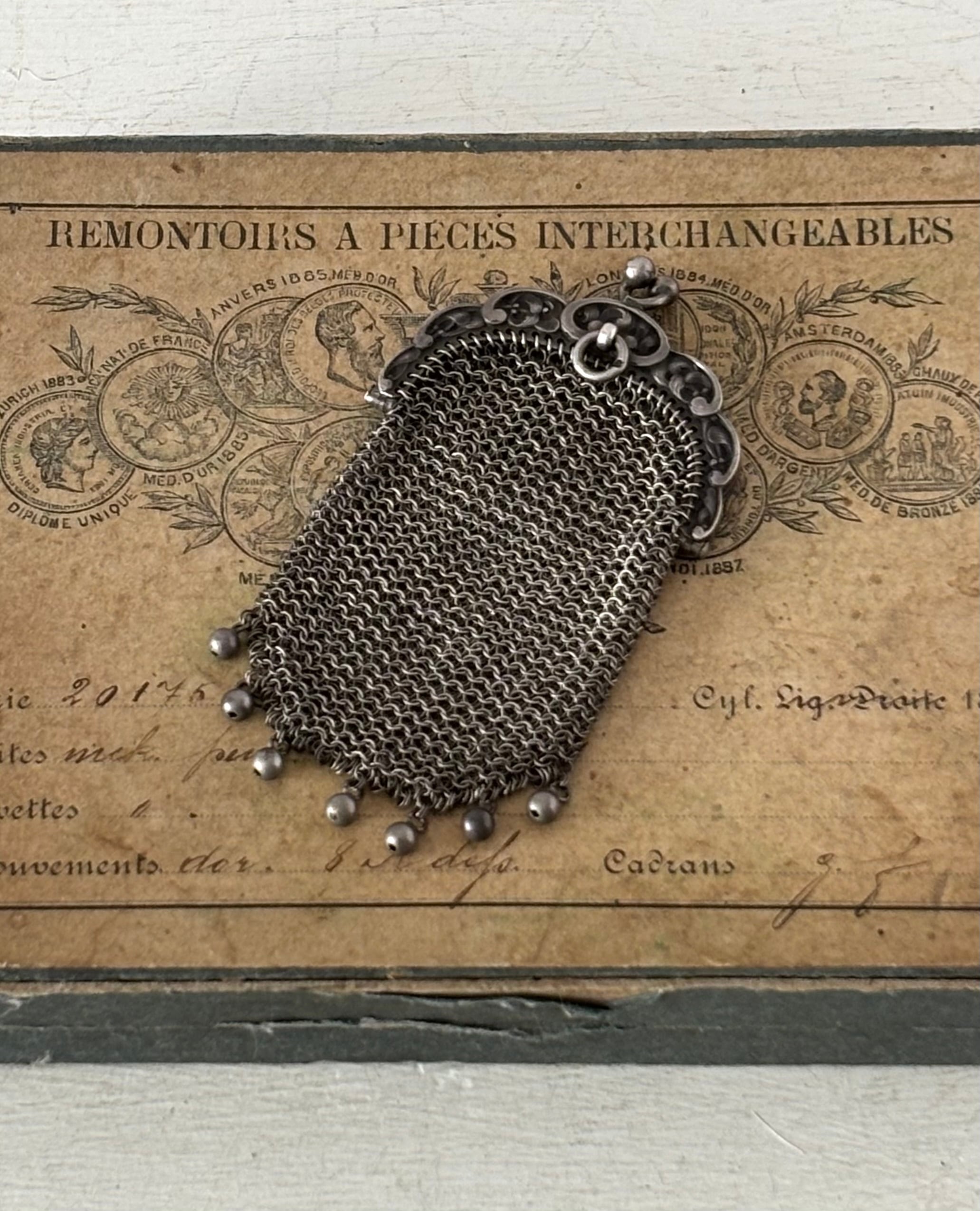手のひらにそっと収まる、小さな銀細工の世界。19世紀末〜1900年代初頭にかけてつくられた、フランス銀製メッシュパースです。