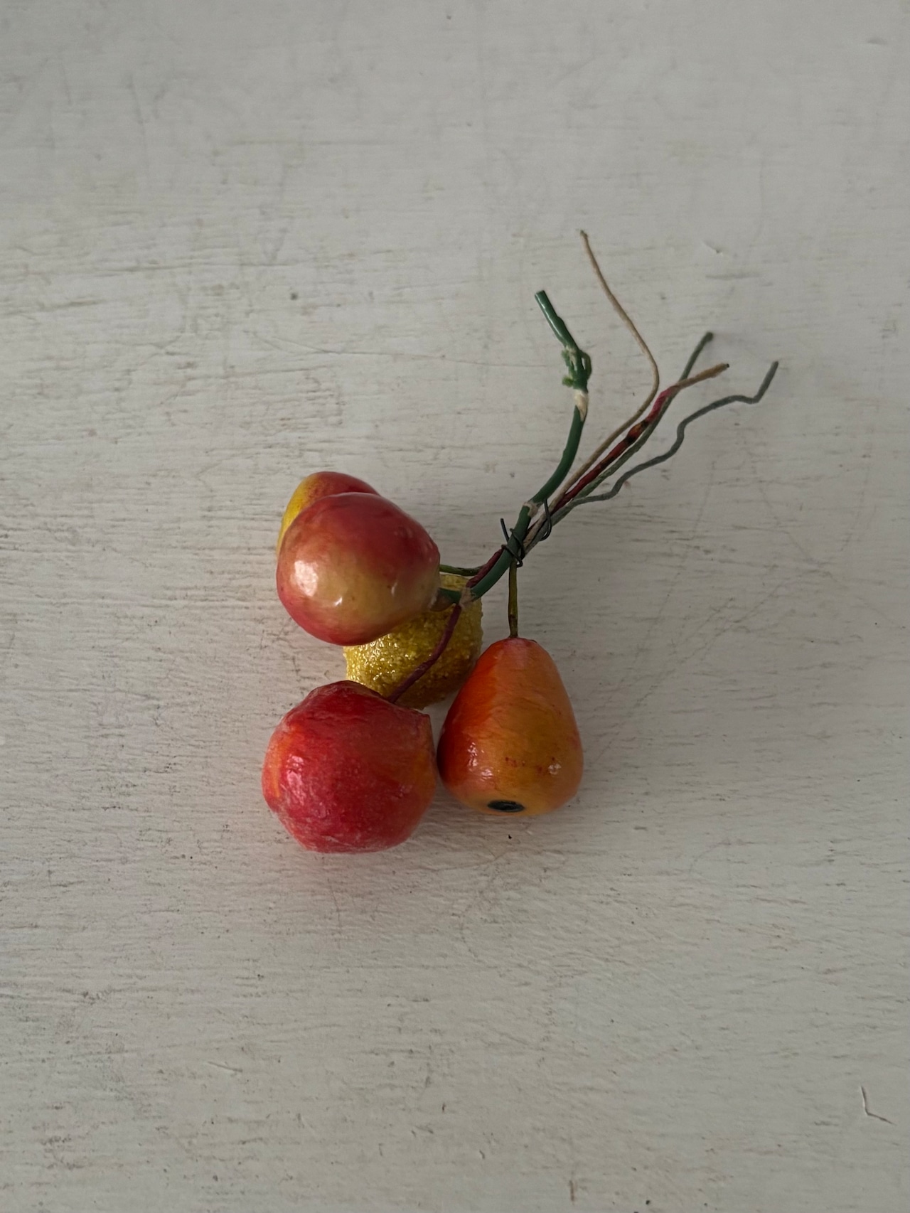 1950〜70年代頃のヴィンテージ、ワイヤーフルーツ。手塗りの果実や砂糖菓子のような実が束ねられた、素朴で可愛らしいクリスマスデコレーションです。