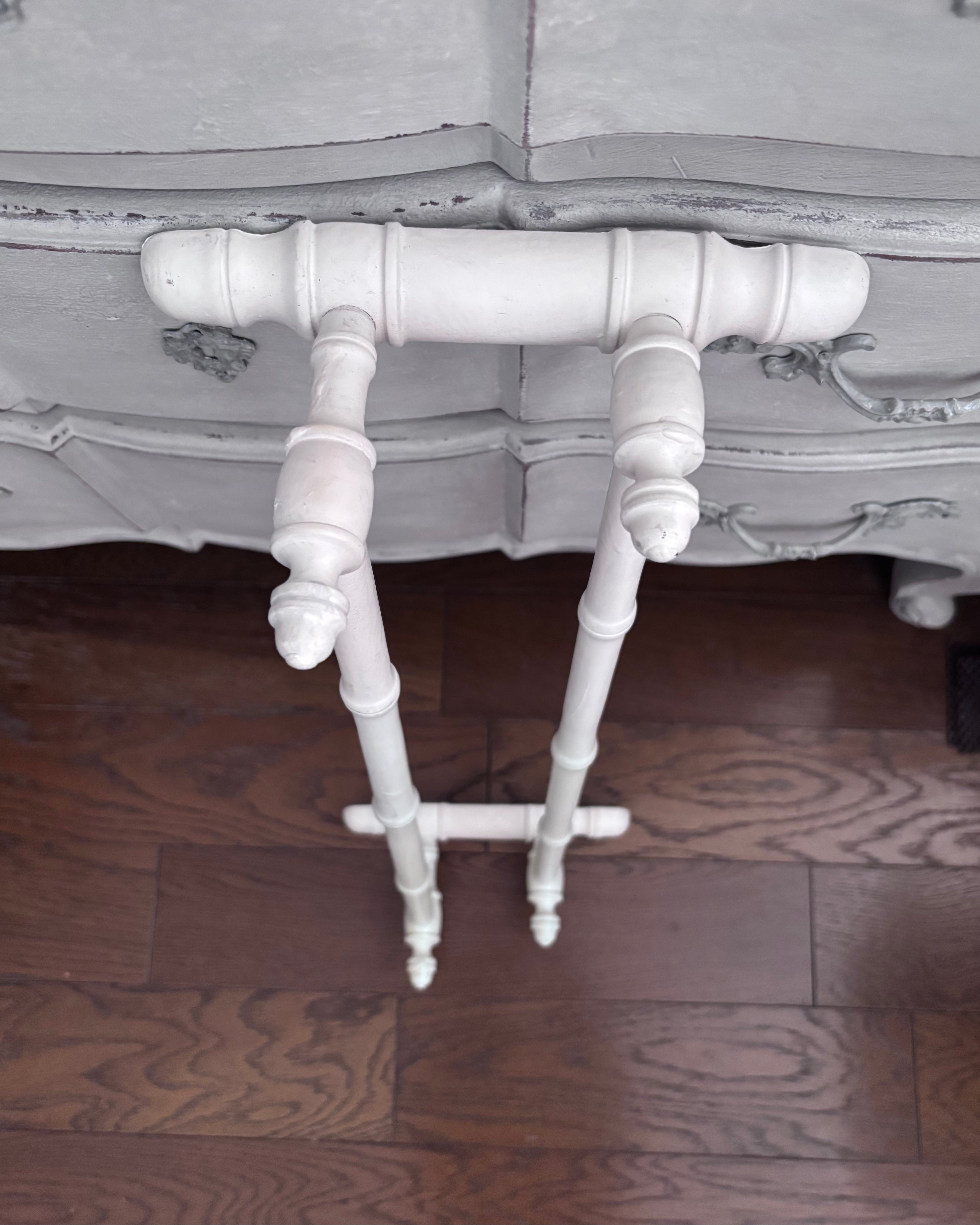 白いペイント仕上げは全体に比較的なめらかで、経年による変色やペイント剥がれと小傷が見られますが、長く実用として使われてきたブロカントならではの風合いとしてお楽しみください。
