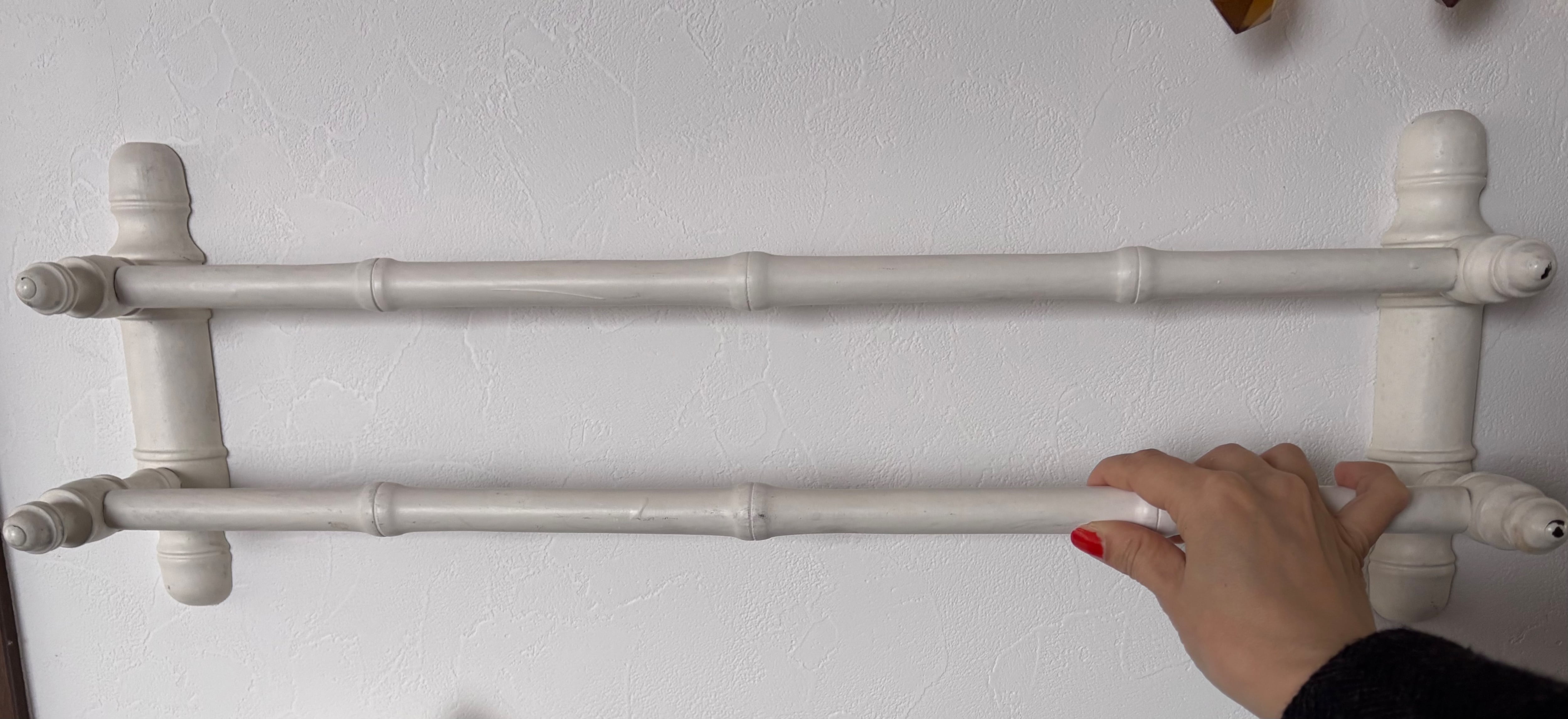 横幅59cm と、日本の住空間にも取り入れやすい扱いやすいサイズ感で、タオルやリネン、軽い衣類などをすっきりと掛けてお使いいただけます。