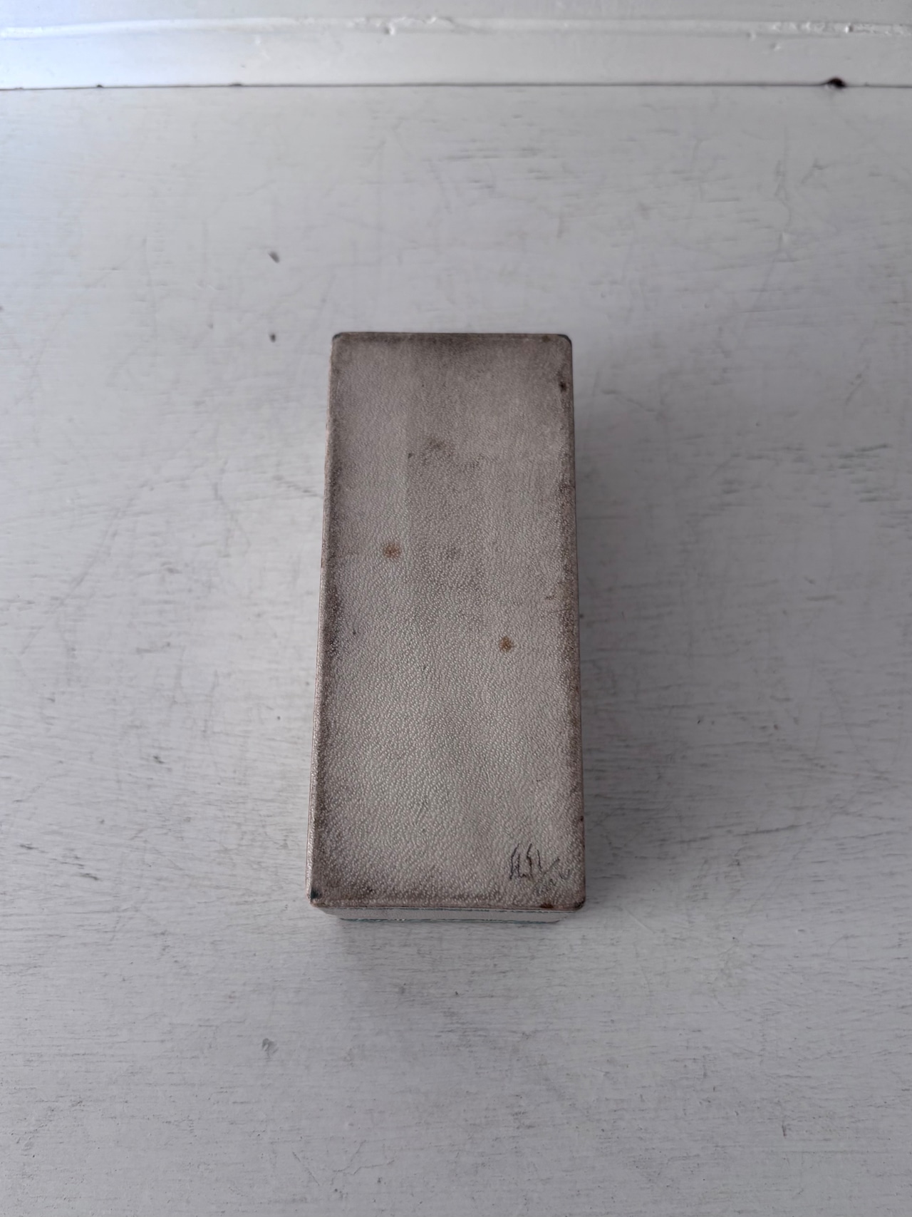 内側にもシミや変色が見られますが、箱としての形は保たれており、蓋の開閉に問題はありません。