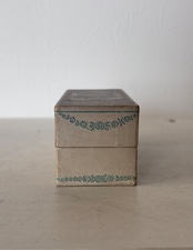 全体に経年による色褪せや擦れ、汚れが見られますが、箱は型押し風の擬革紙でしっかりとした作りです。