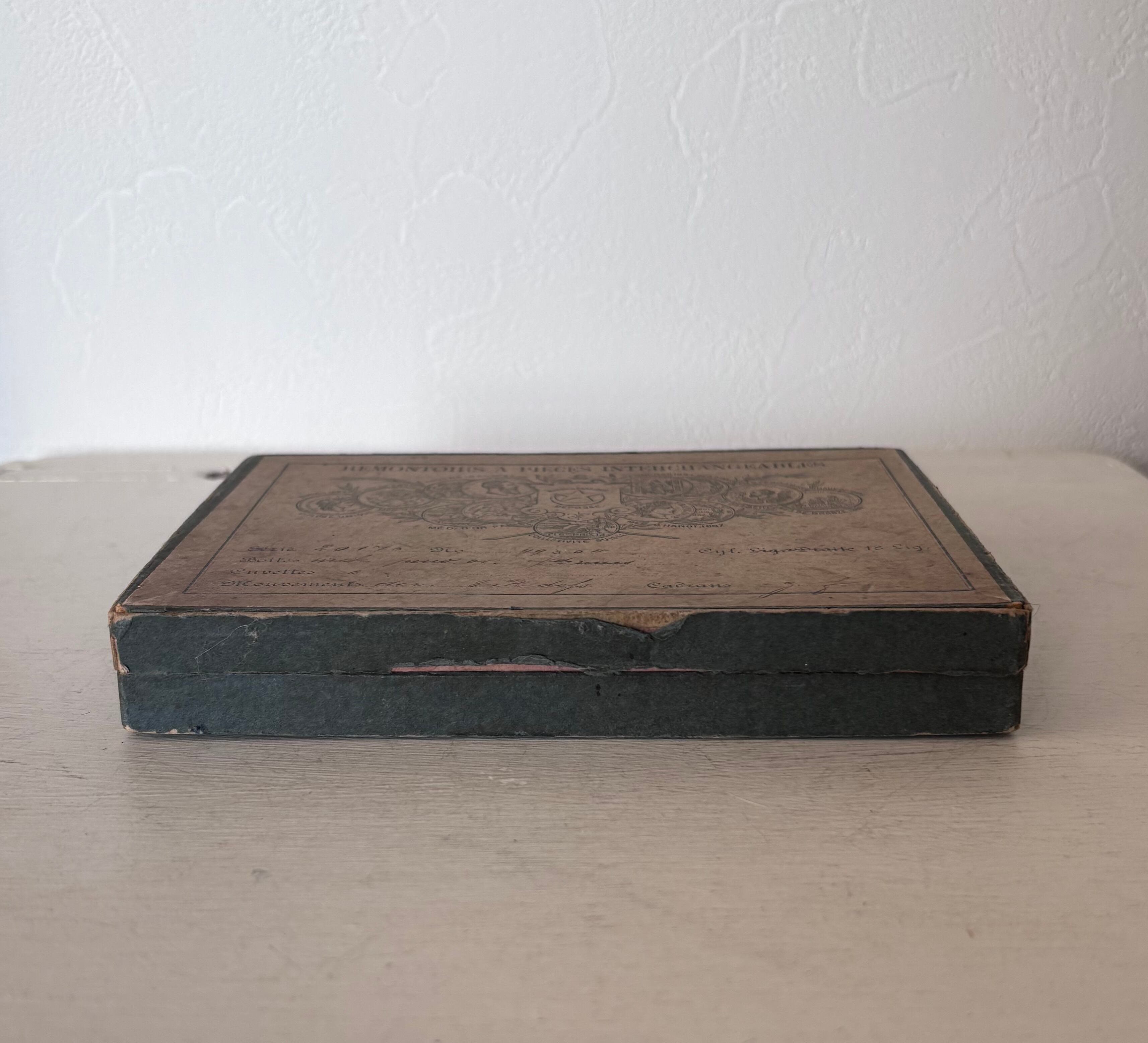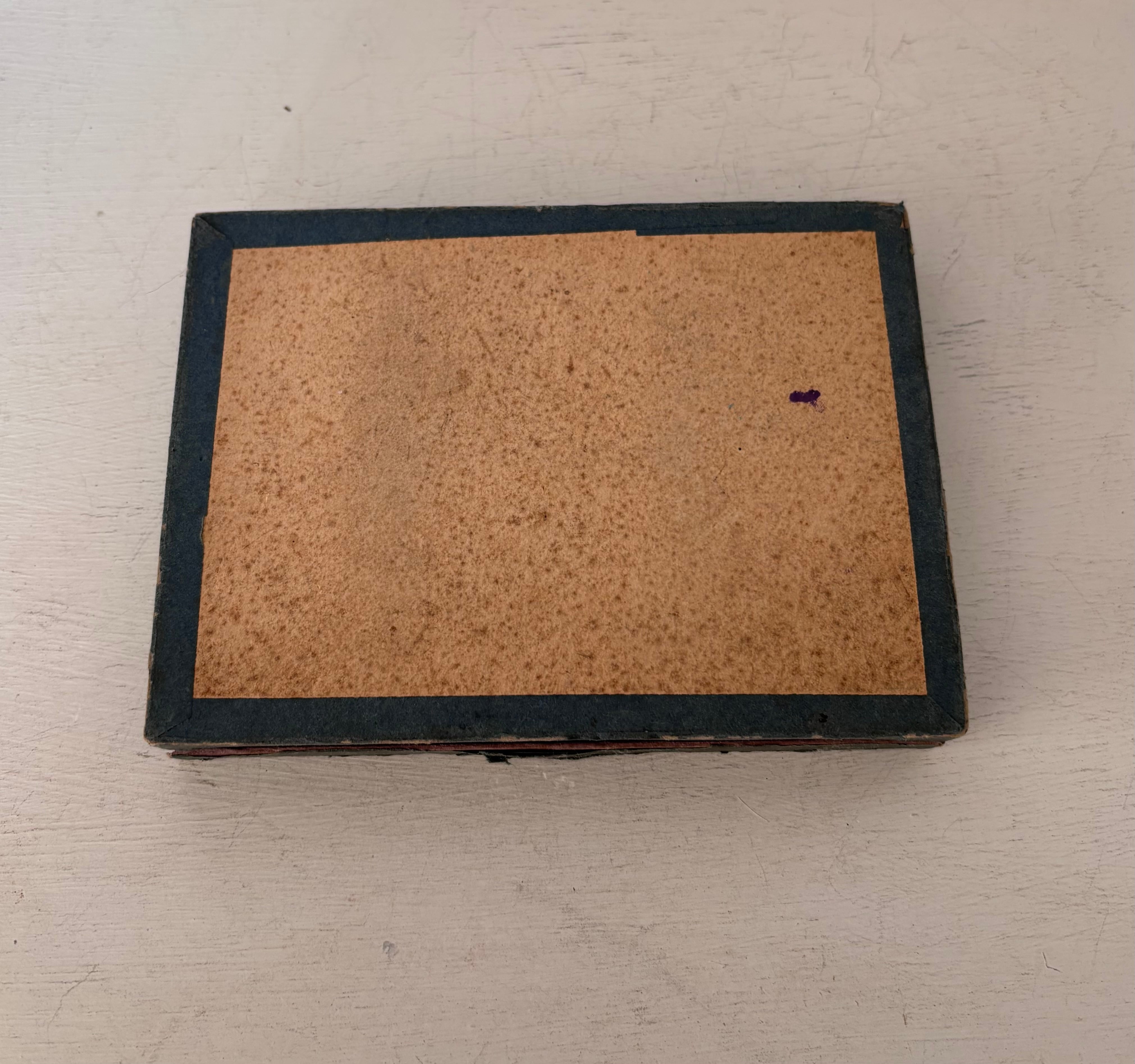 外装には側面に、紙箱特有の経年による層の剥がれが見られます。また擦れや角の傷み、内側にはシミや汚れ、仕切り部分の角に傷みが見られますが、蓋の開閉や使用には問題ありません。