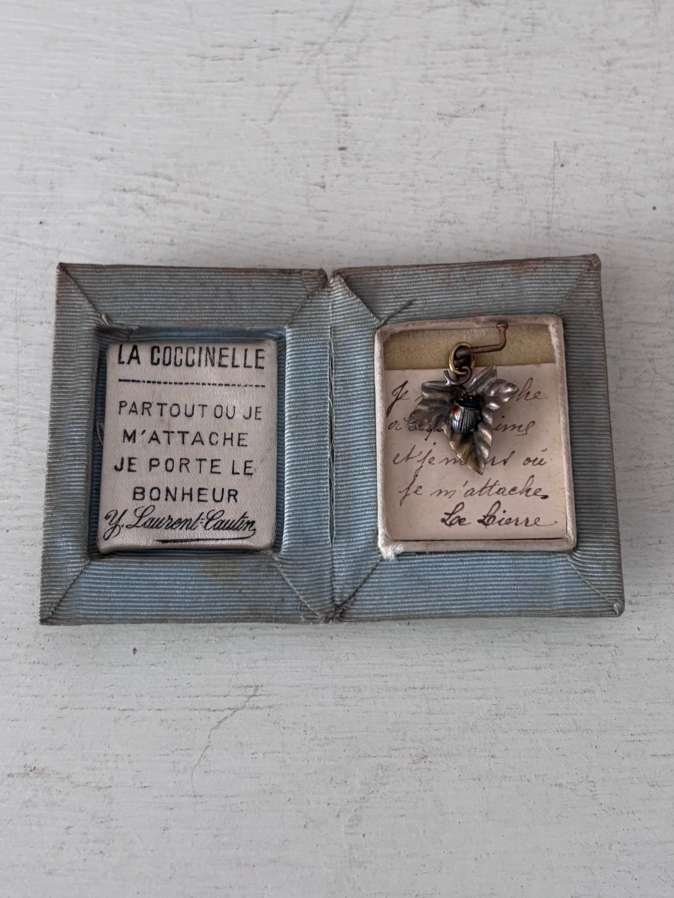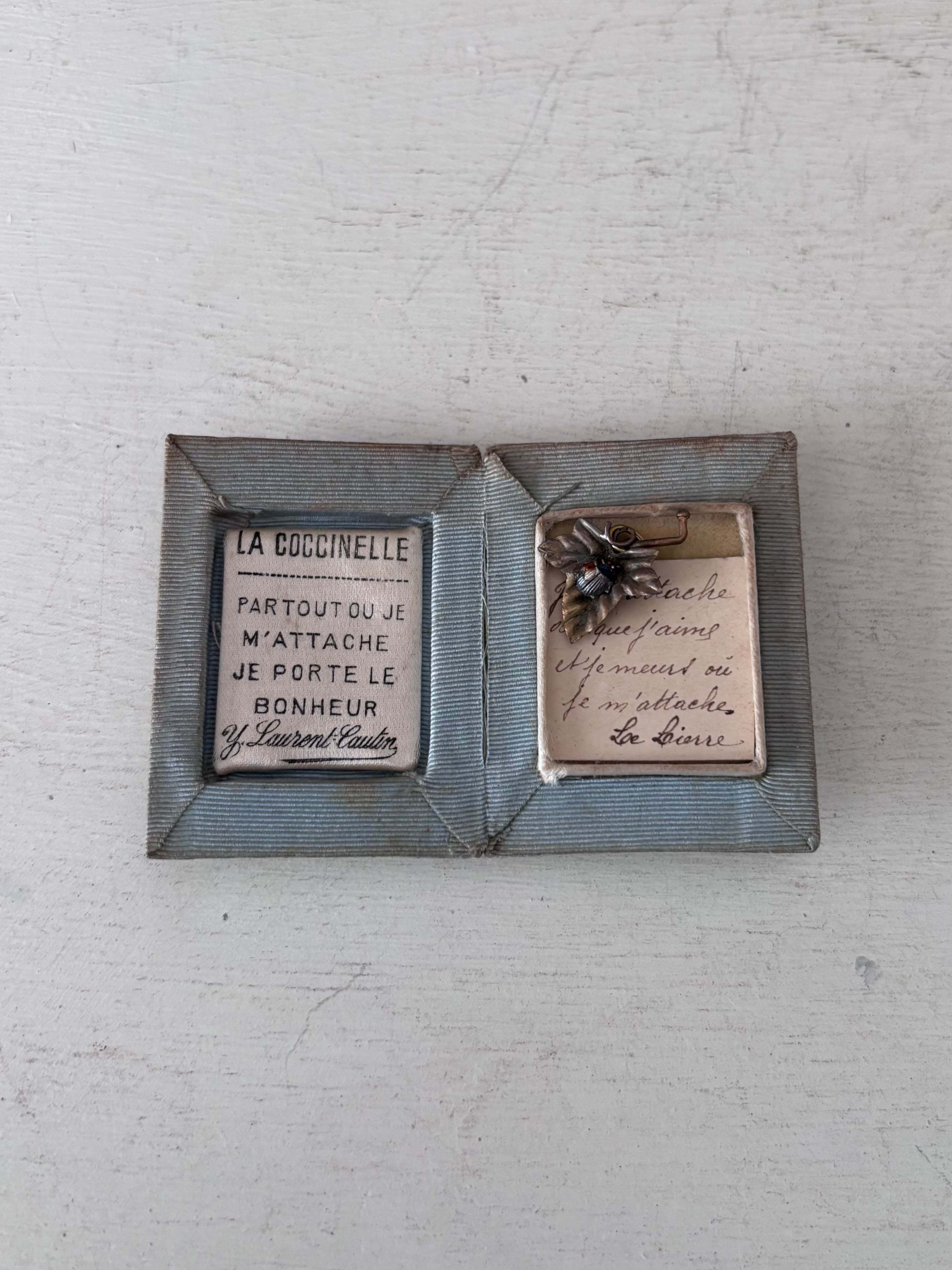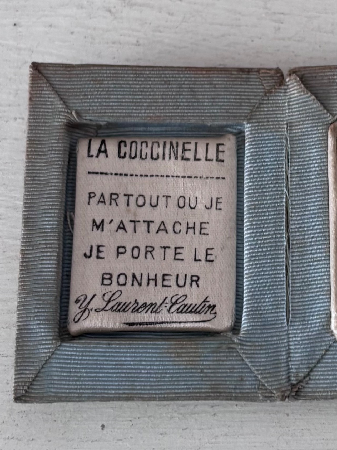 左側には柔らかな布地に LA COCCINELLE(てんとう虫) のタイトルとともに、「どこに身を寄せても、私は幸せを運ぶ」という意味合いの言葉が印刷されています。