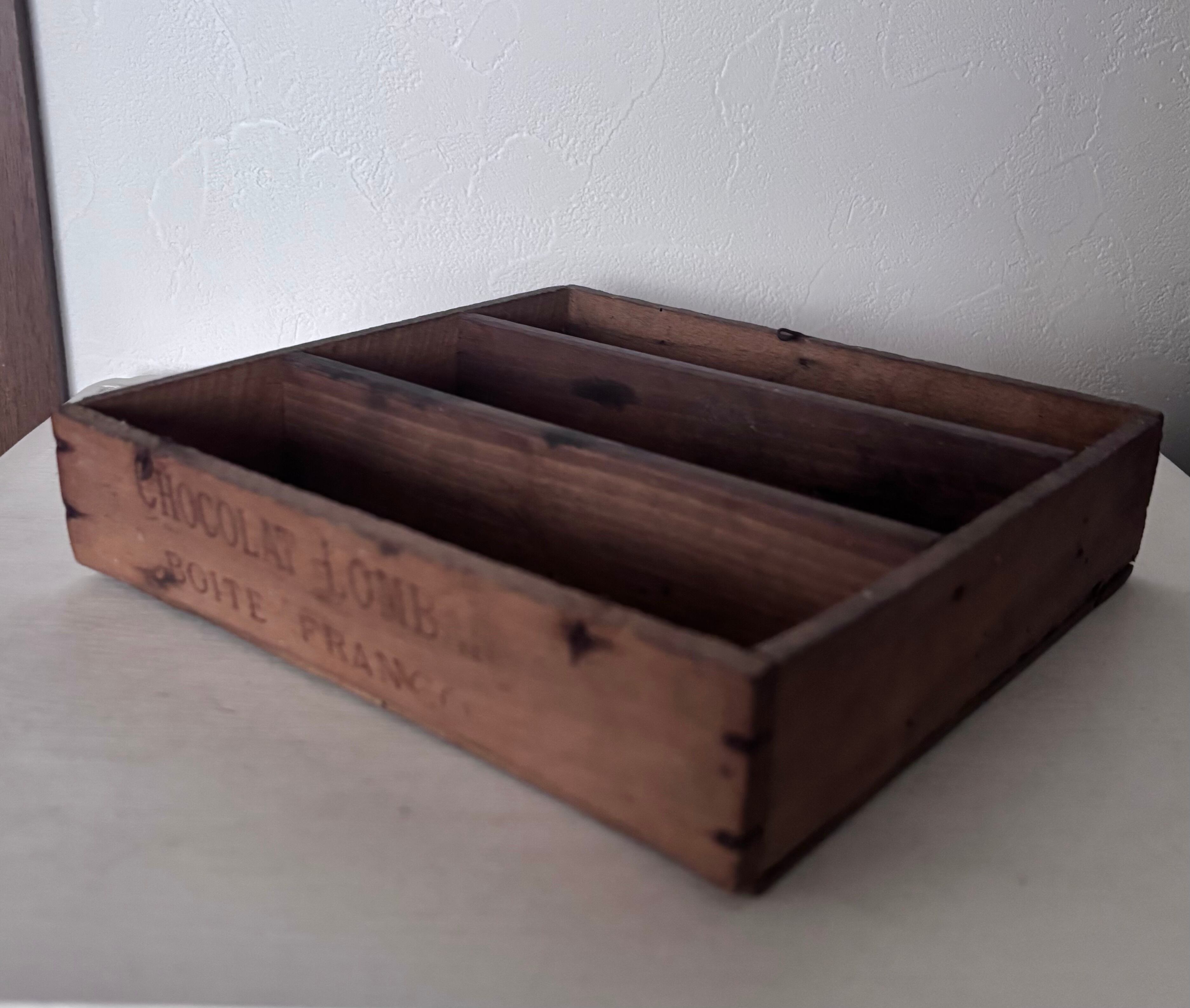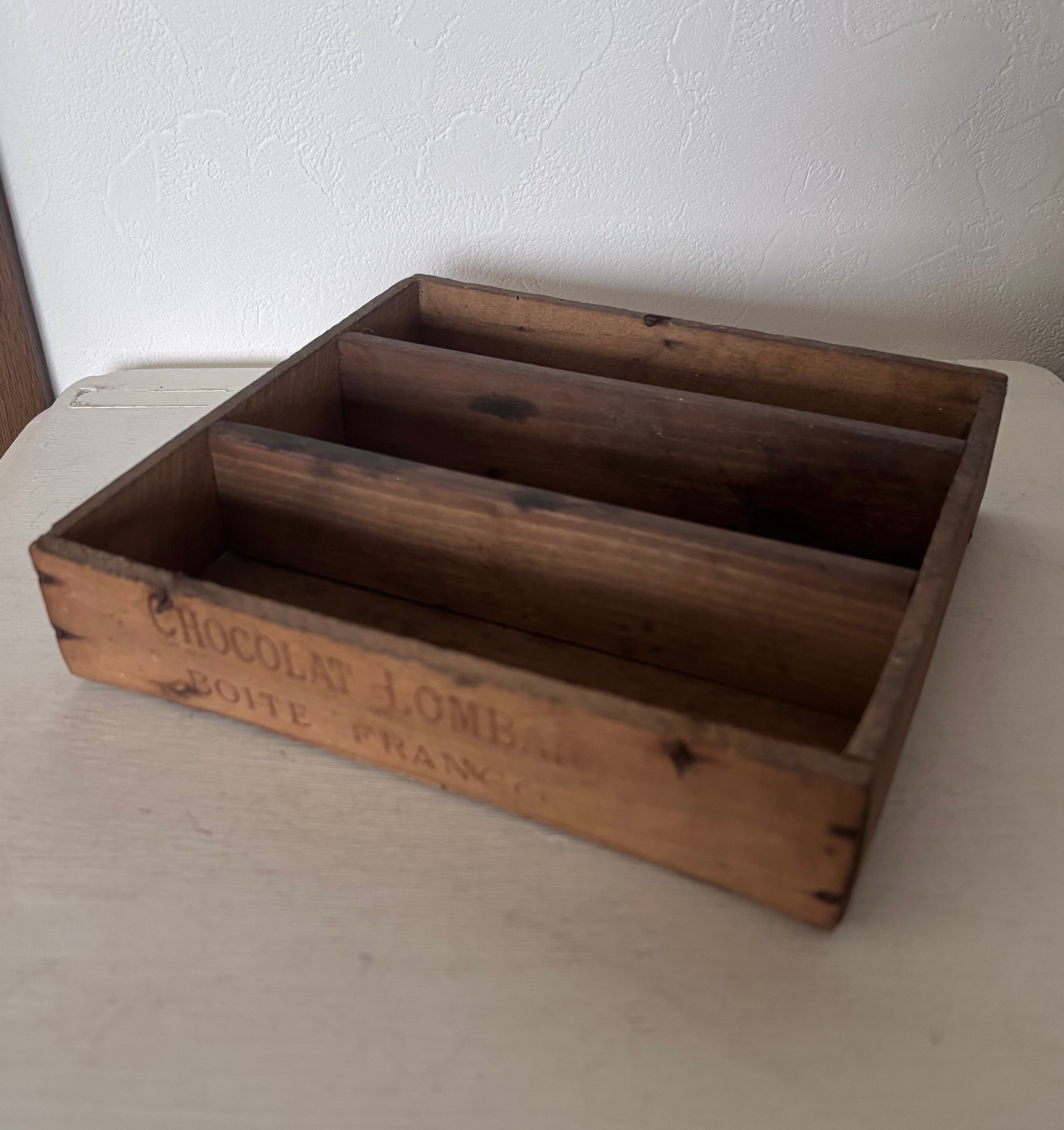 フランスのショコラトリーで使われていた仕切り付きの木製ボックスです。