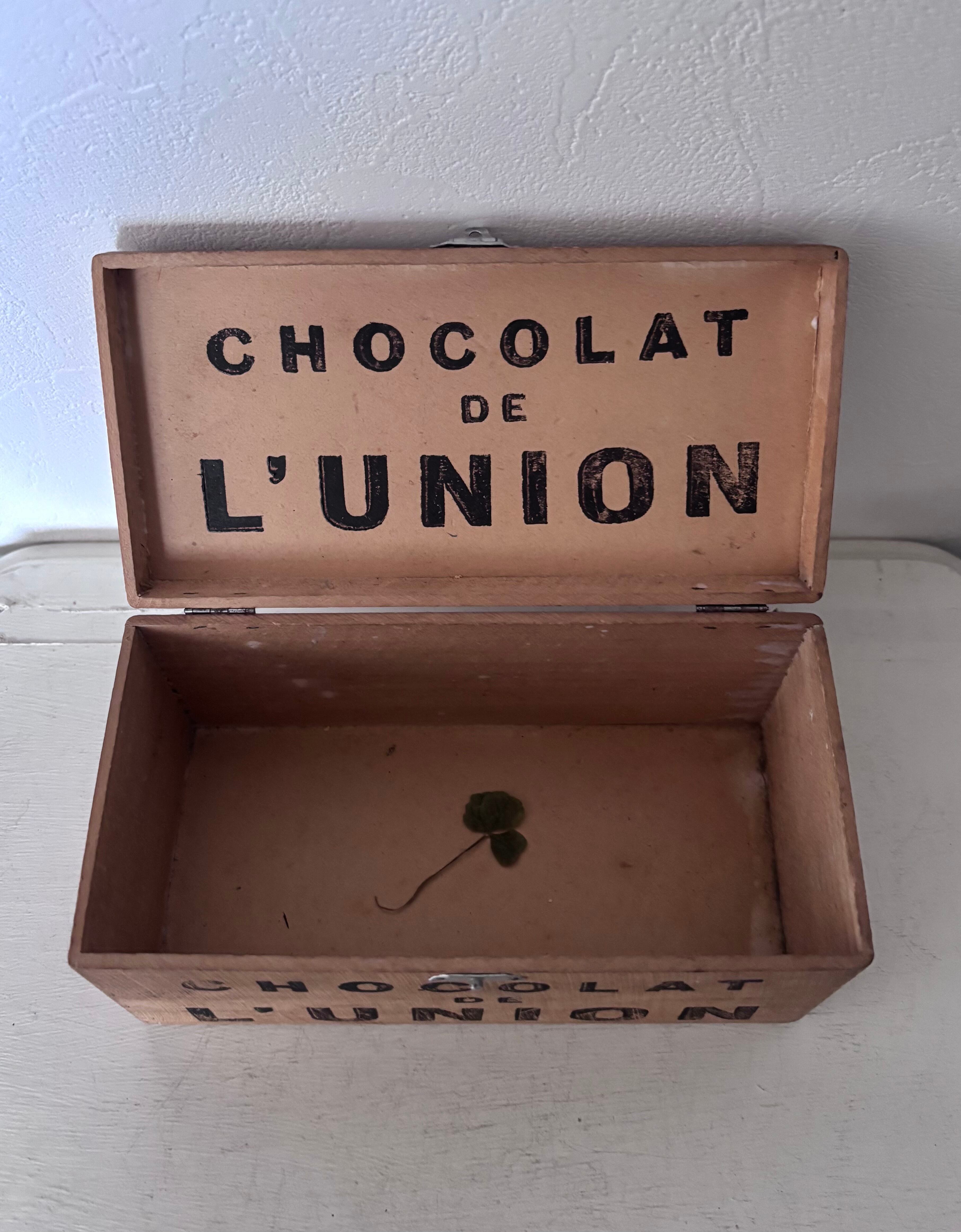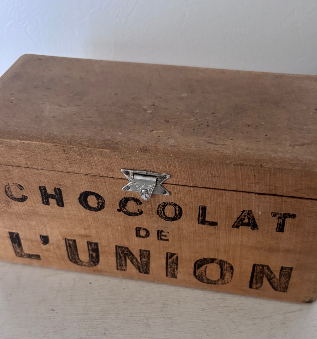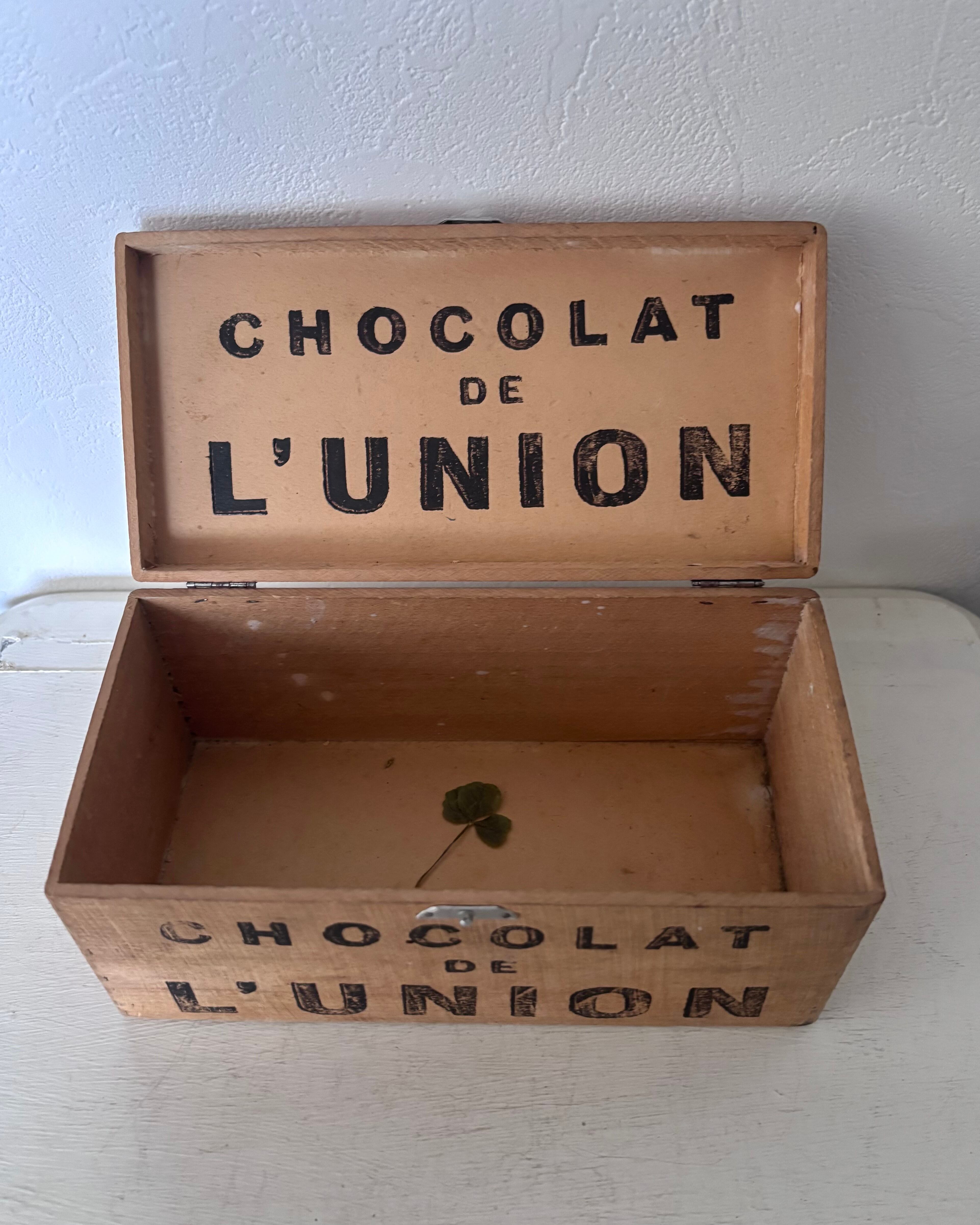 側面と内蓋に残る"CHOCOLAT DE L’UNION” の素朴なステンシル文字が、どこか可愛いらしい印象です。