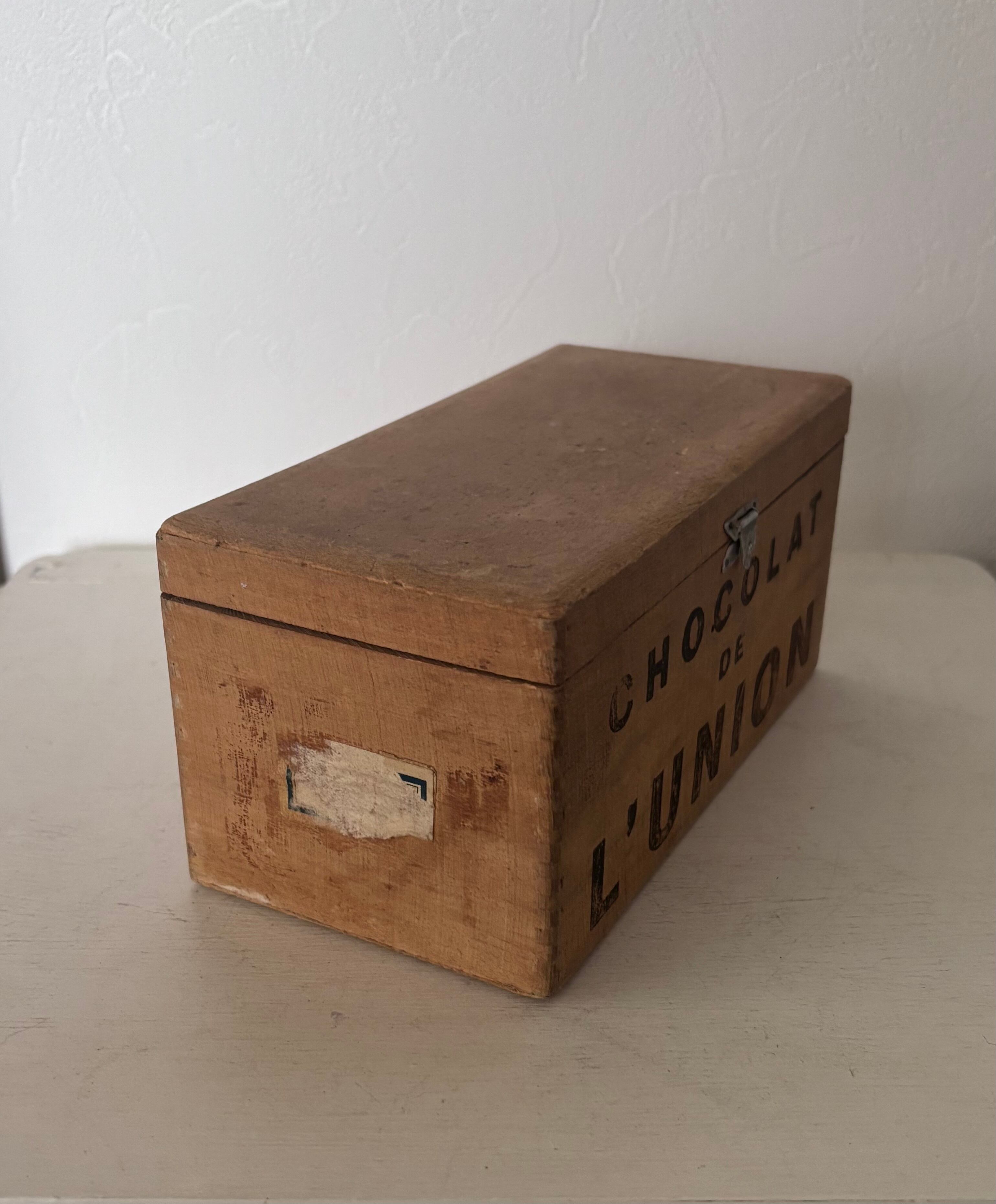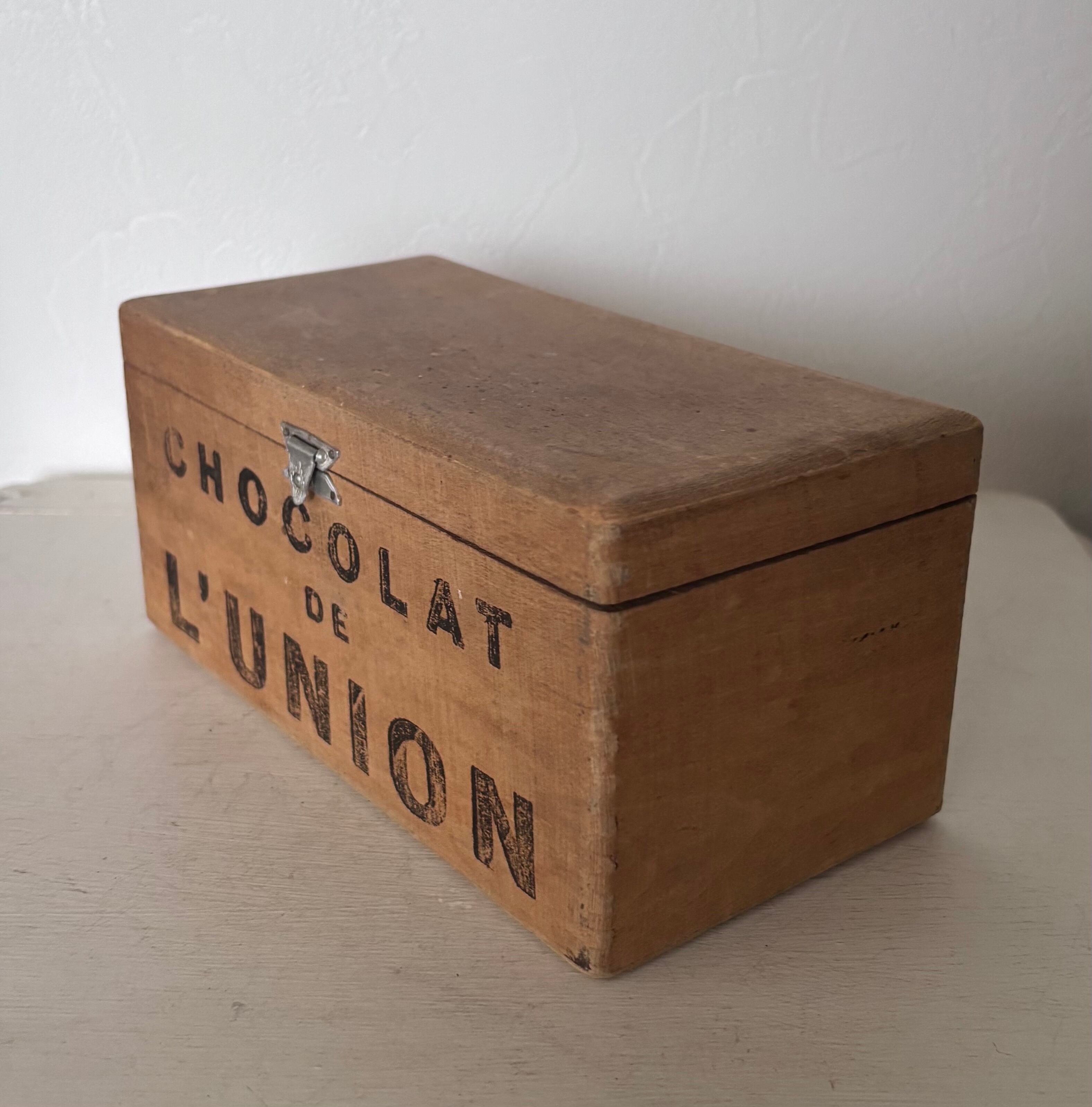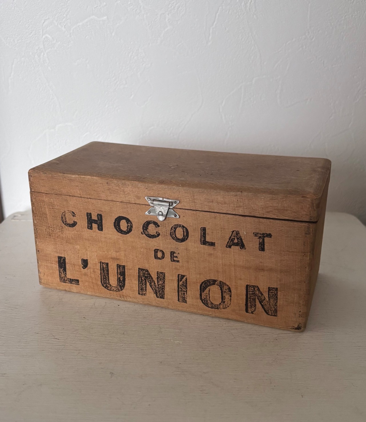 側面と内蓋に残る"CHOCOLAT DE L’UNION” の素朴なステンシル文字が、どこか可愛いらしい印象です。