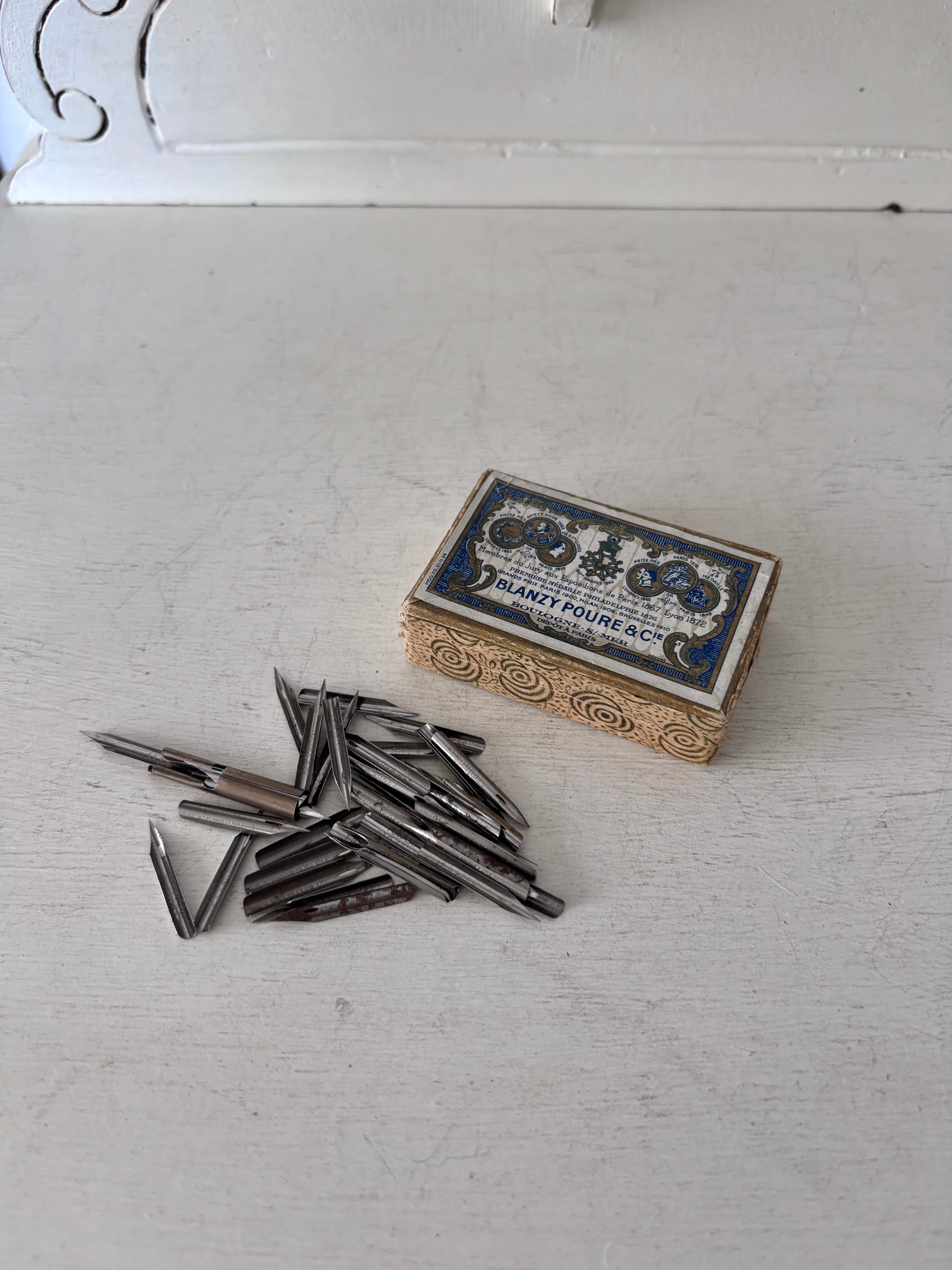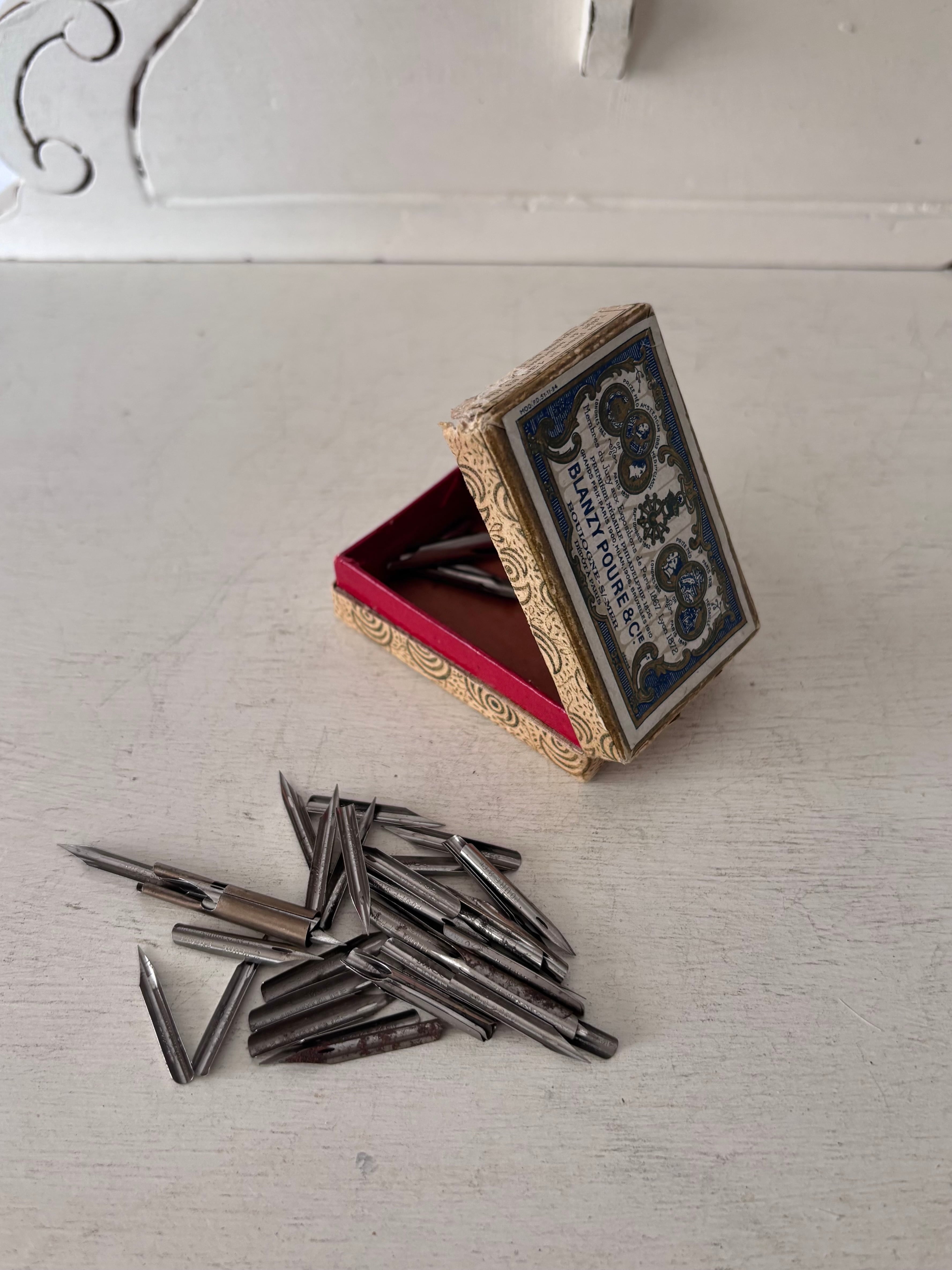 フランス老舗メーカーBlanzy-Poure & Cieのボックスに、金属ペン先が収められた小さな紙箱です。