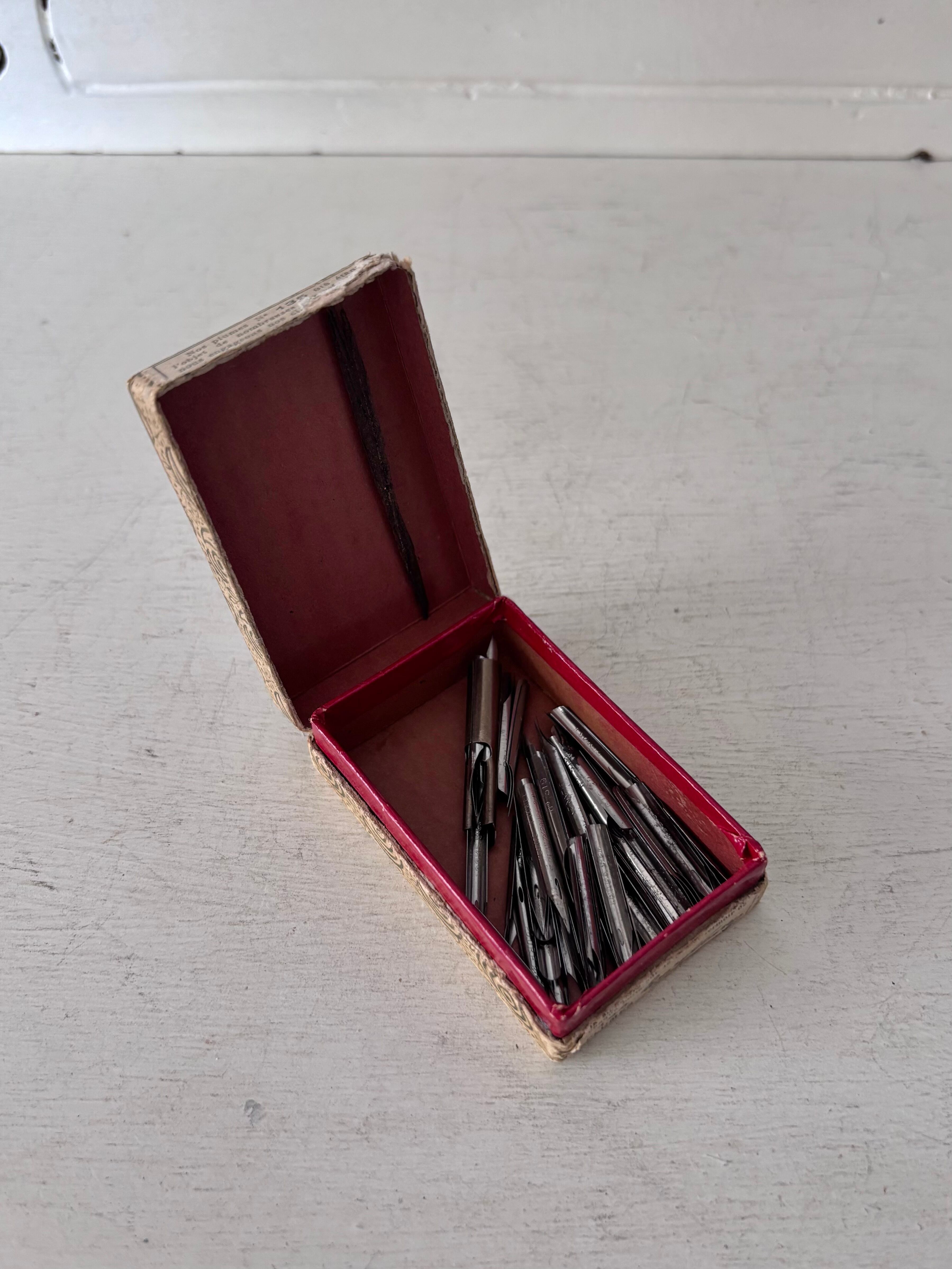 中には複数のペン先が揃い、筆記や製図、書簡を書くための道具として、日常の中で大切に使われていた品と思われます。