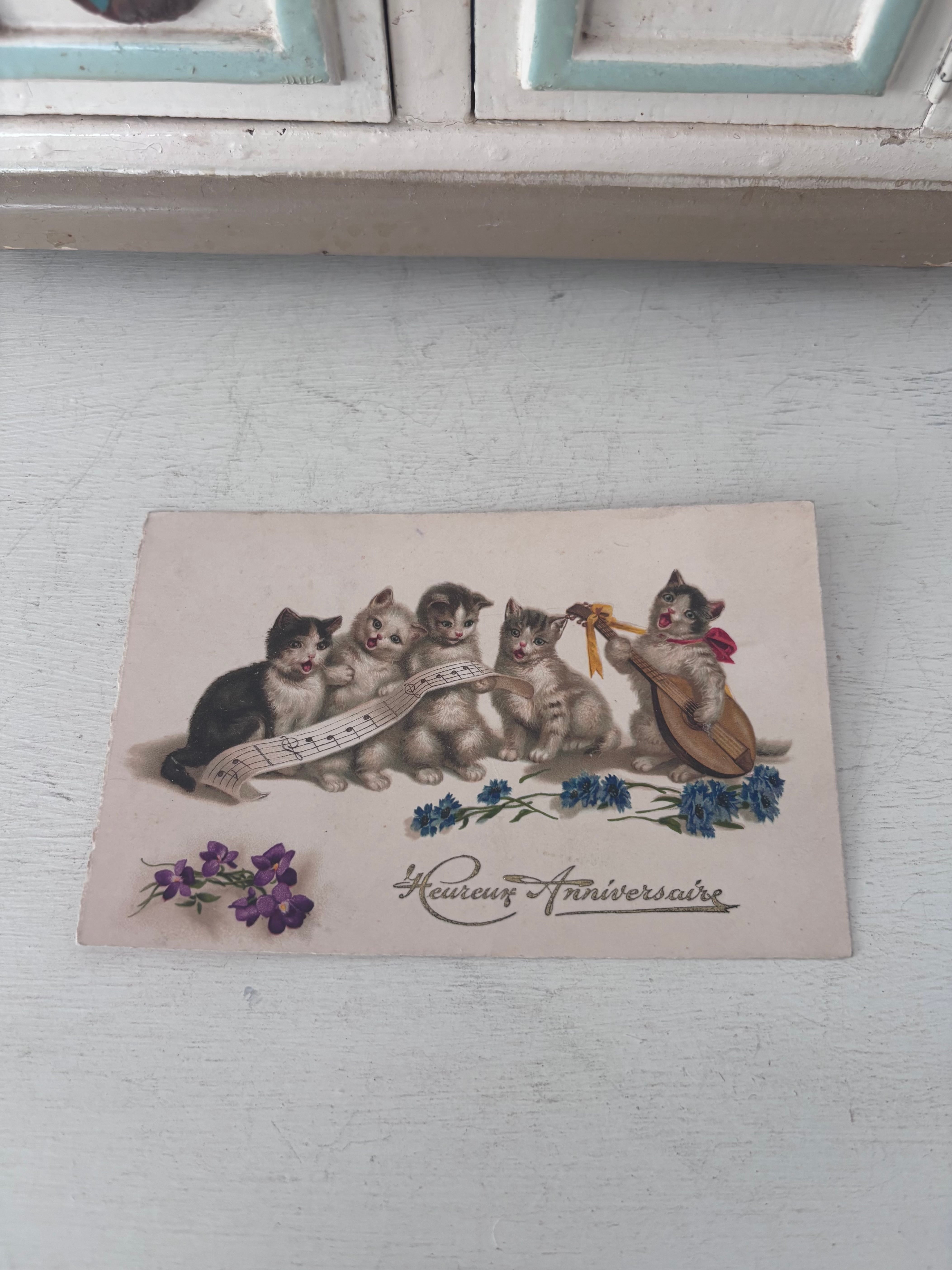 小傷や変色と片面の猫パネルにわずかな揺れ(ガタつき)が見られます。構造的な大きなダメージではありませんが、ヴィンテージコンディションとしてご了承ください。