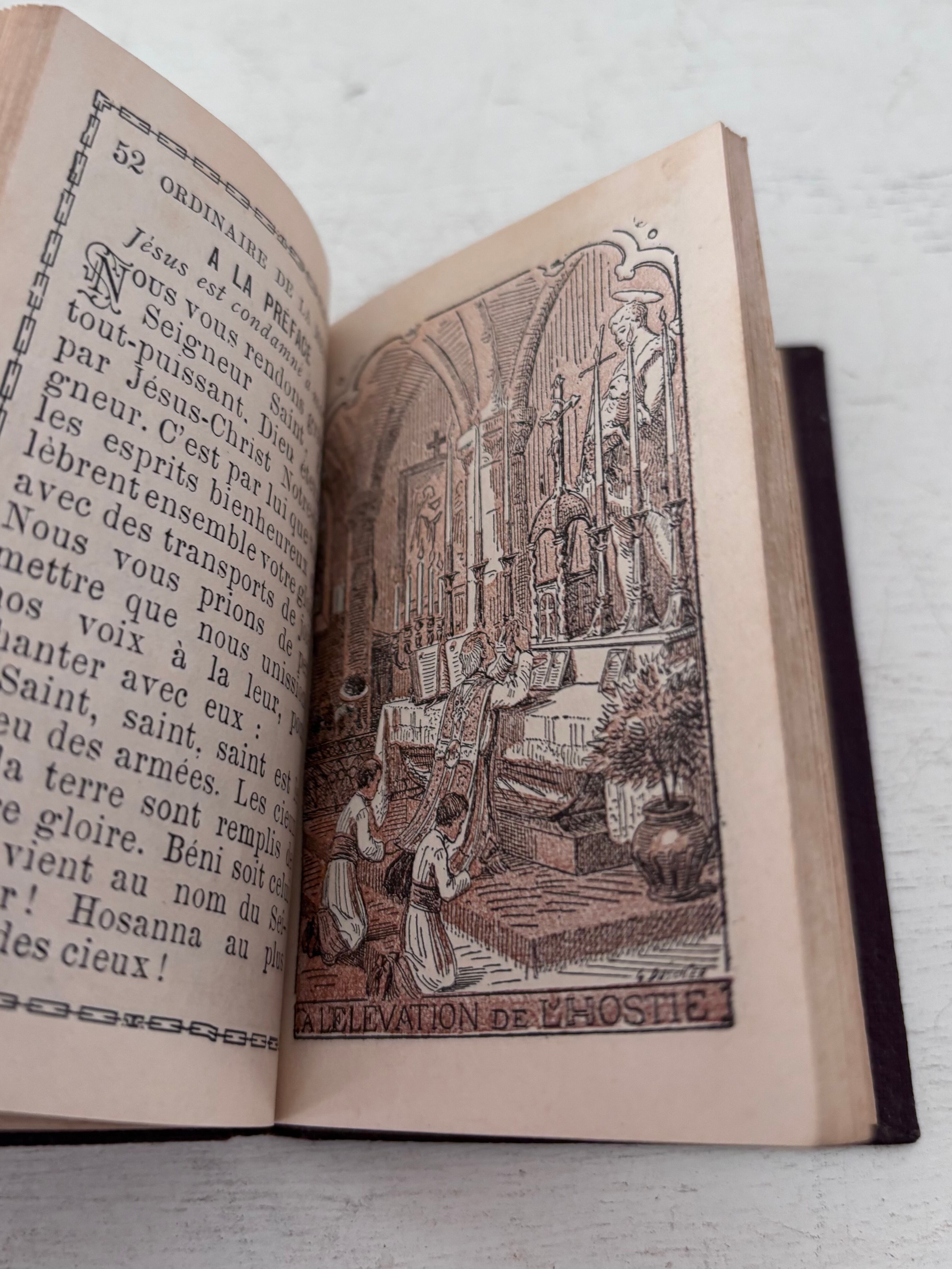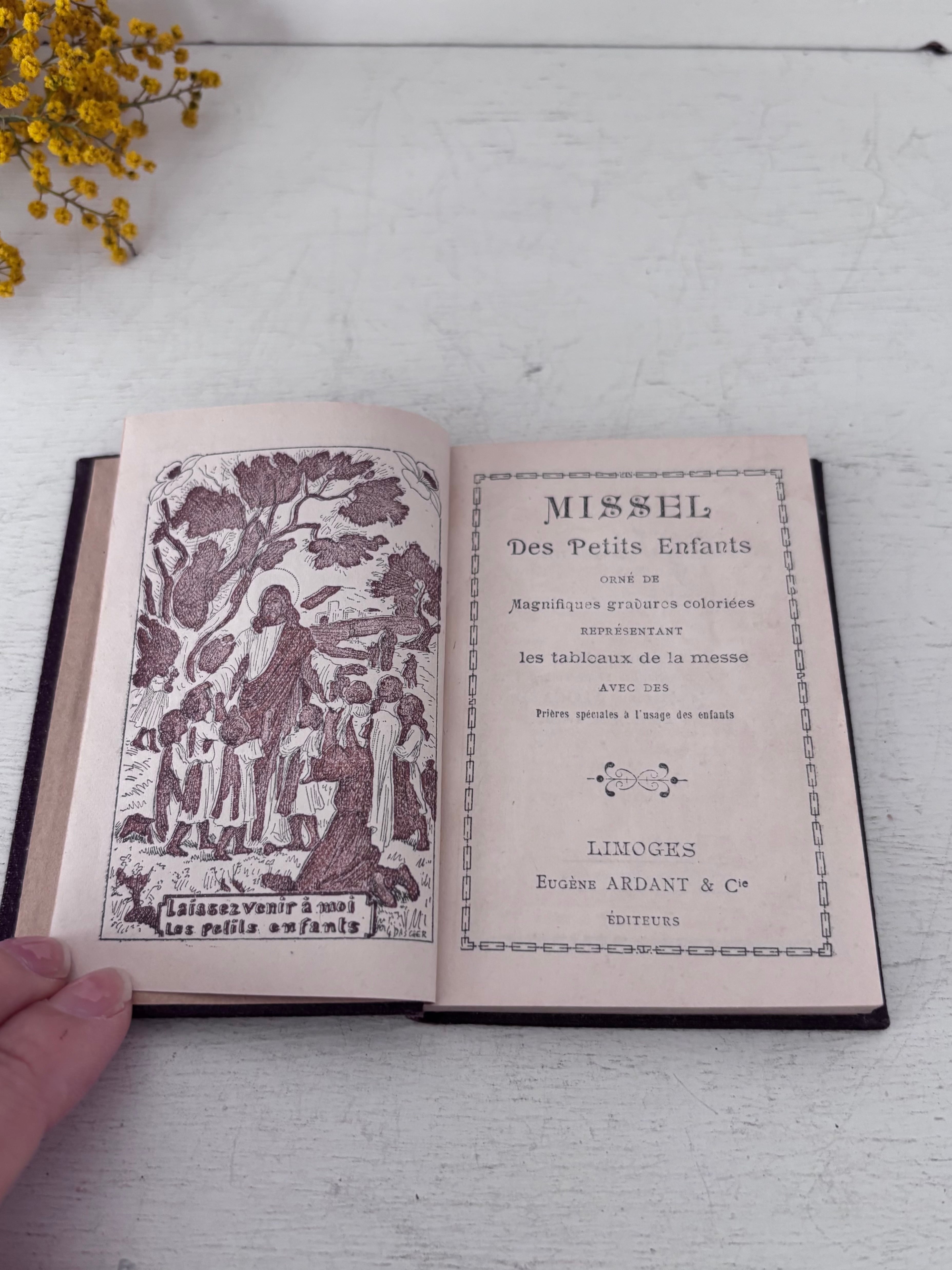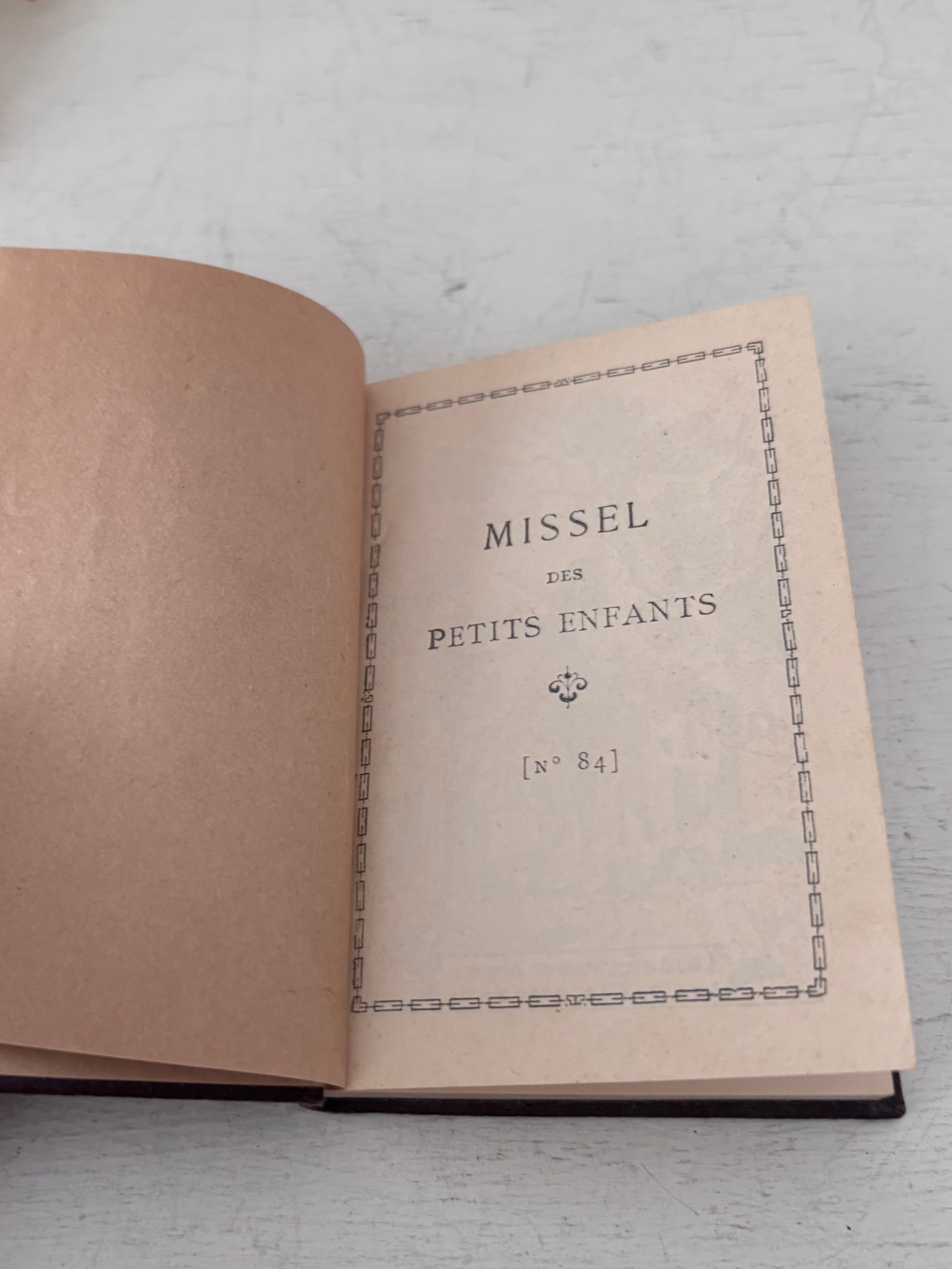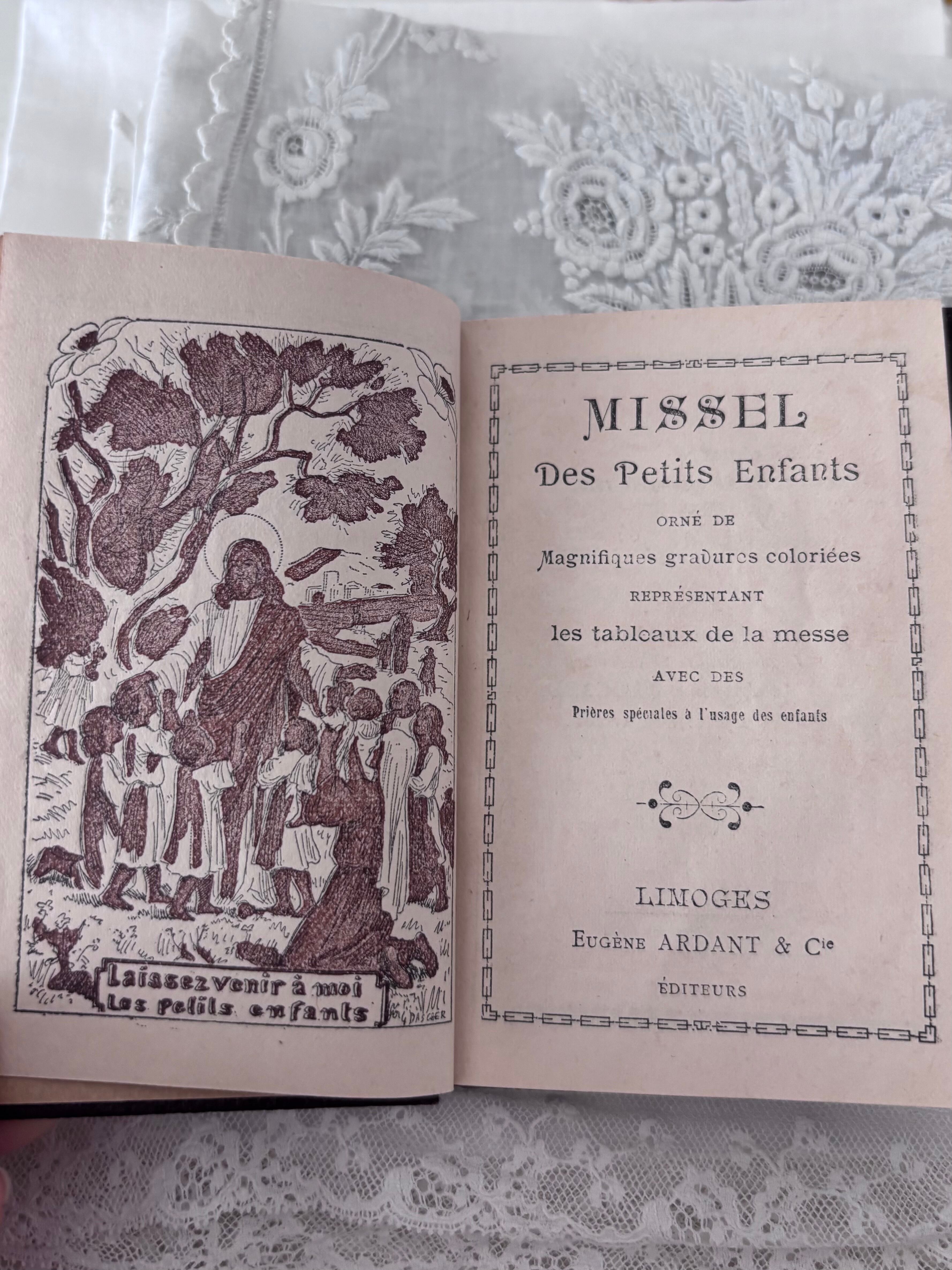 手のひらに収まるほどの小さな祈りの本は、フランスでは、petit missel(小さなミサ典書) と呼ばれ、子どもたちがミサや祈りを学ぶために大切に使われていました。