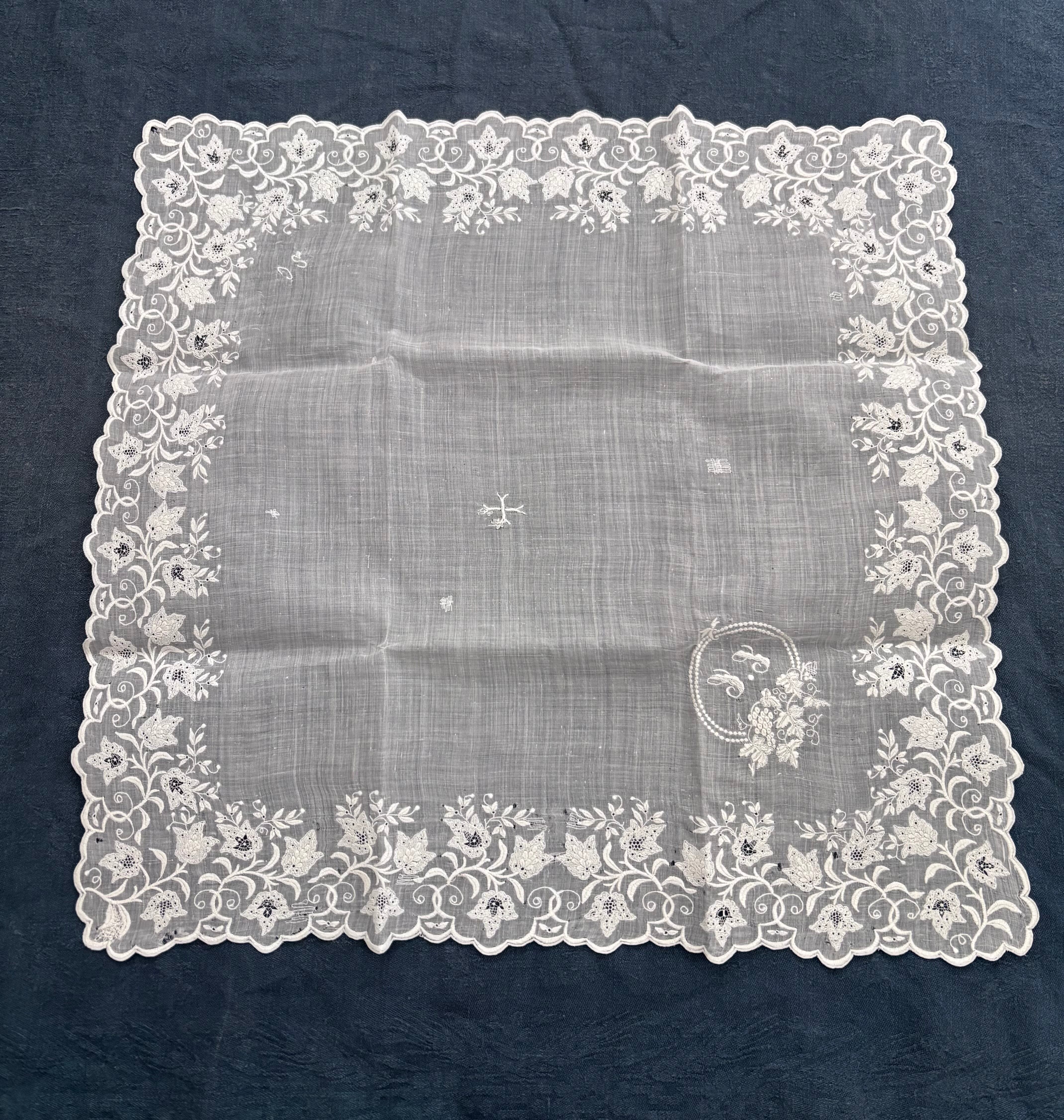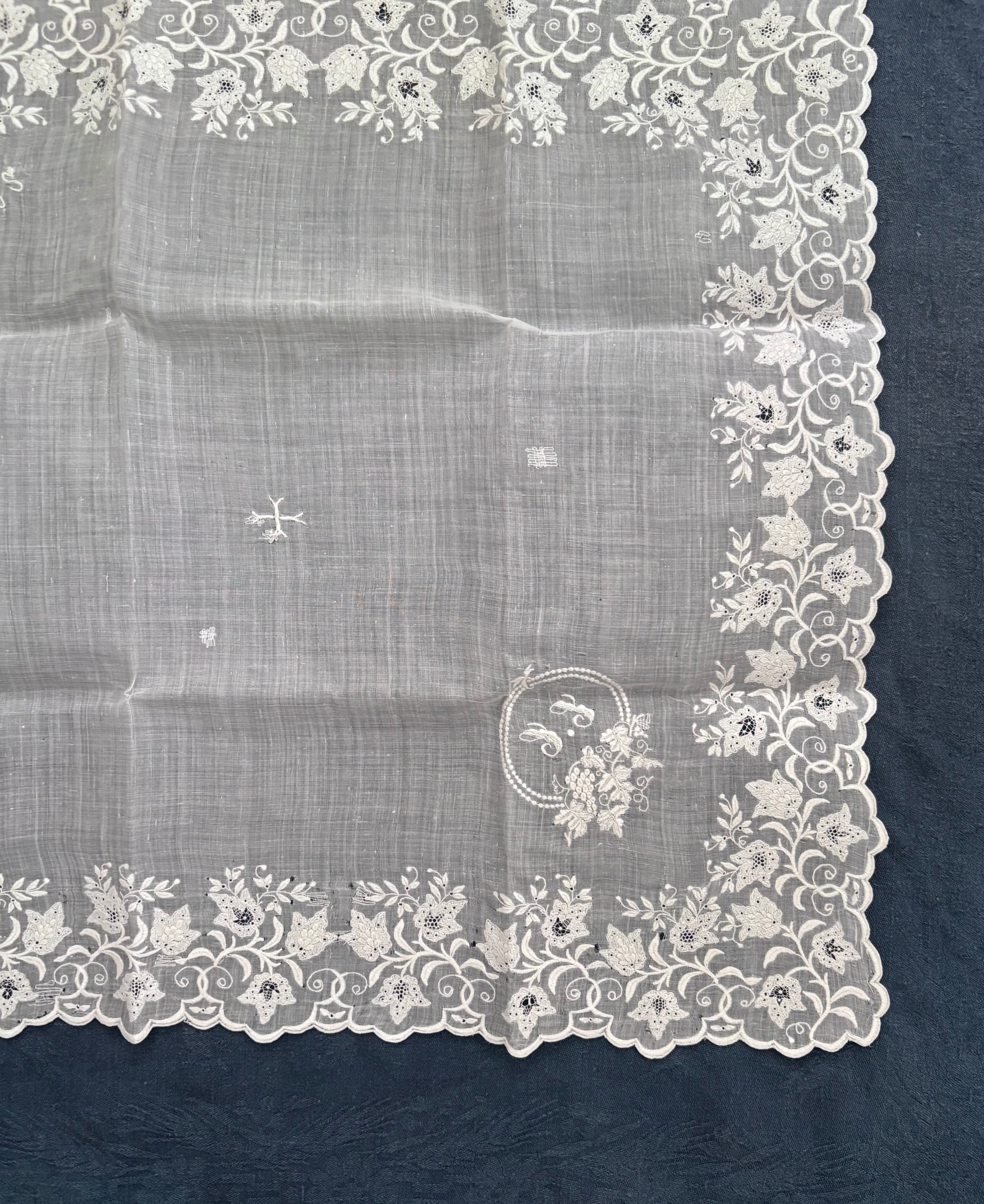 中央には小さなクロスとモノグラムCCの刺繍が入った、当時の特別な一枚を思わせる佇まい。