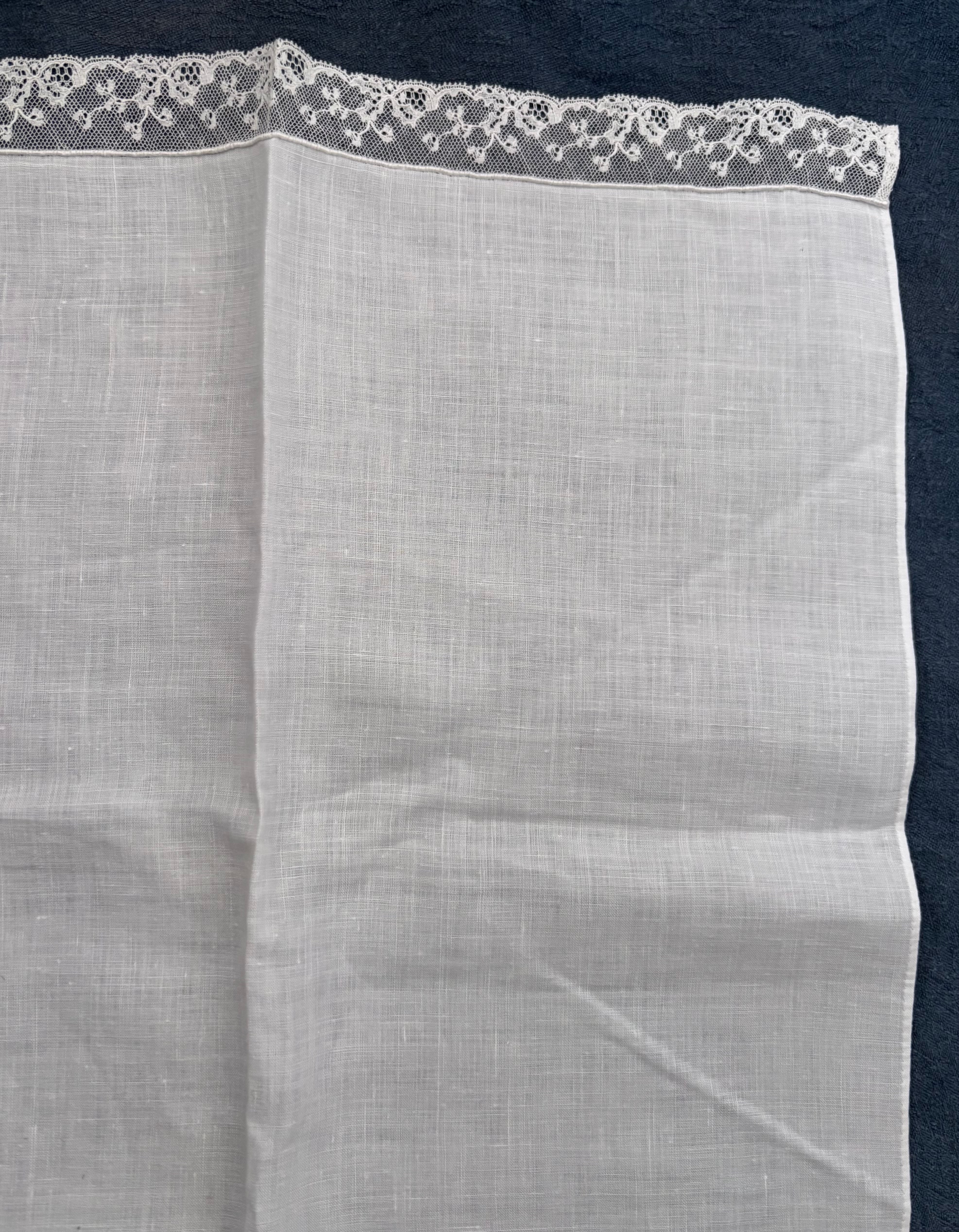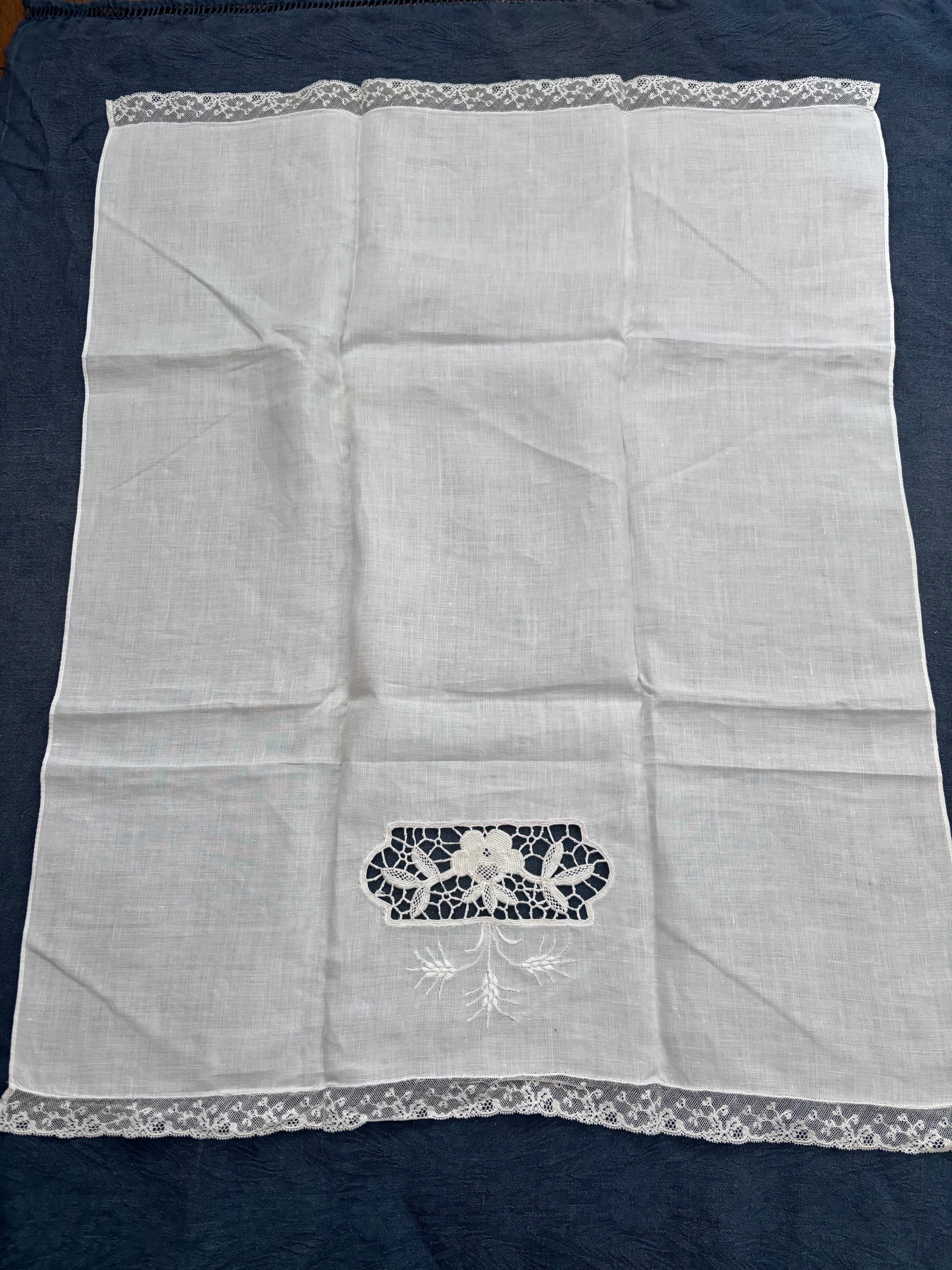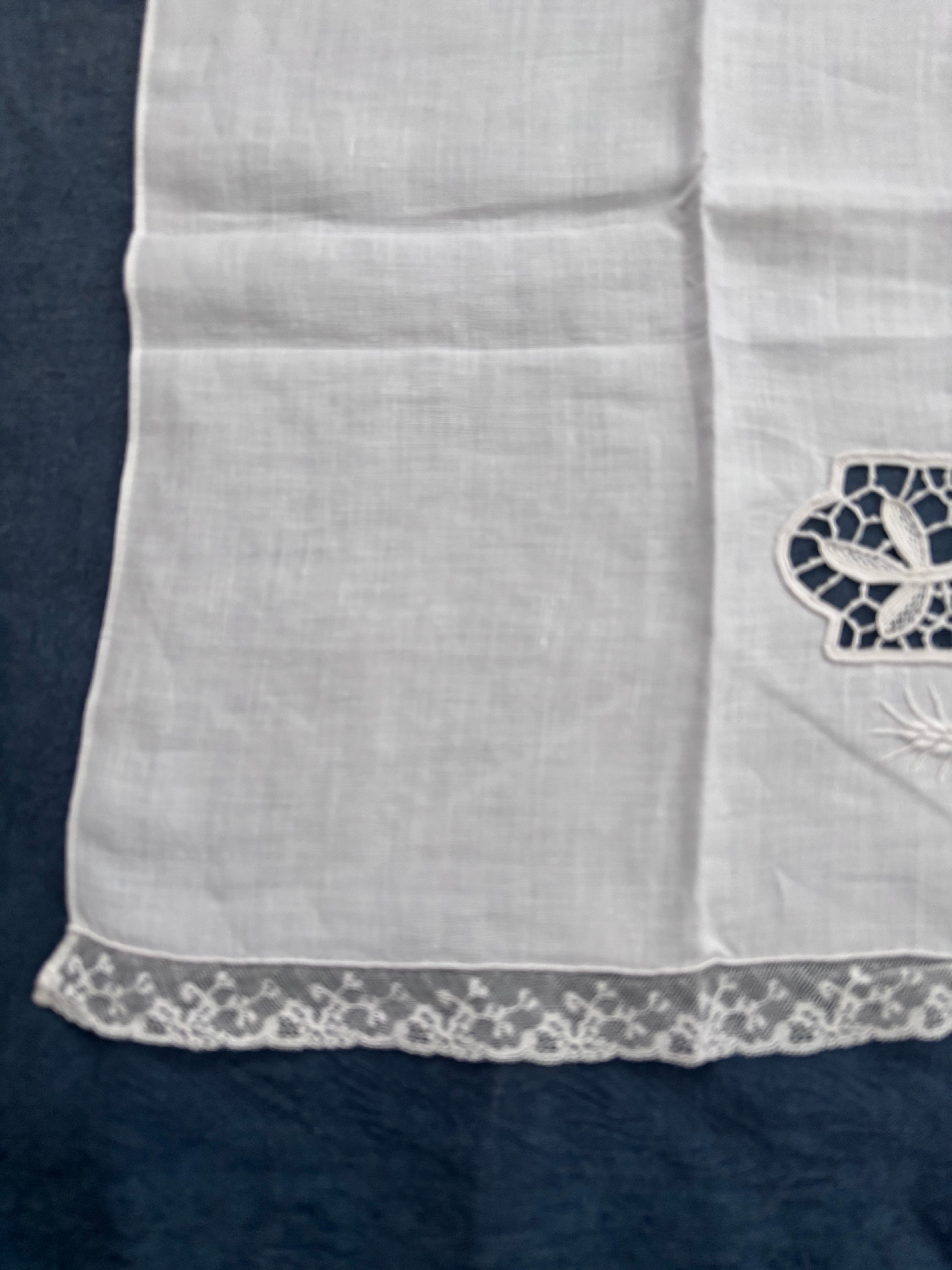 やわらかな薄手コットンに、麦の穂を思わせる刺繍と花のカットワークが施されたクロスです。