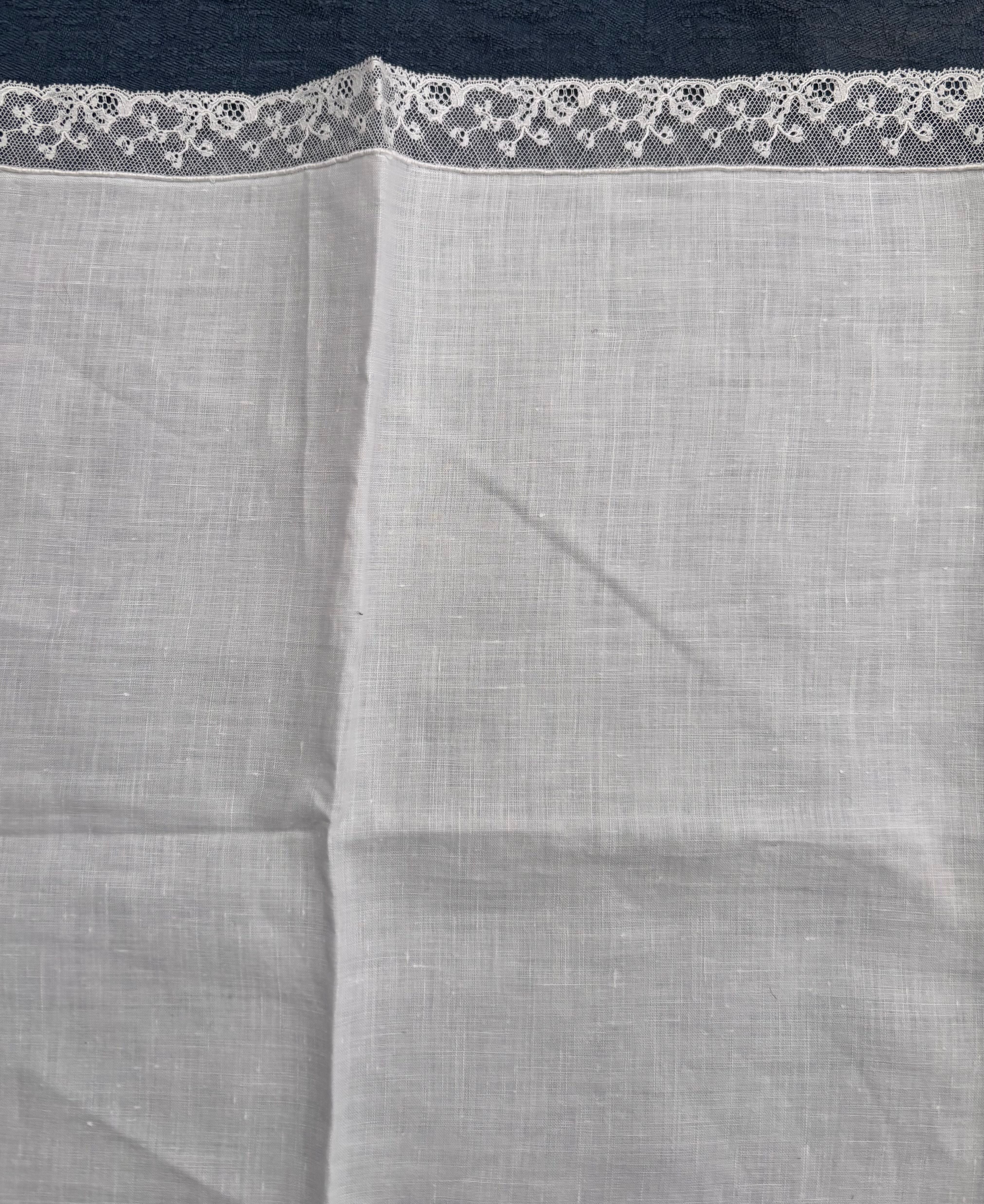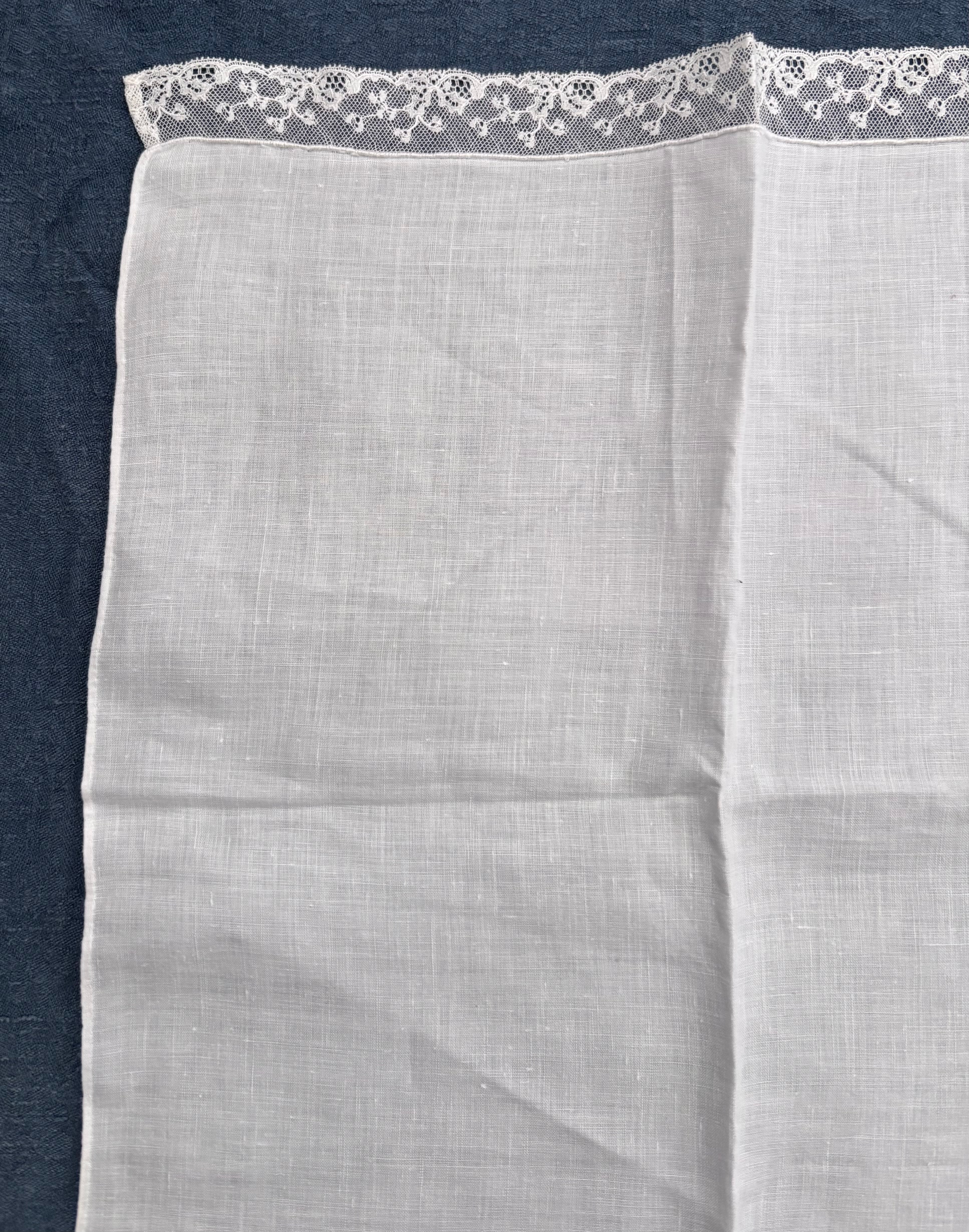 上下縁には透け感のあるチュールレースがあしらわれ、軽やかな佇まいの一枚です。