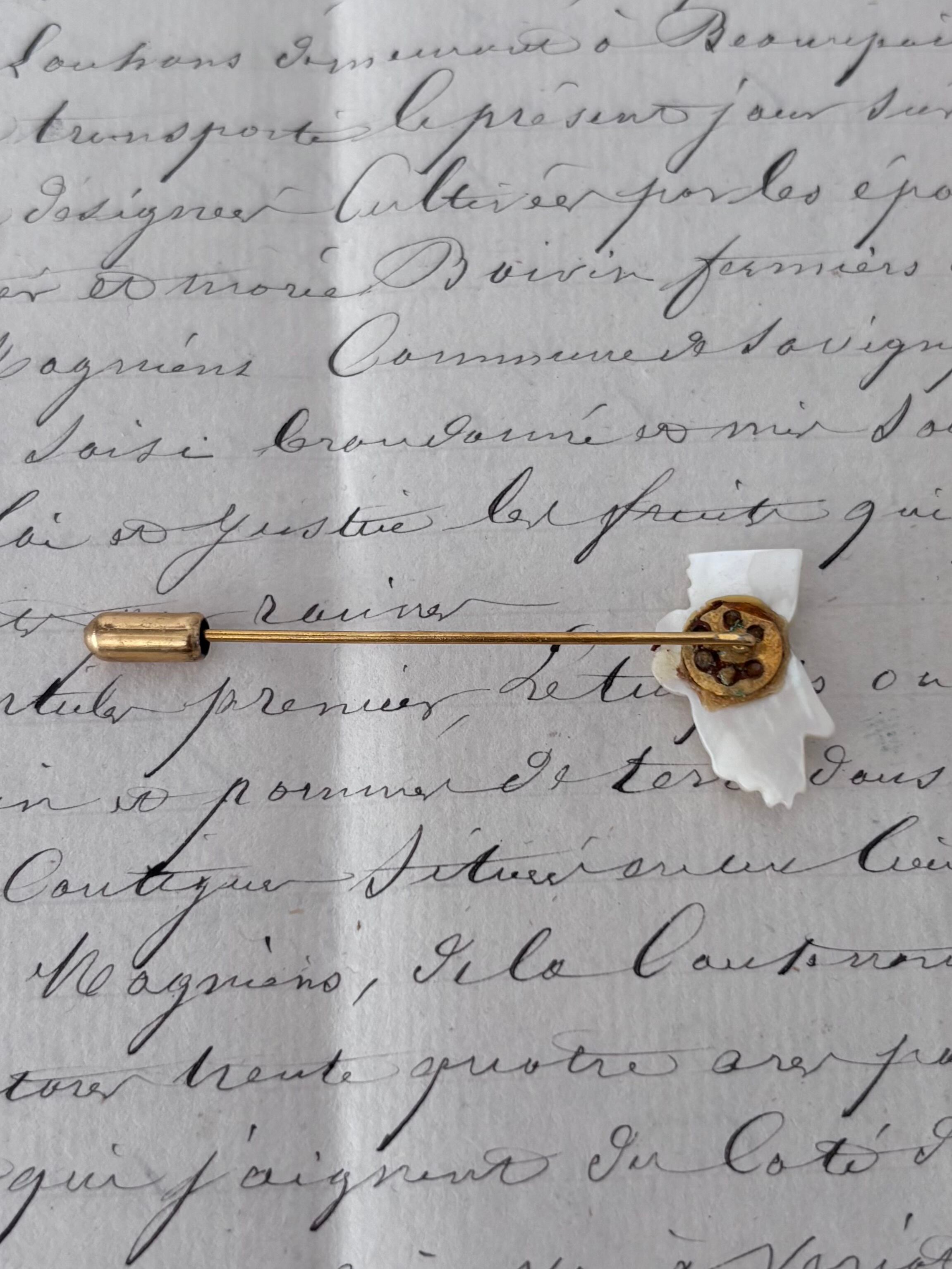 ネクタイや帽子などに添えるアクセサリーとして身につけられていたものです。