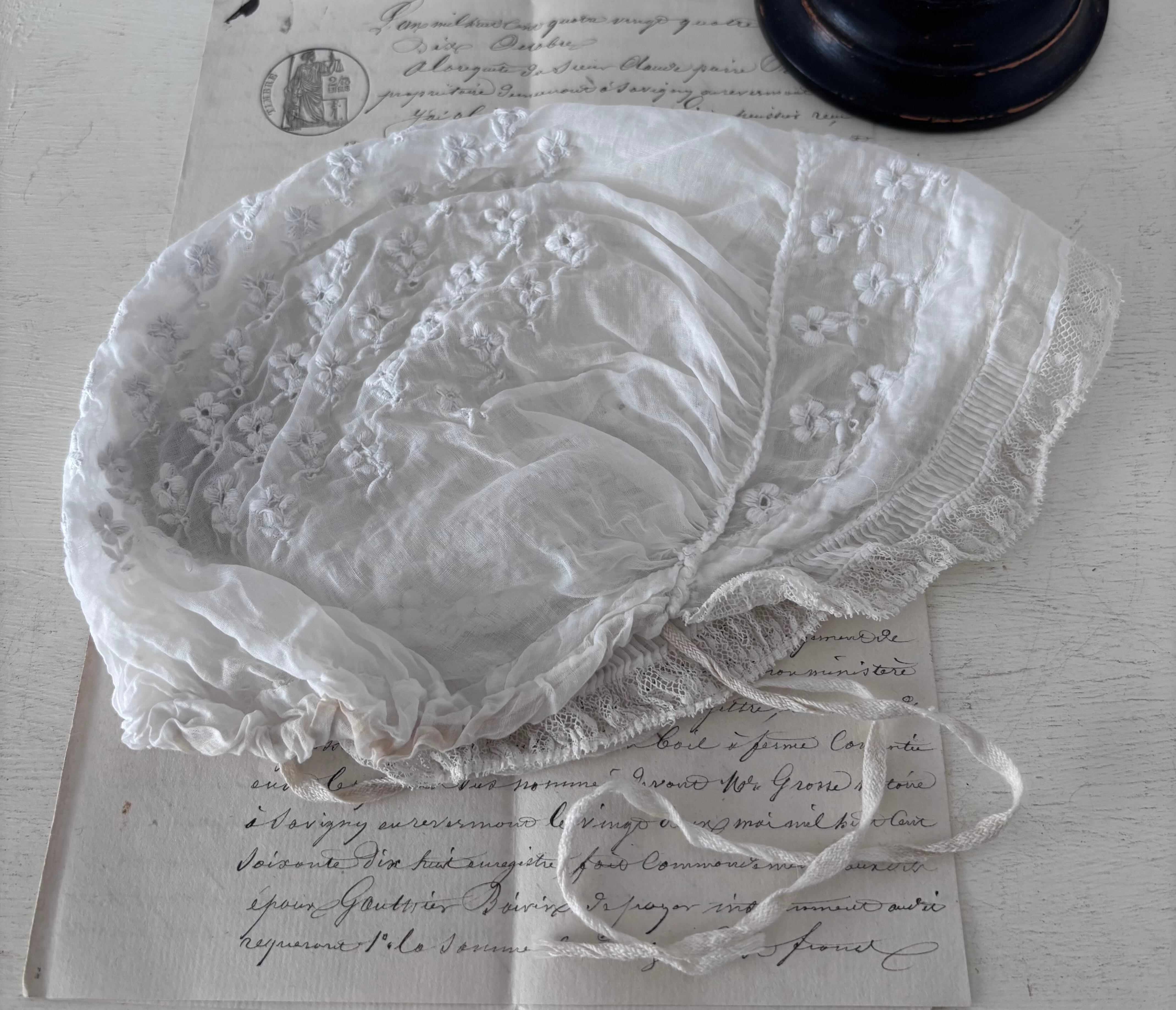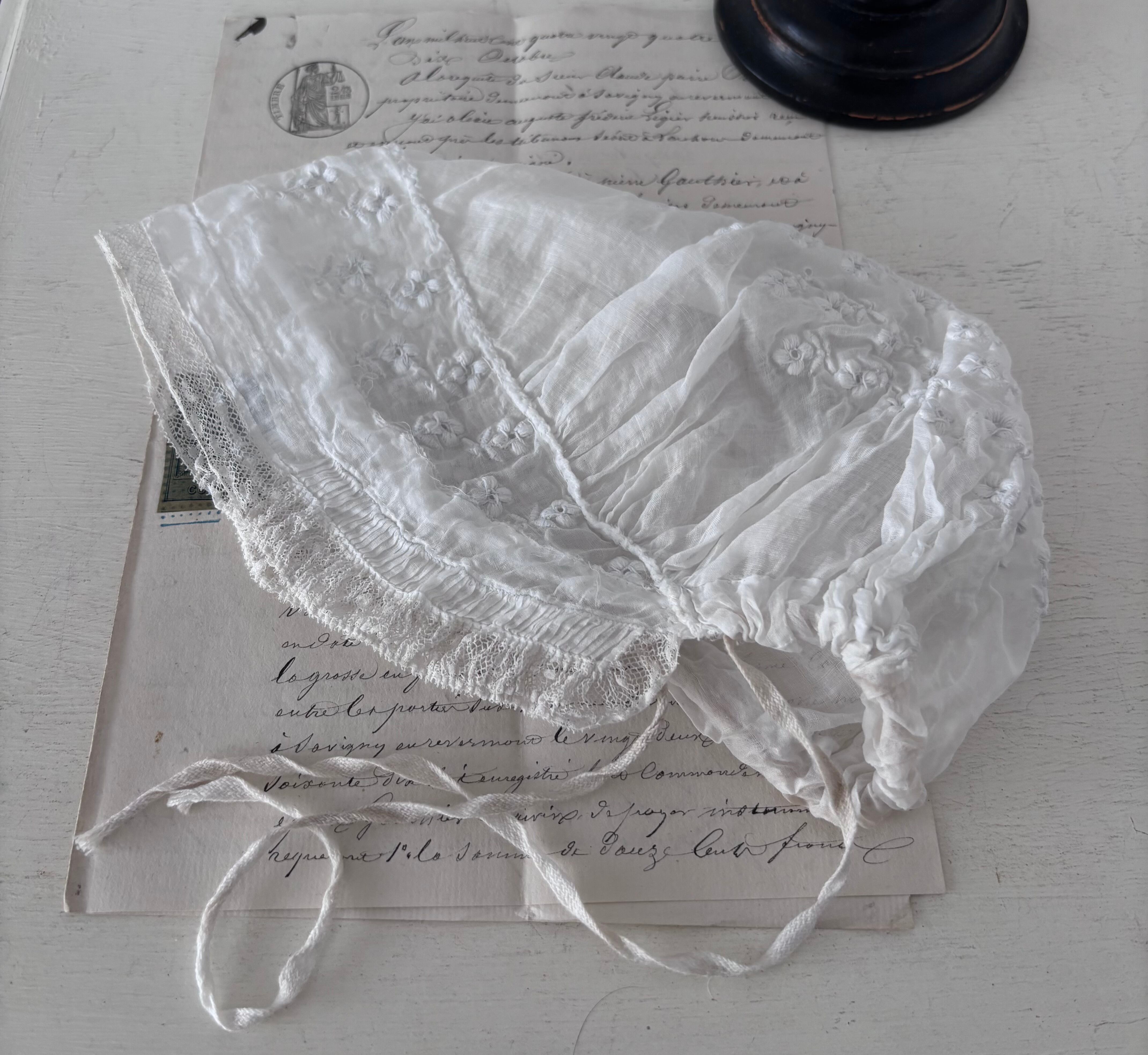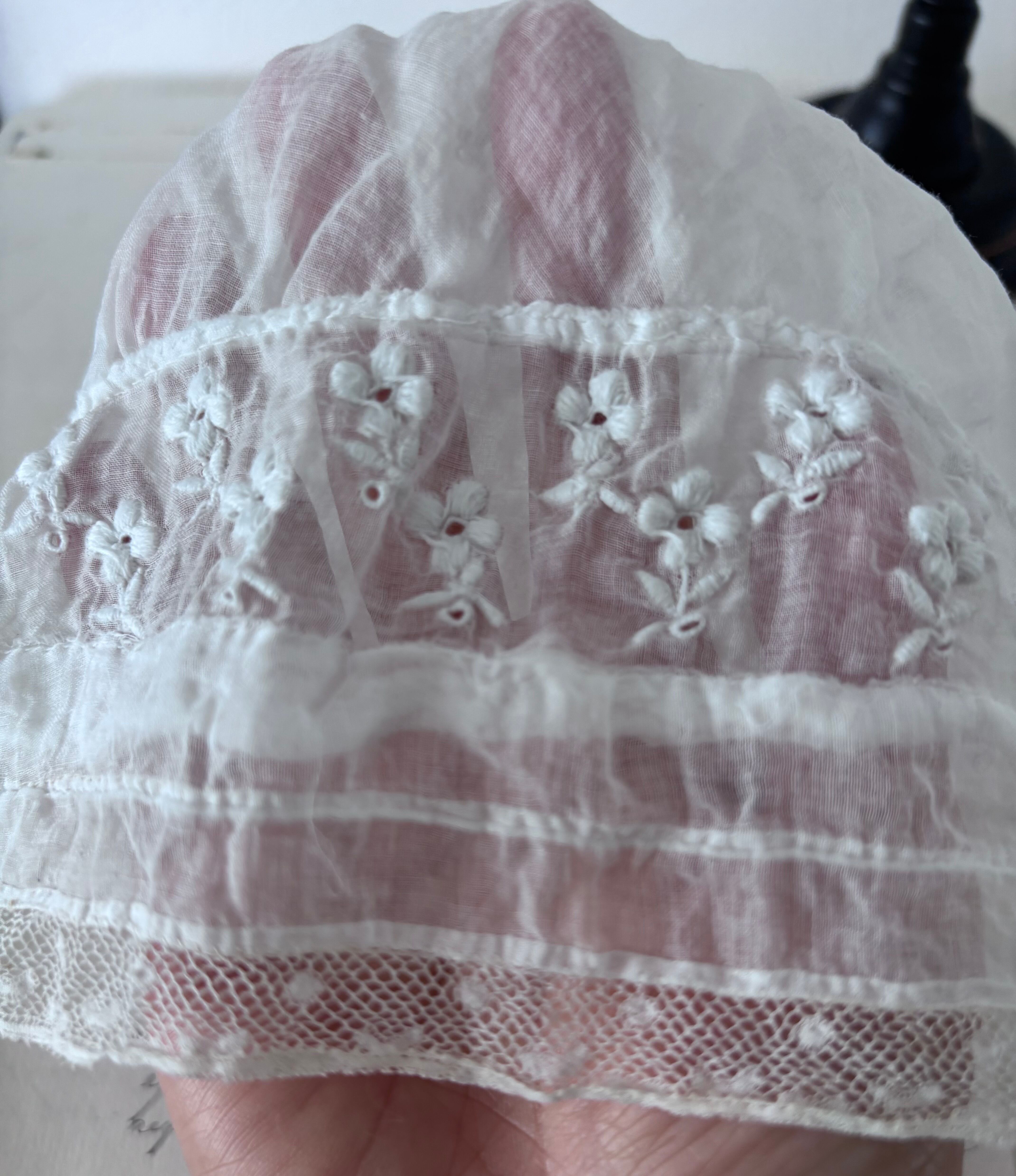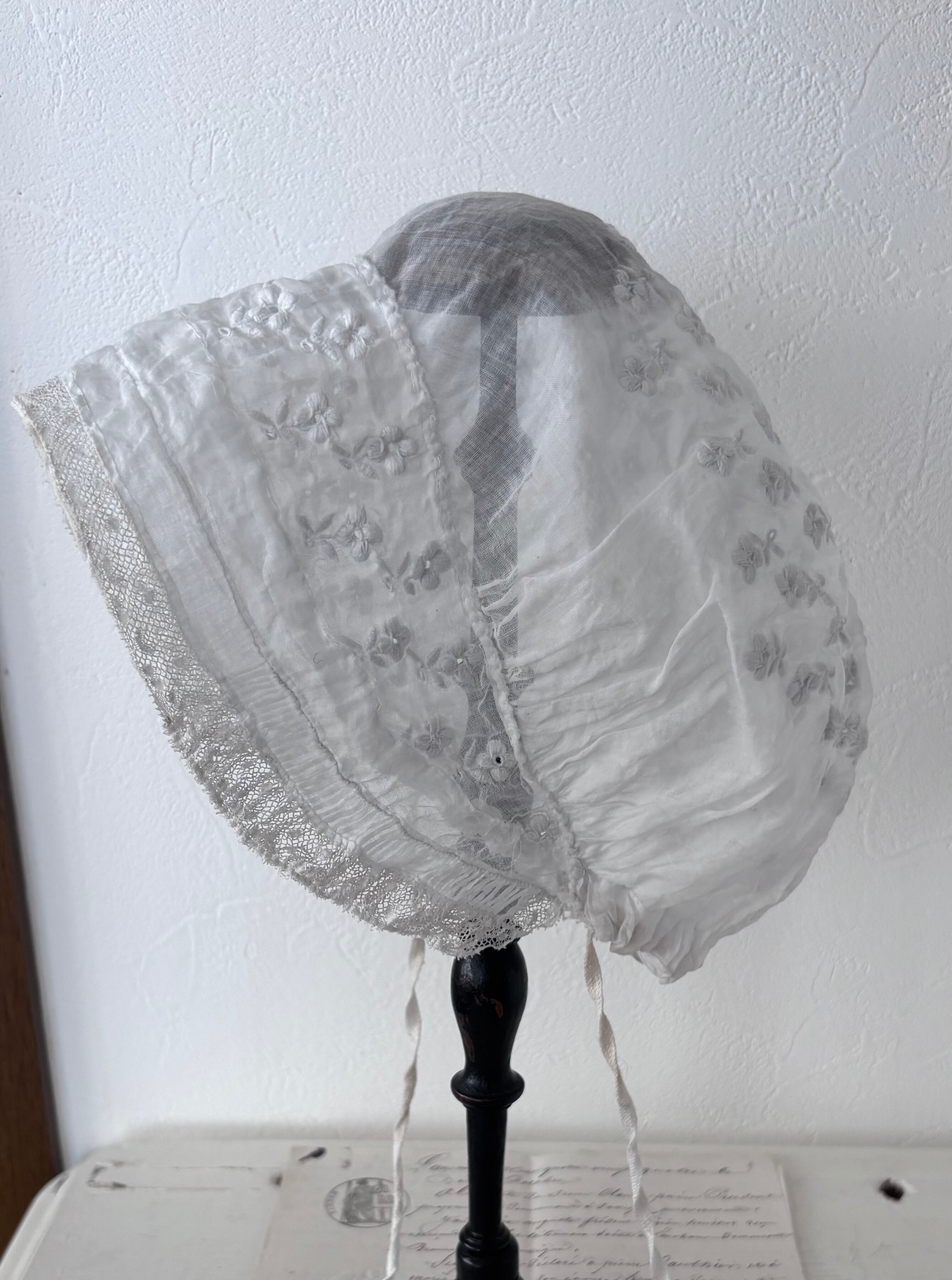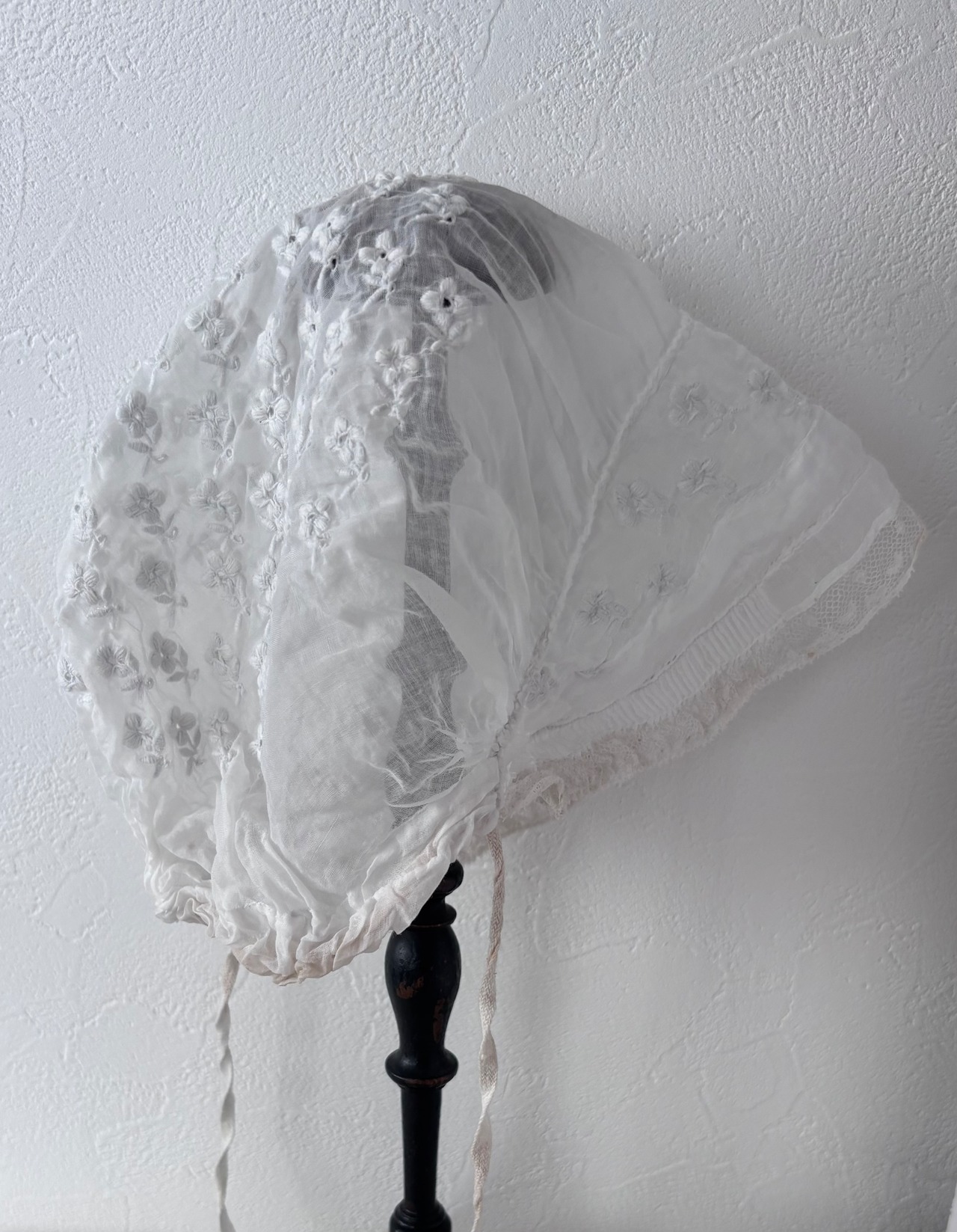 平置き二つ折り幅約17cmほどの、ベベ〜小さな幼児サイズのボネです。