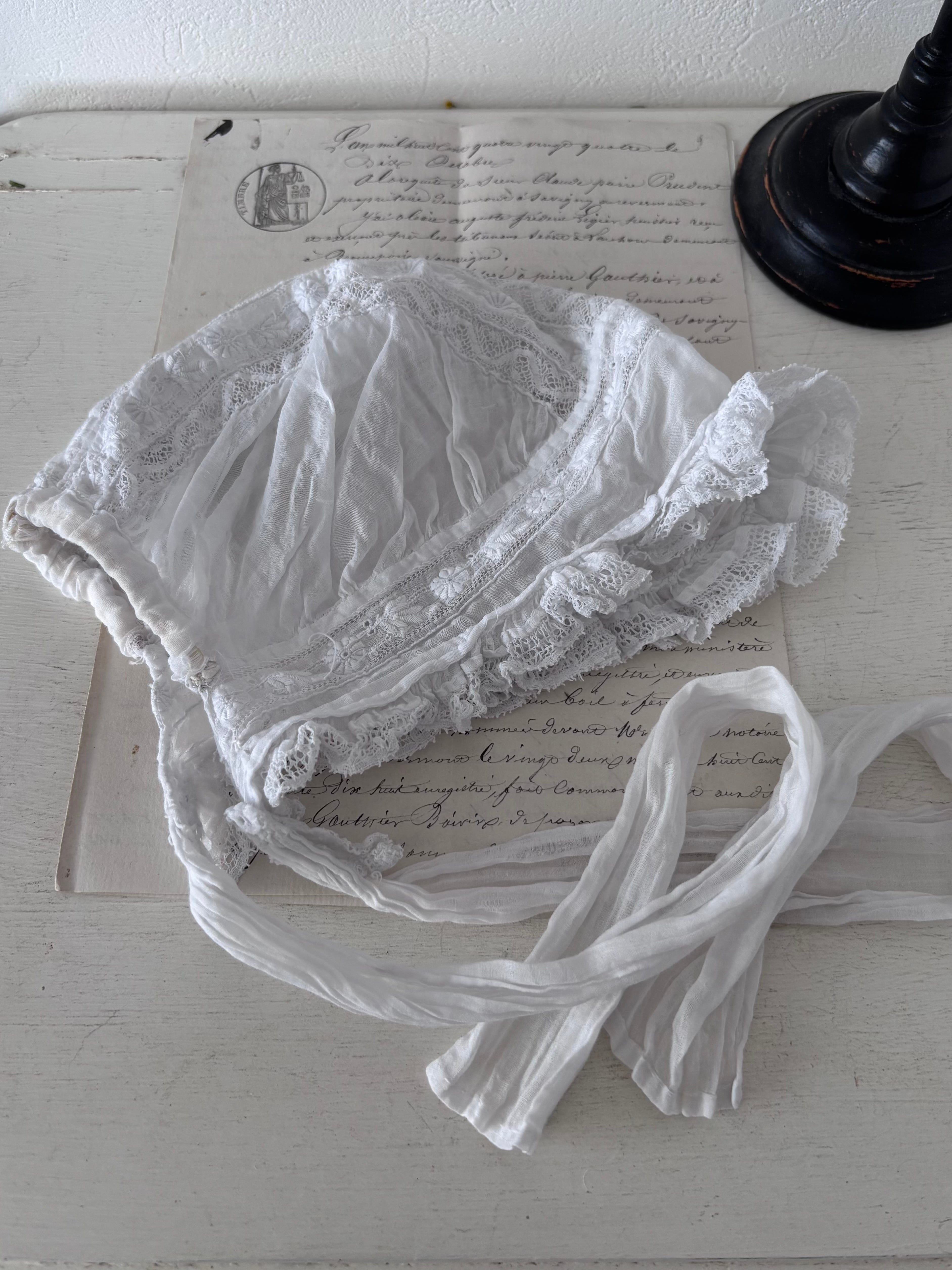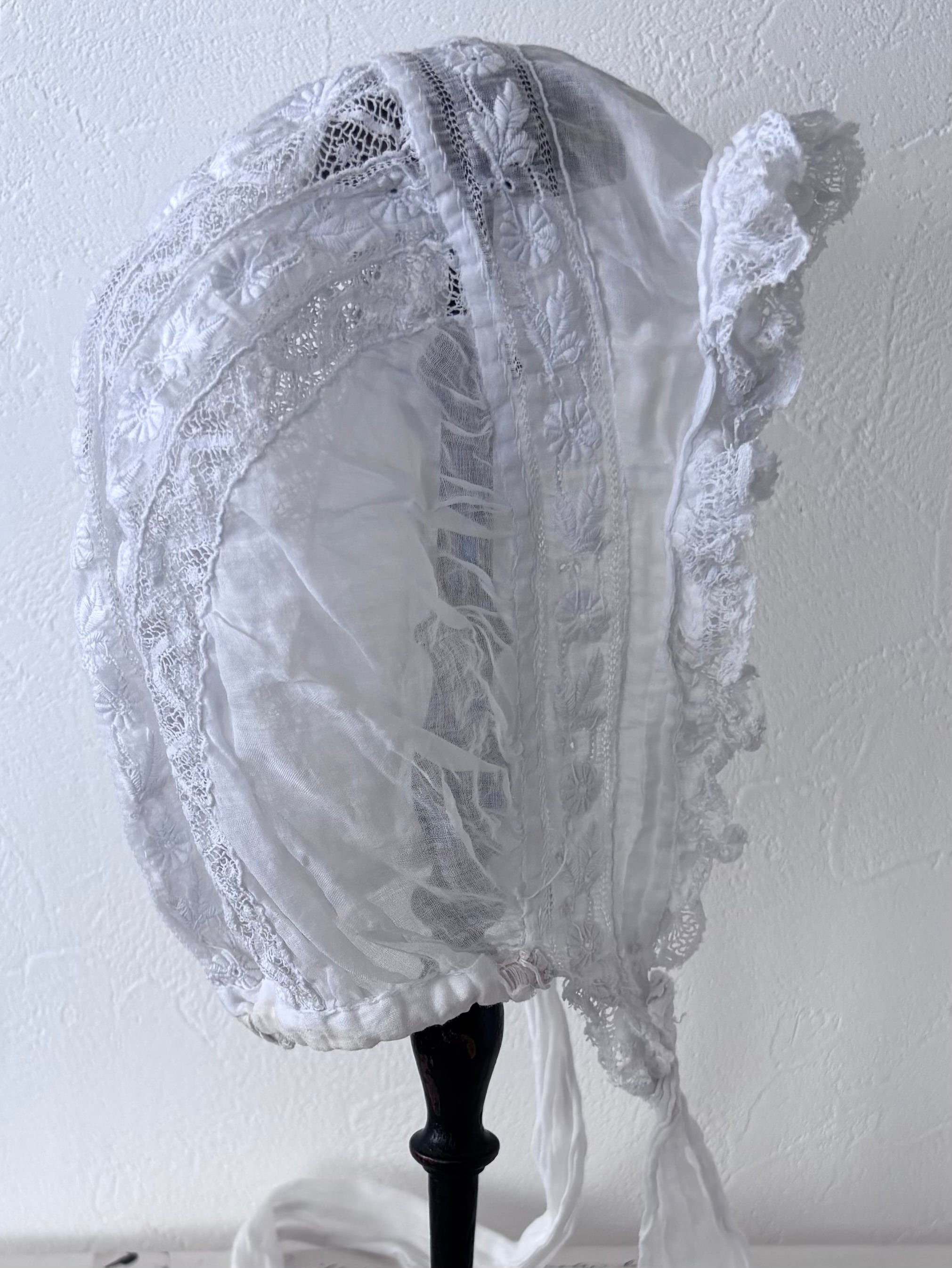 フランスの暮らしの中で大切に使われてきたことを感じる、やさしい雰囲気のアンティークボネです。