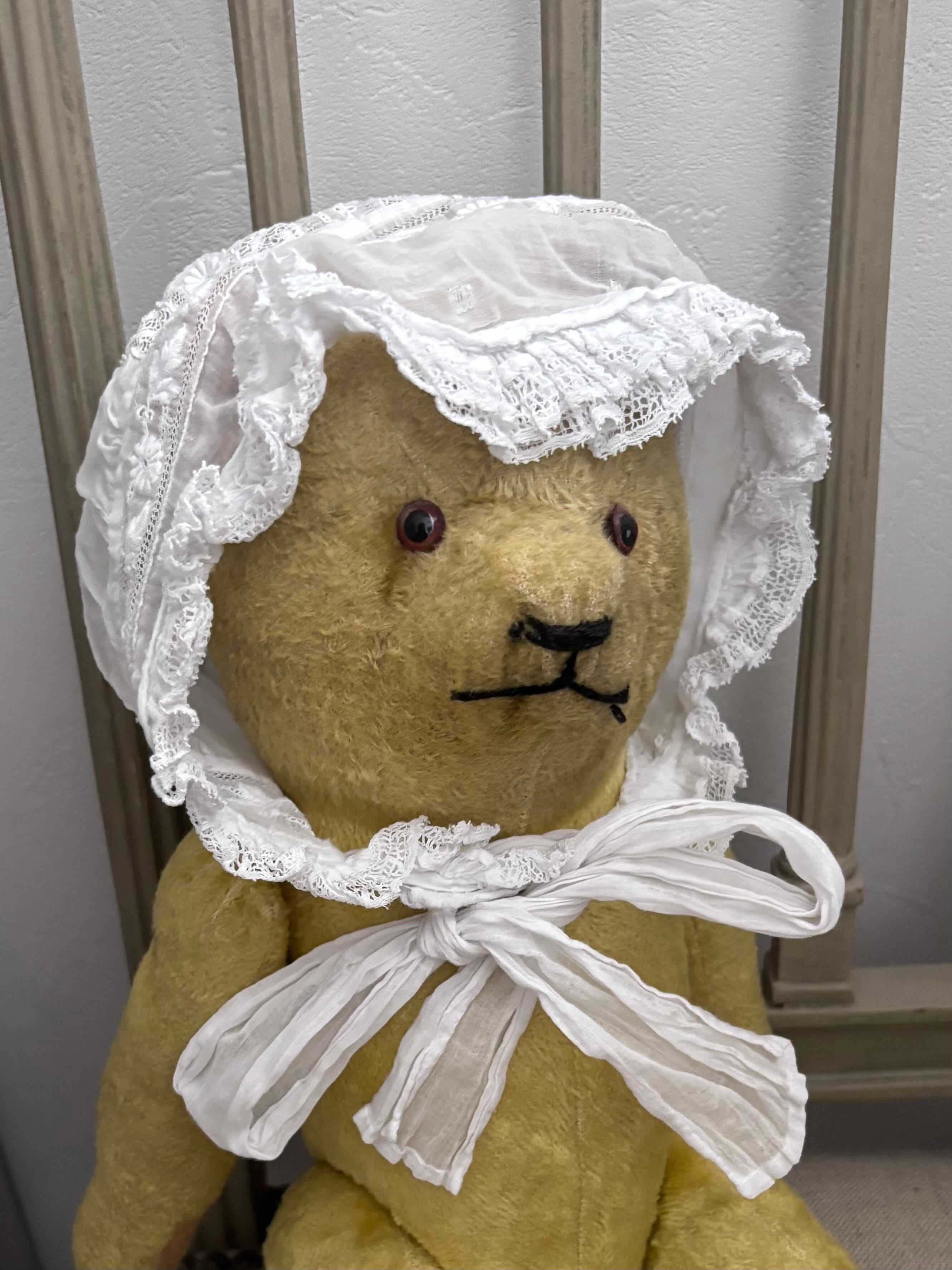 平置き二つ折り幅約16cmほどの、ベベ〜小さな幼児サイズのボネです。