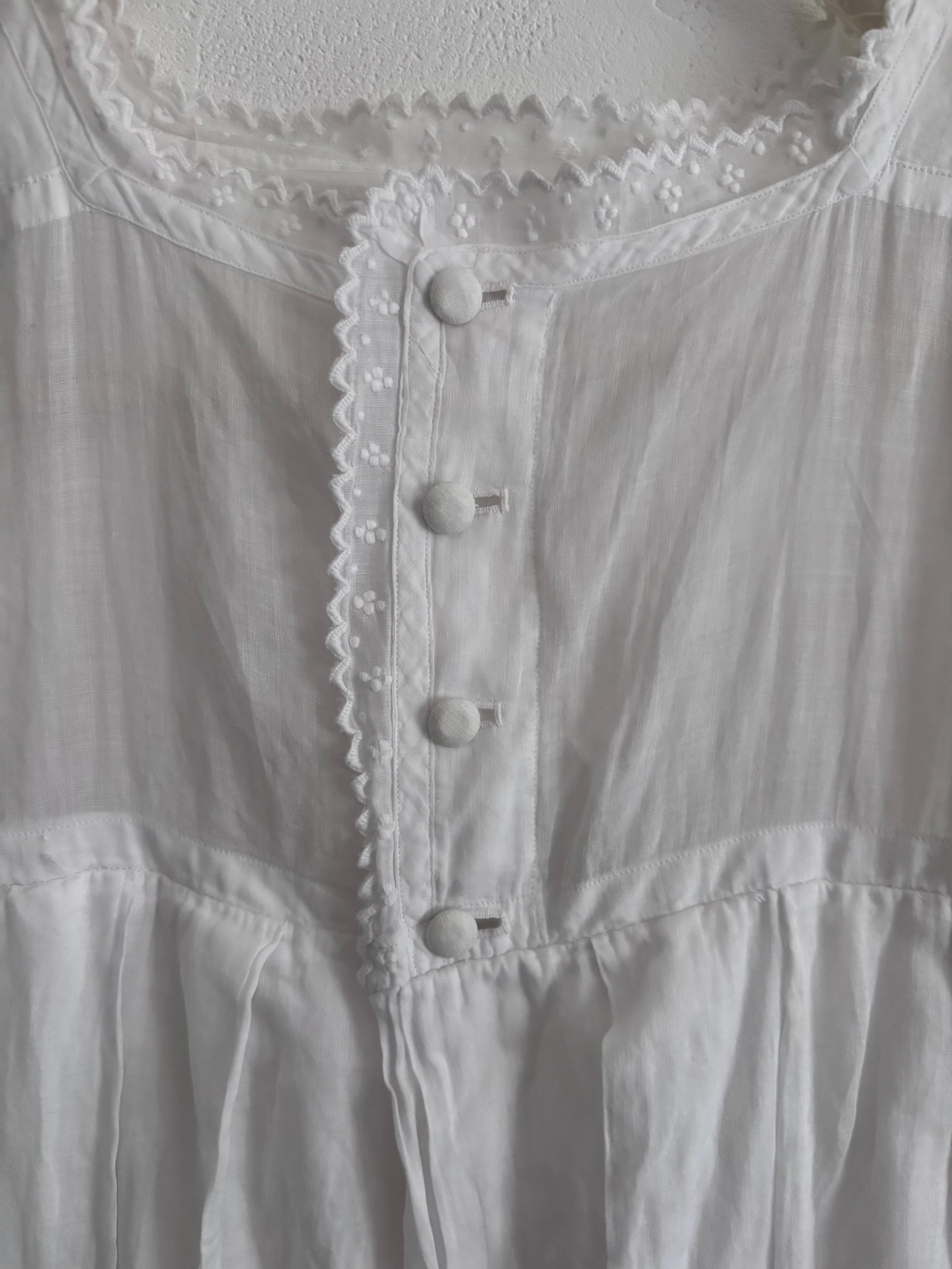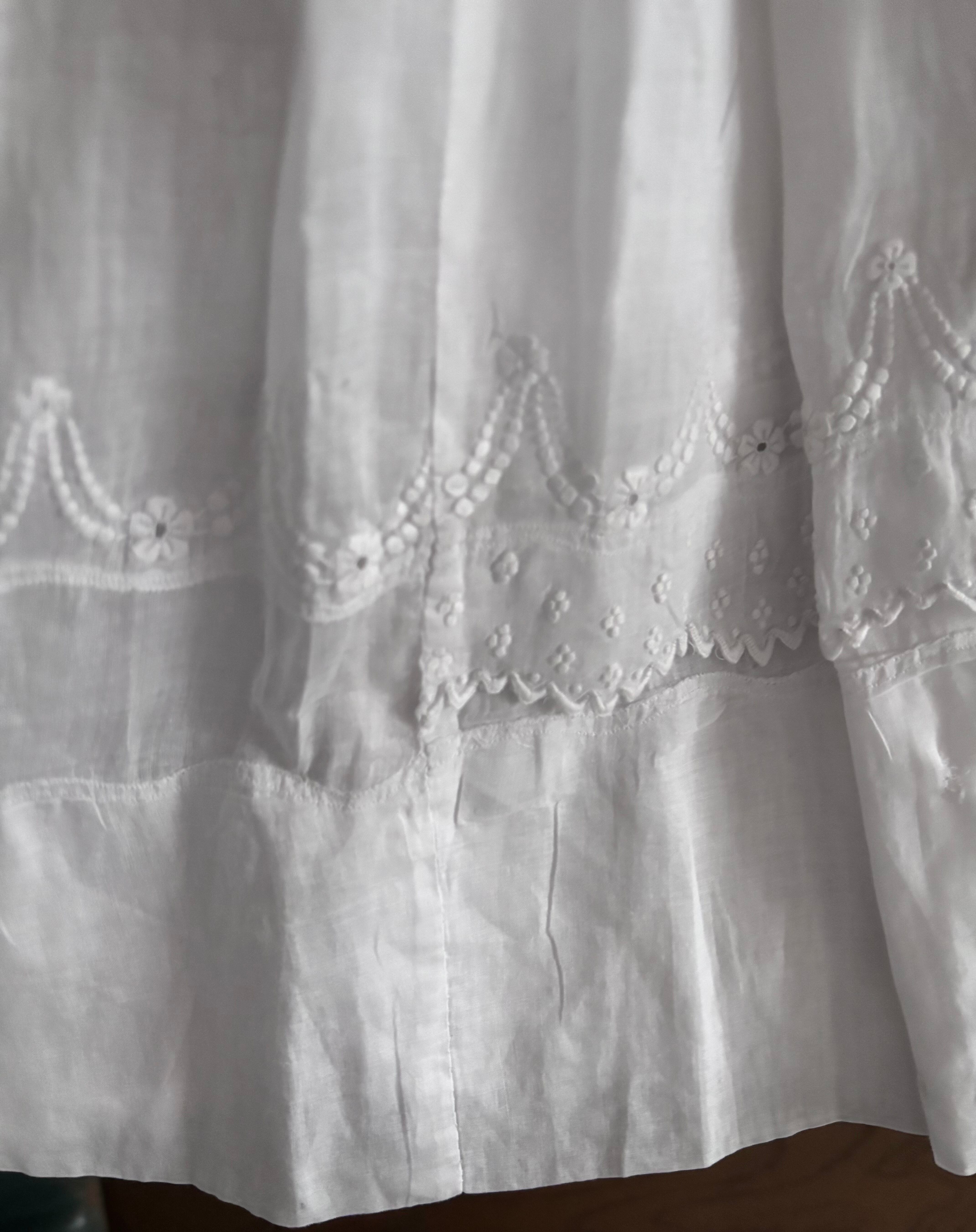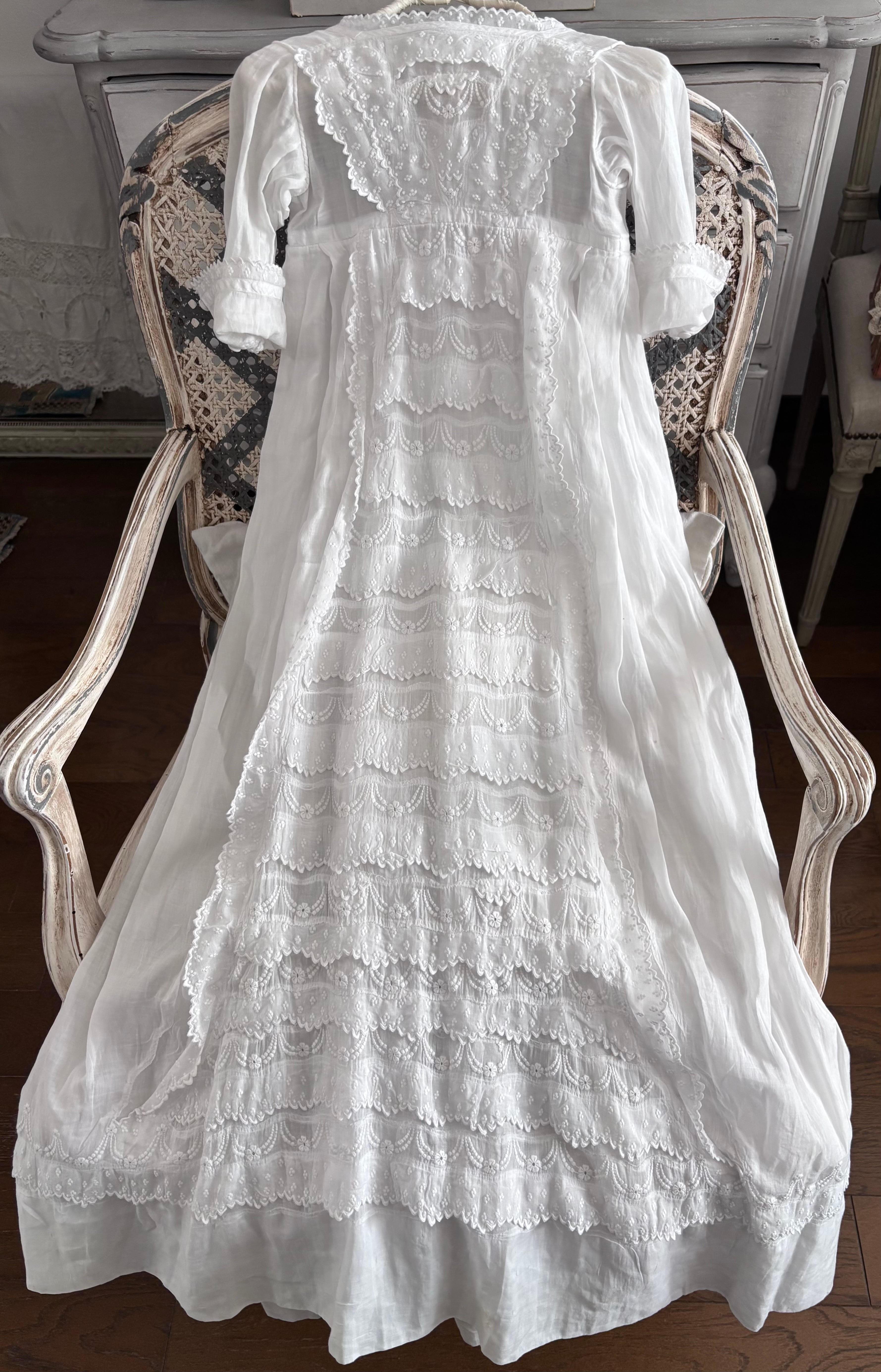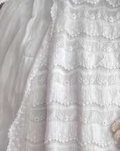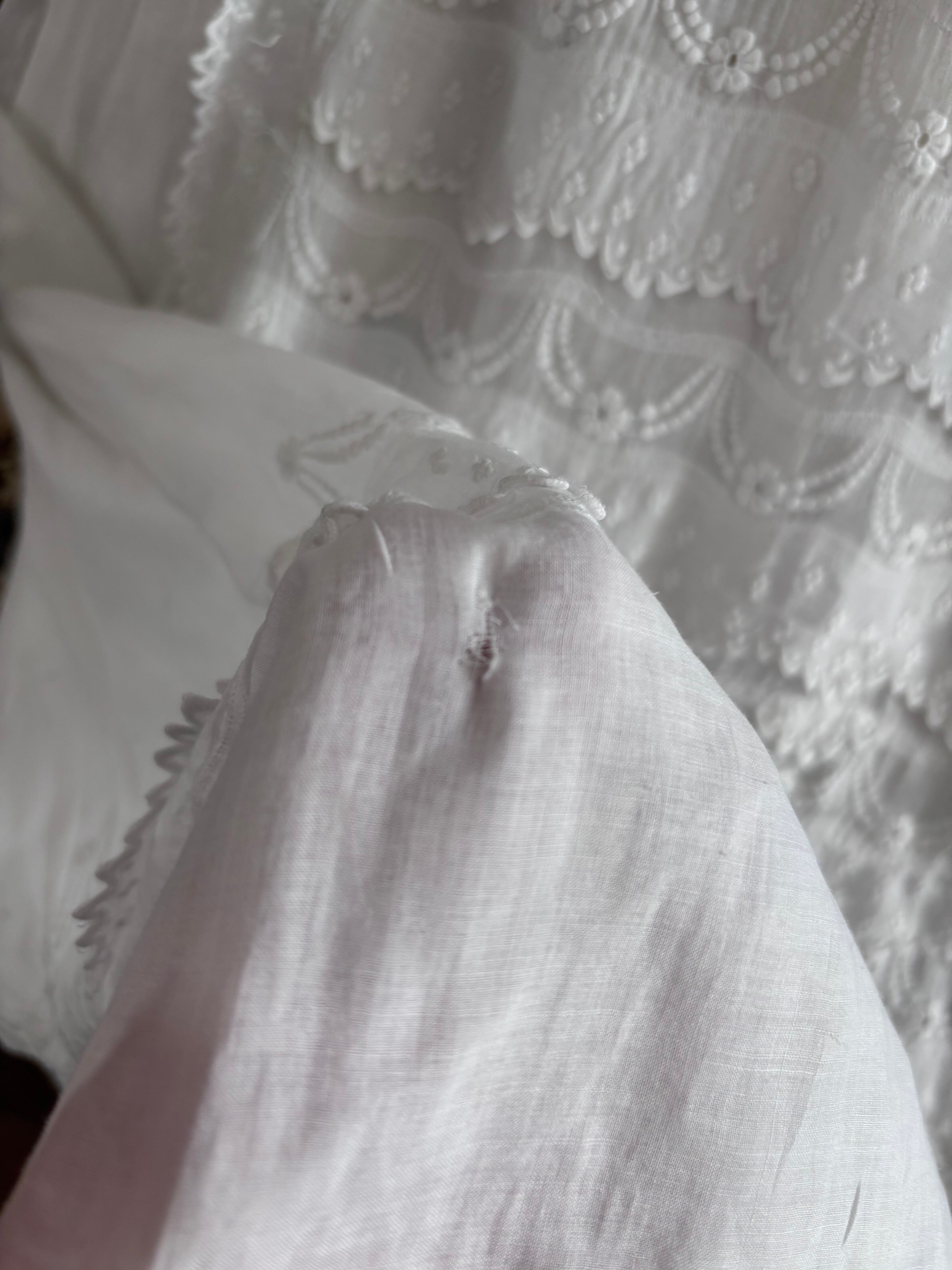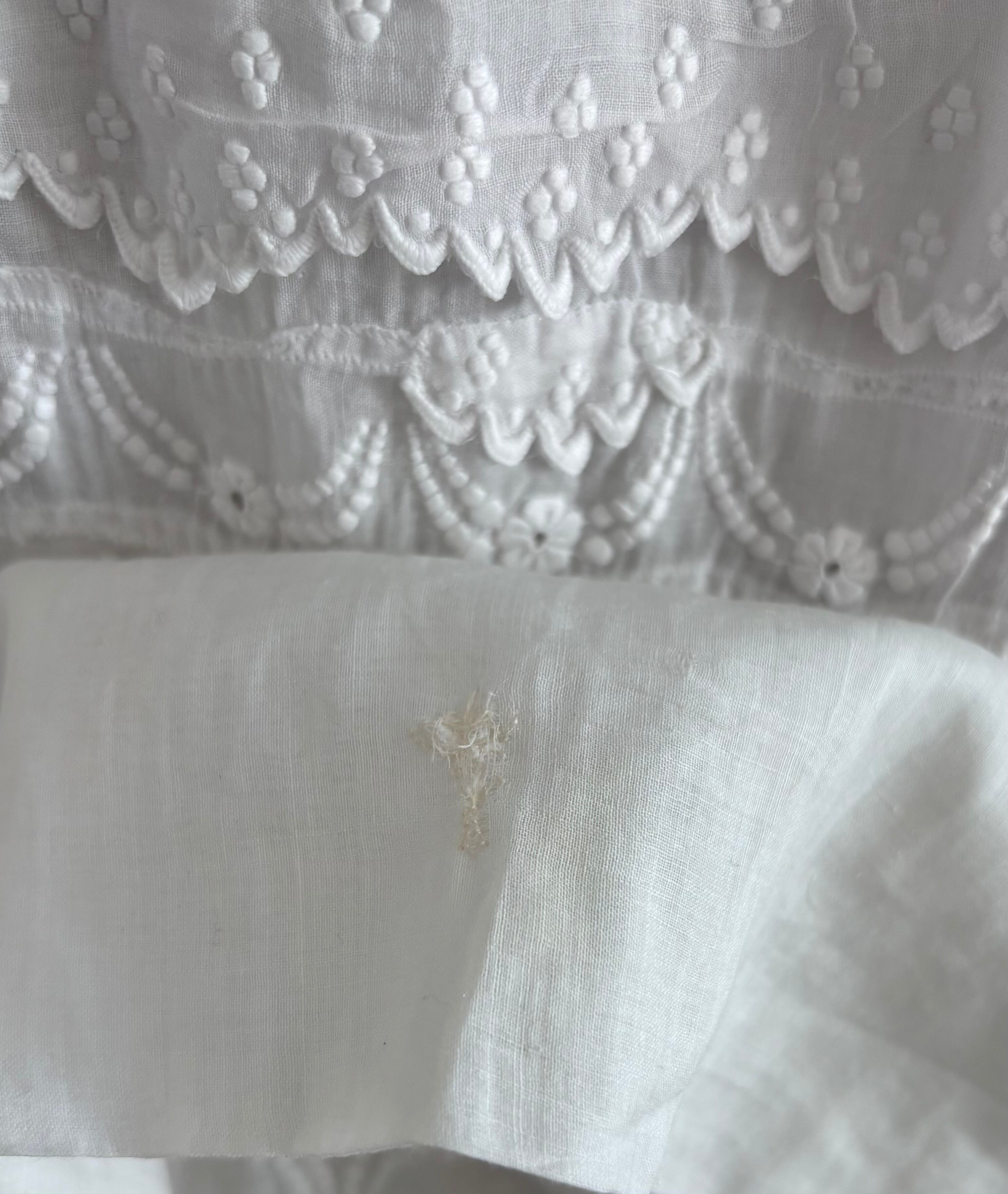 やわらかな透け感のあるホワイトコットンに、繊細な刺繍が贅沢にあしらわれた、フランスの古いベビードレスです。