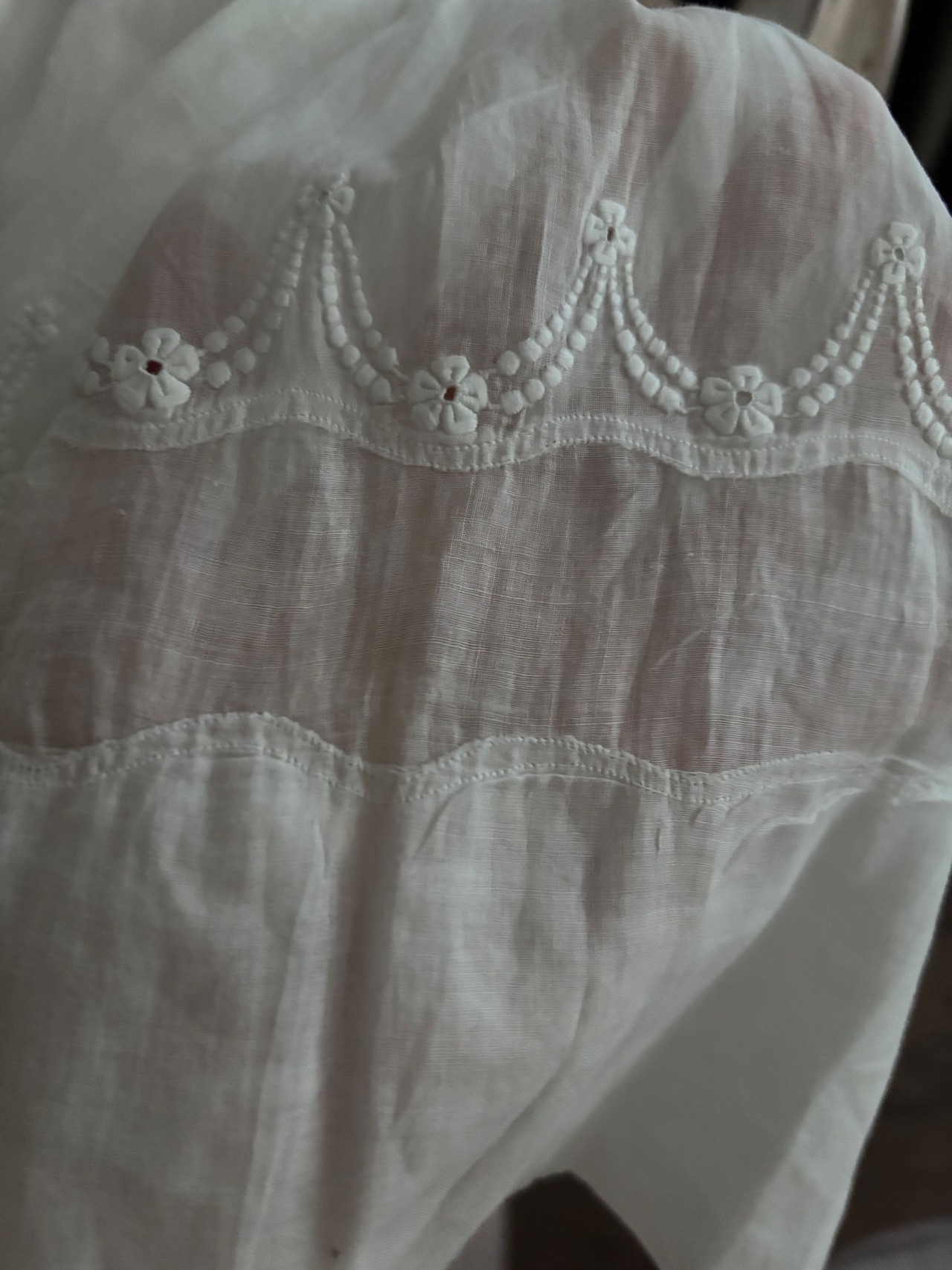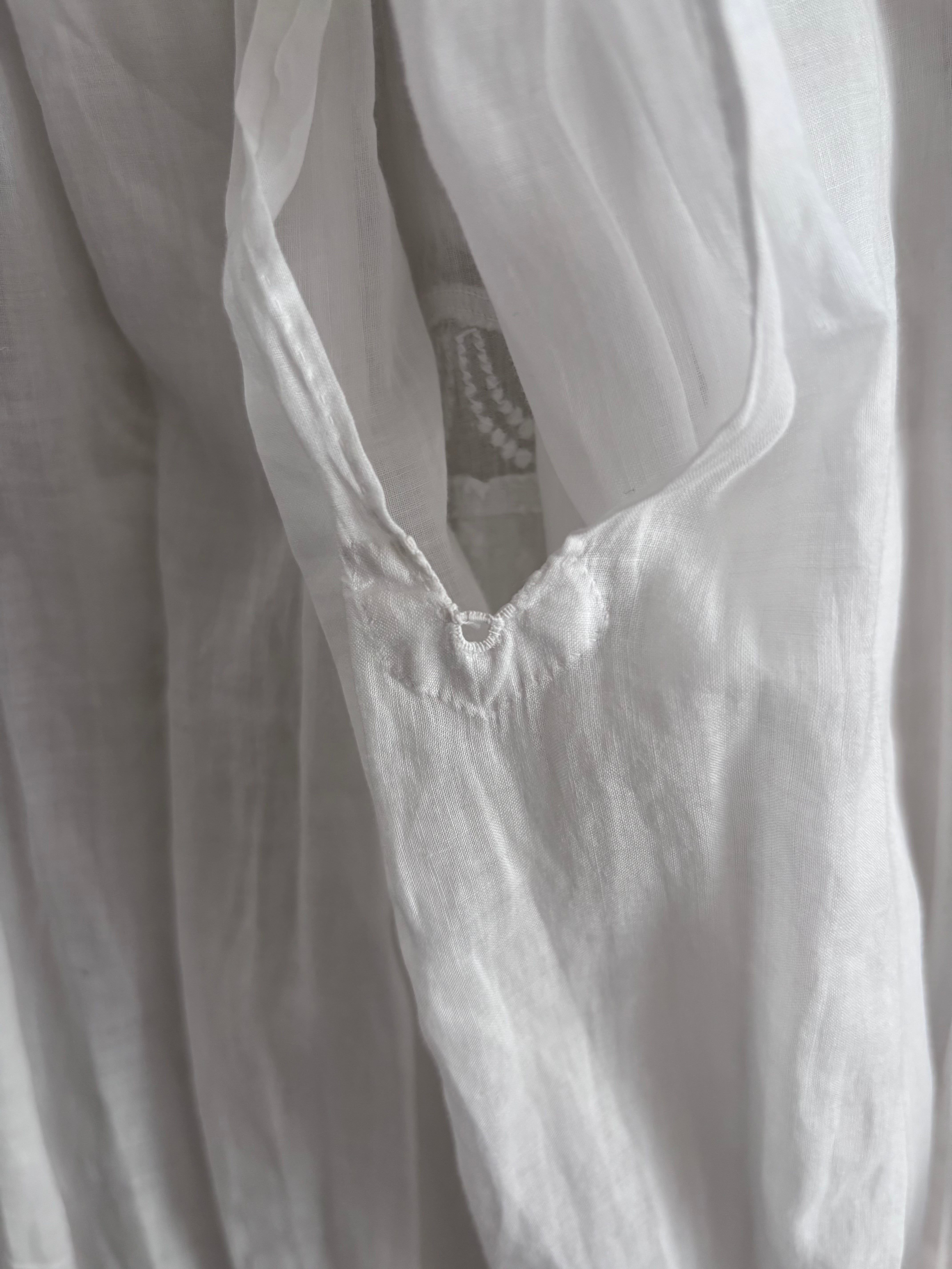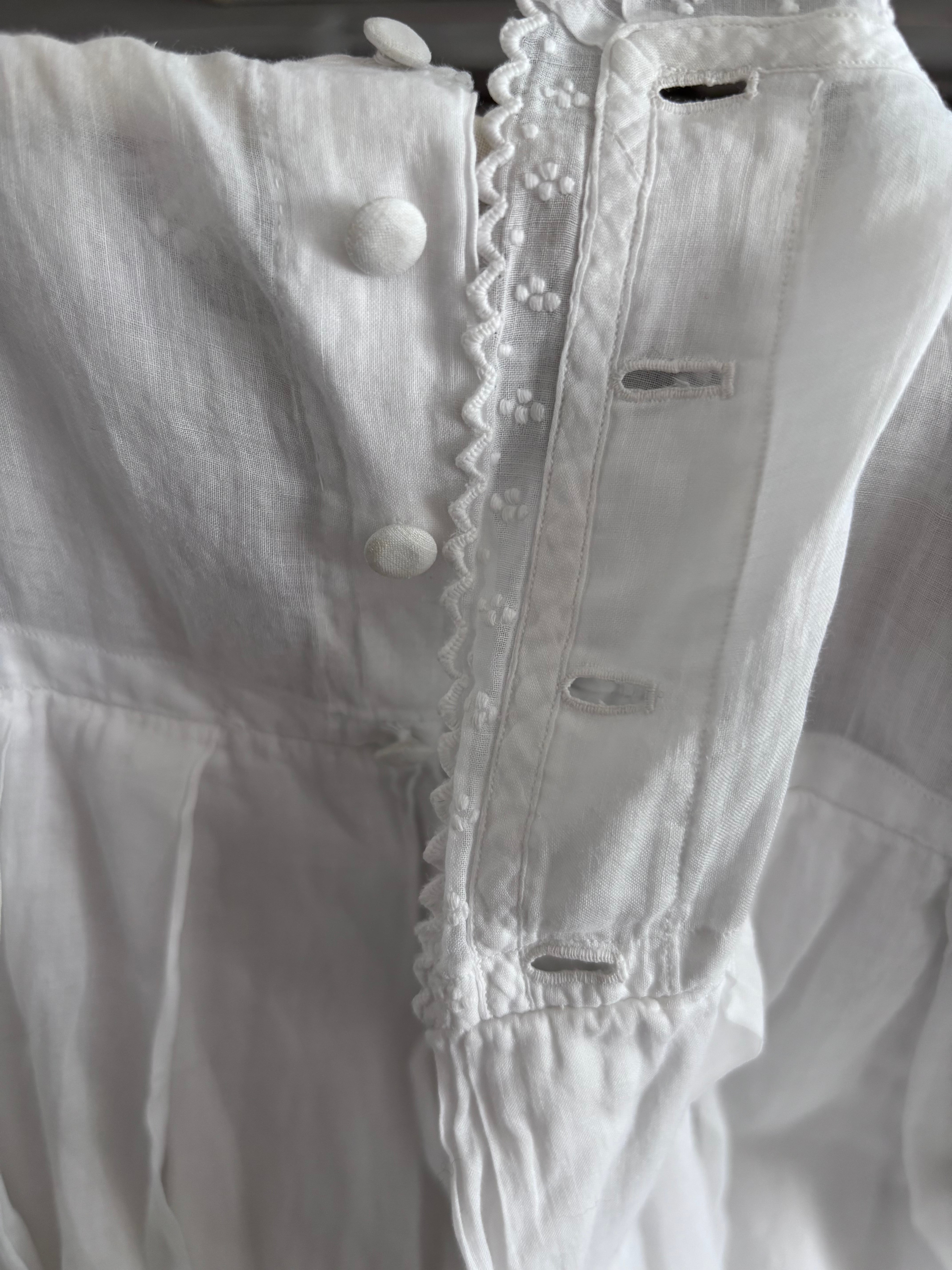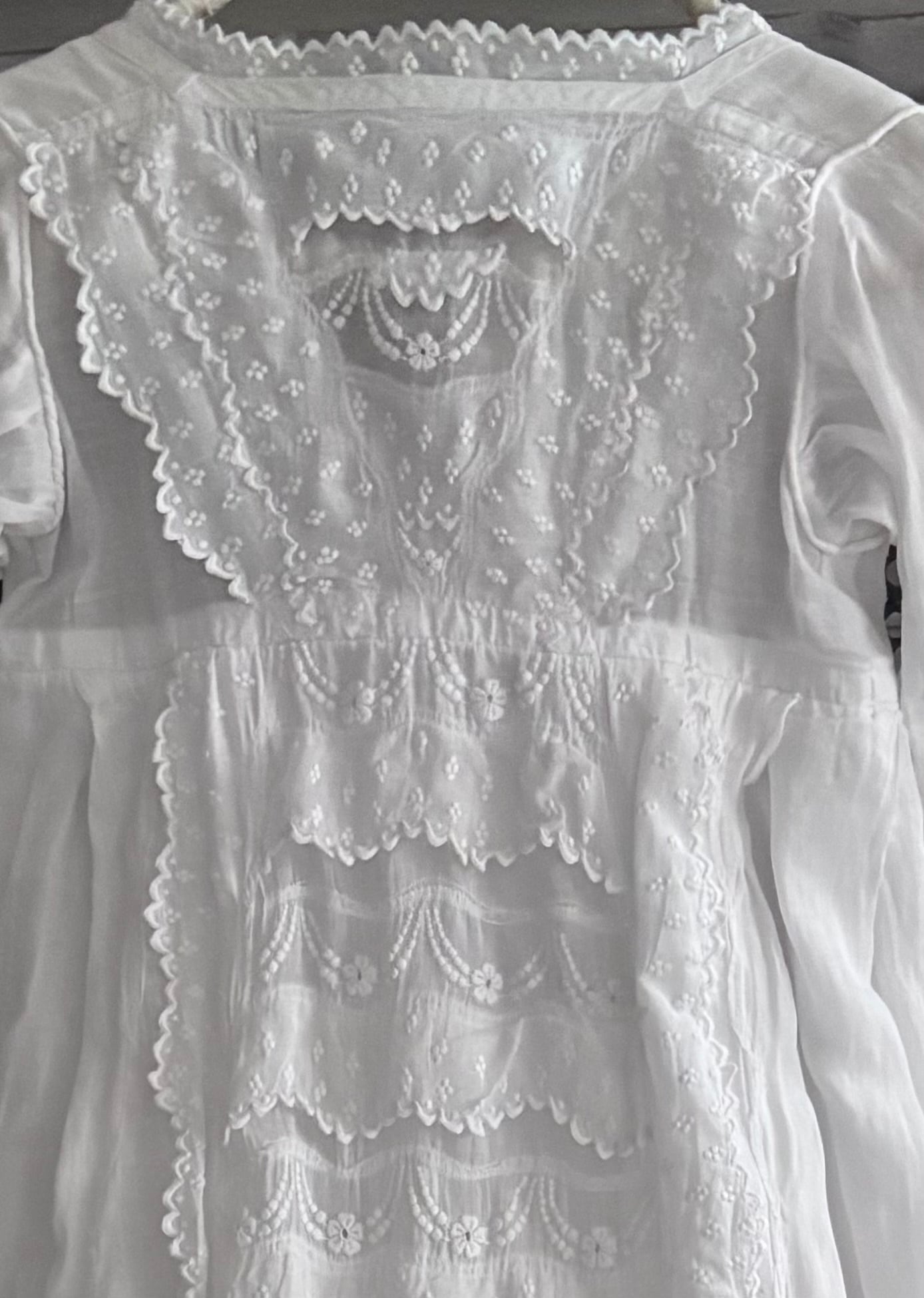 やわらかな透け感のあるホワイトコットンに、繊細な刺繍が贅沢にあしらわれた、フランスの古いベビードレスです。