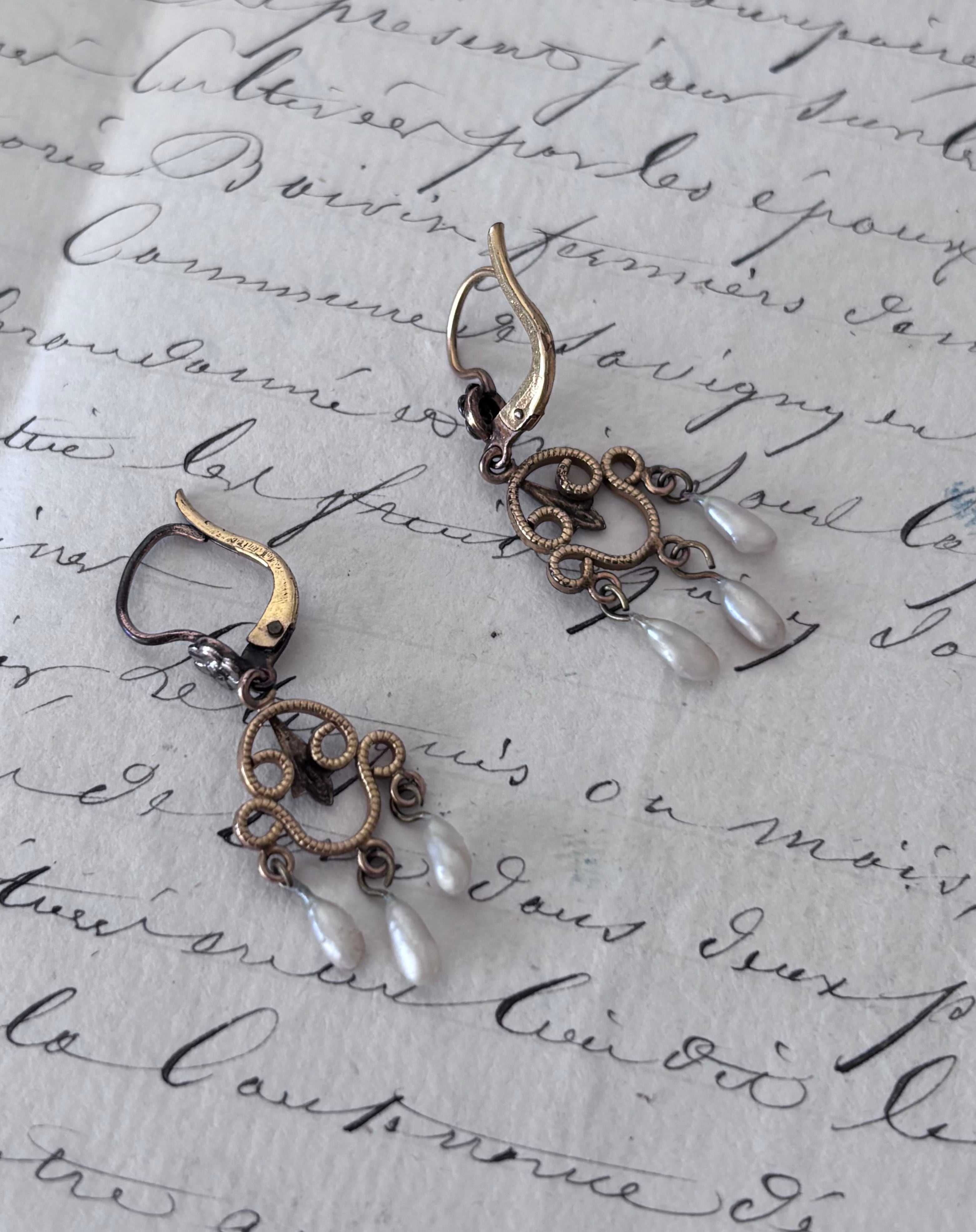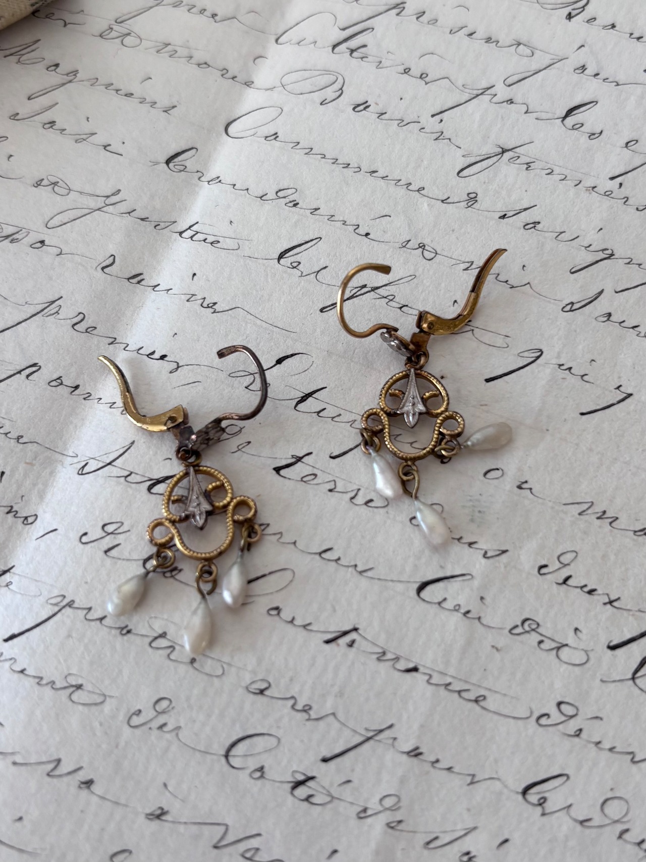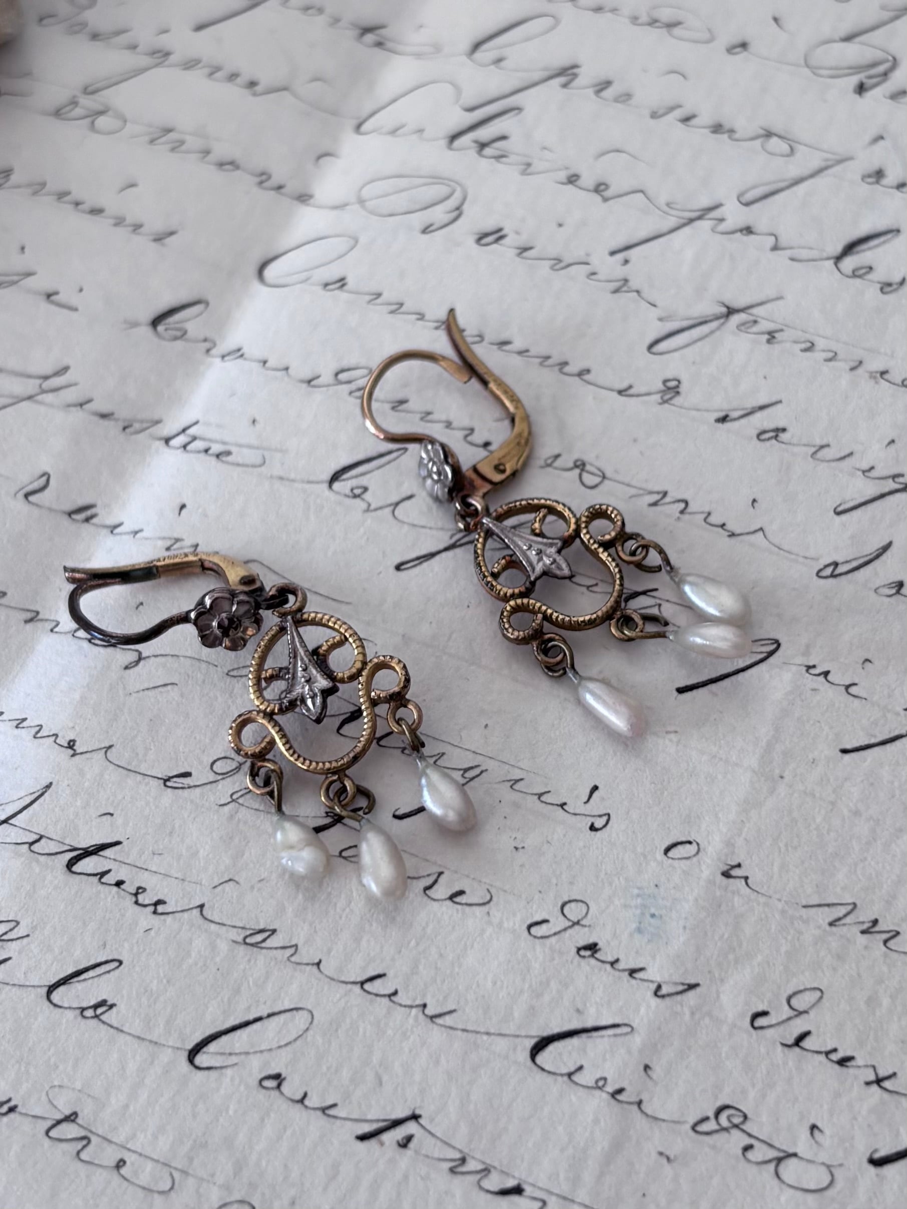 Fleur 花と雫の揺れるアンティークピアス