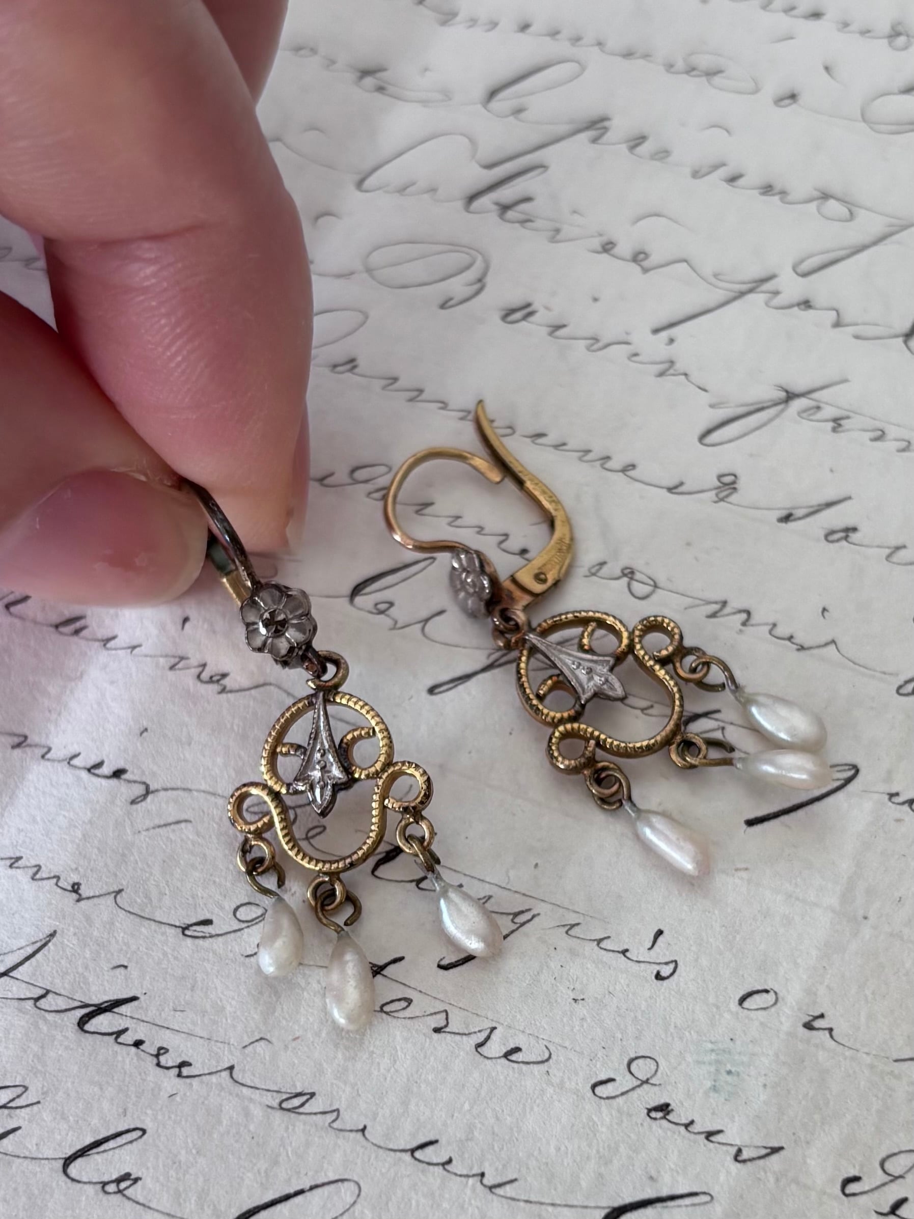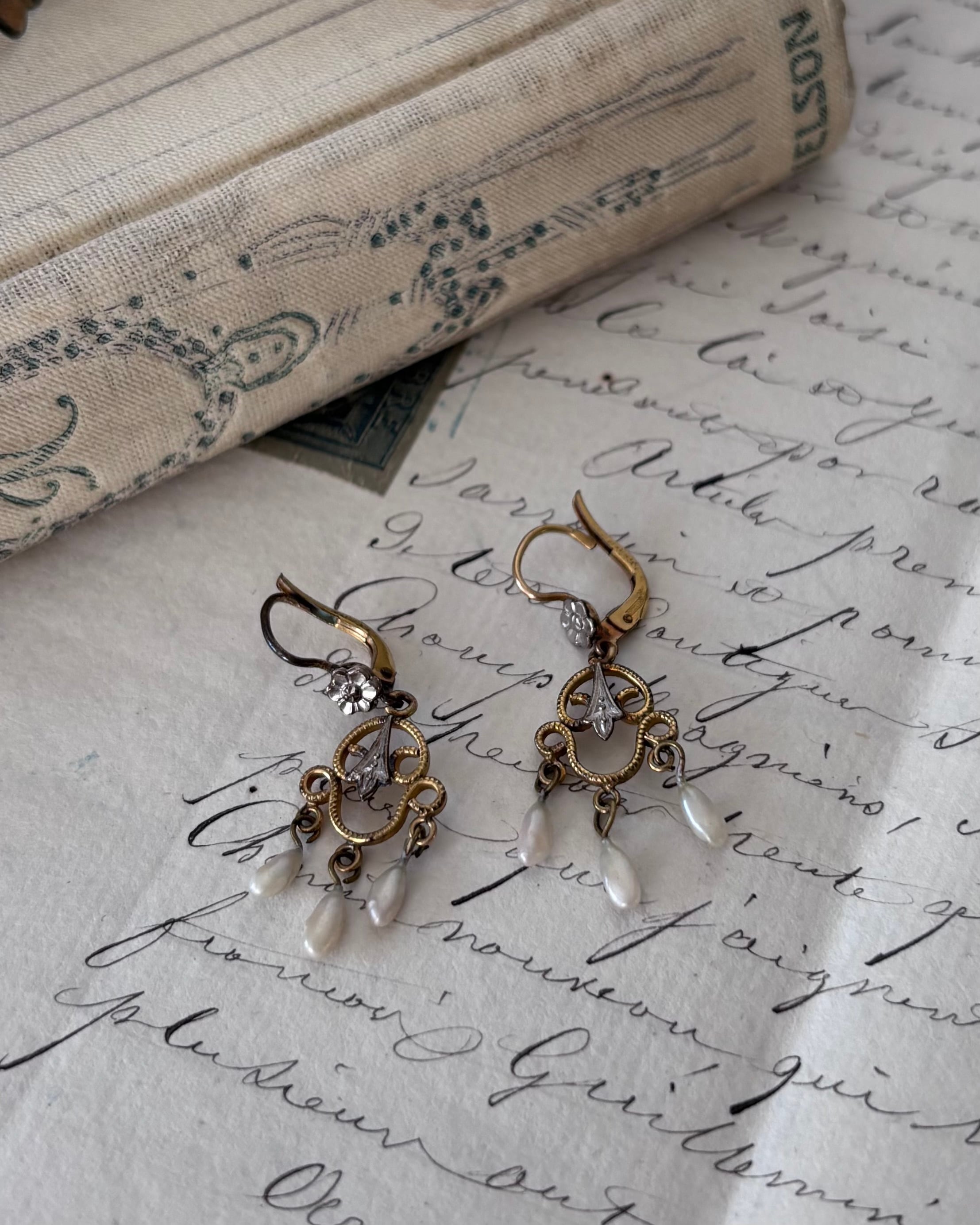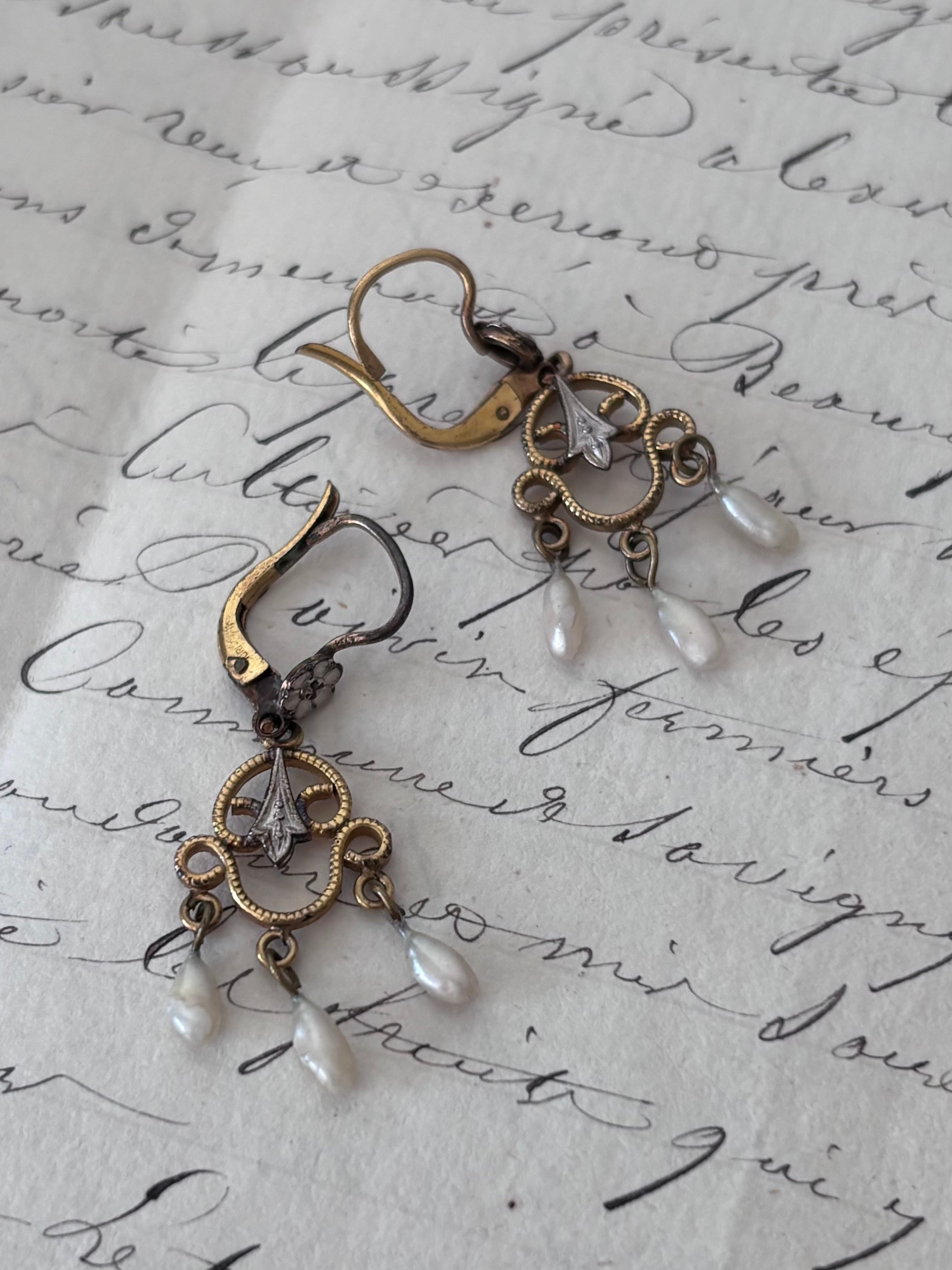 Fleur 花と雫の揺れるアンティークピアス