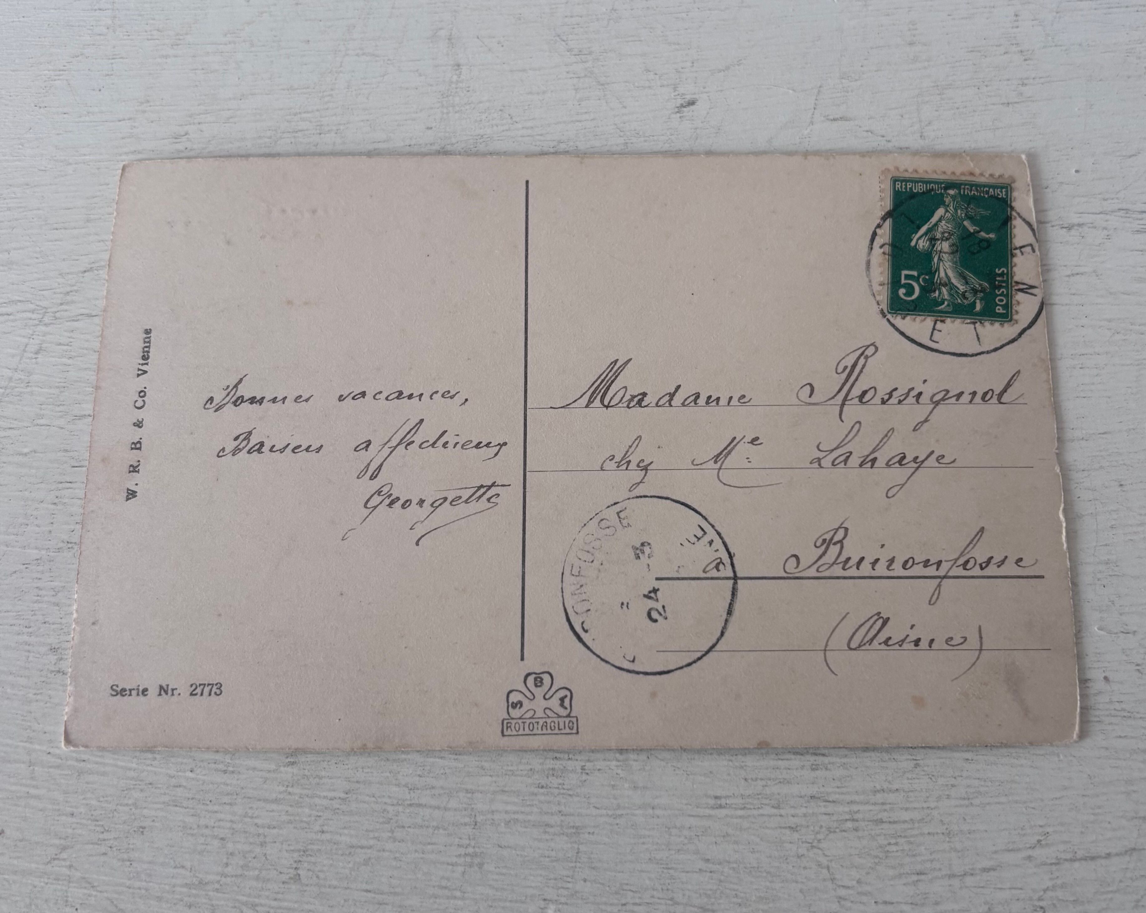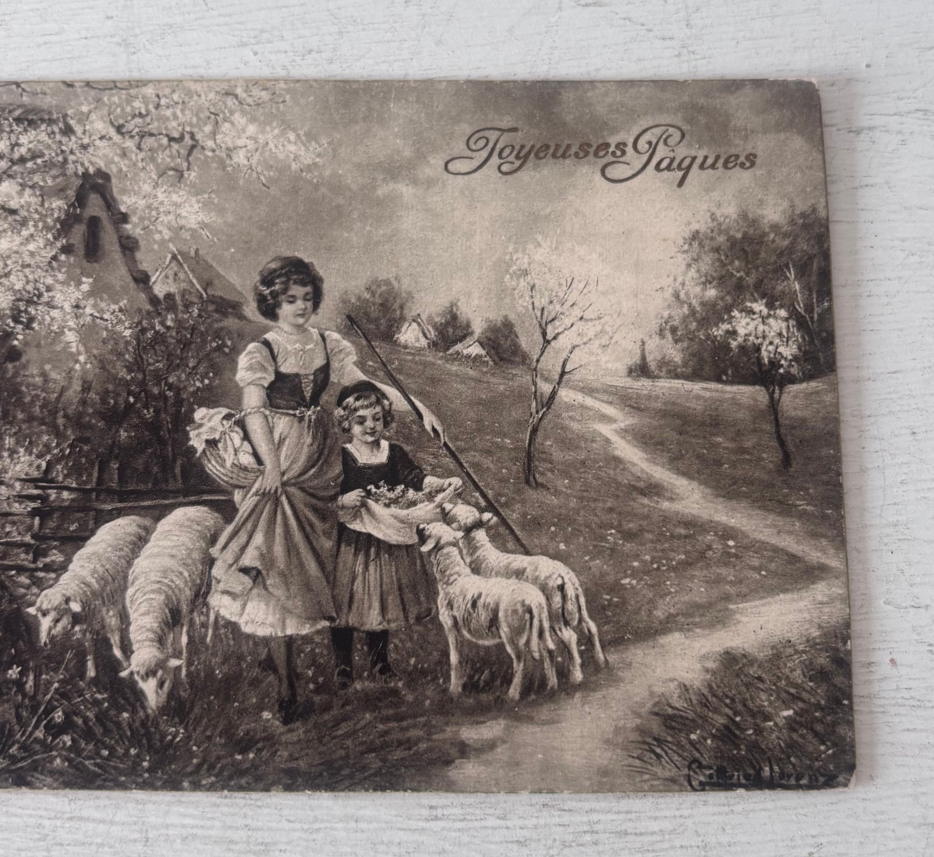 フランスの復活祭を祝う言葉「Joyeuses Pâques」が添えられた、アンティークポストカードです。