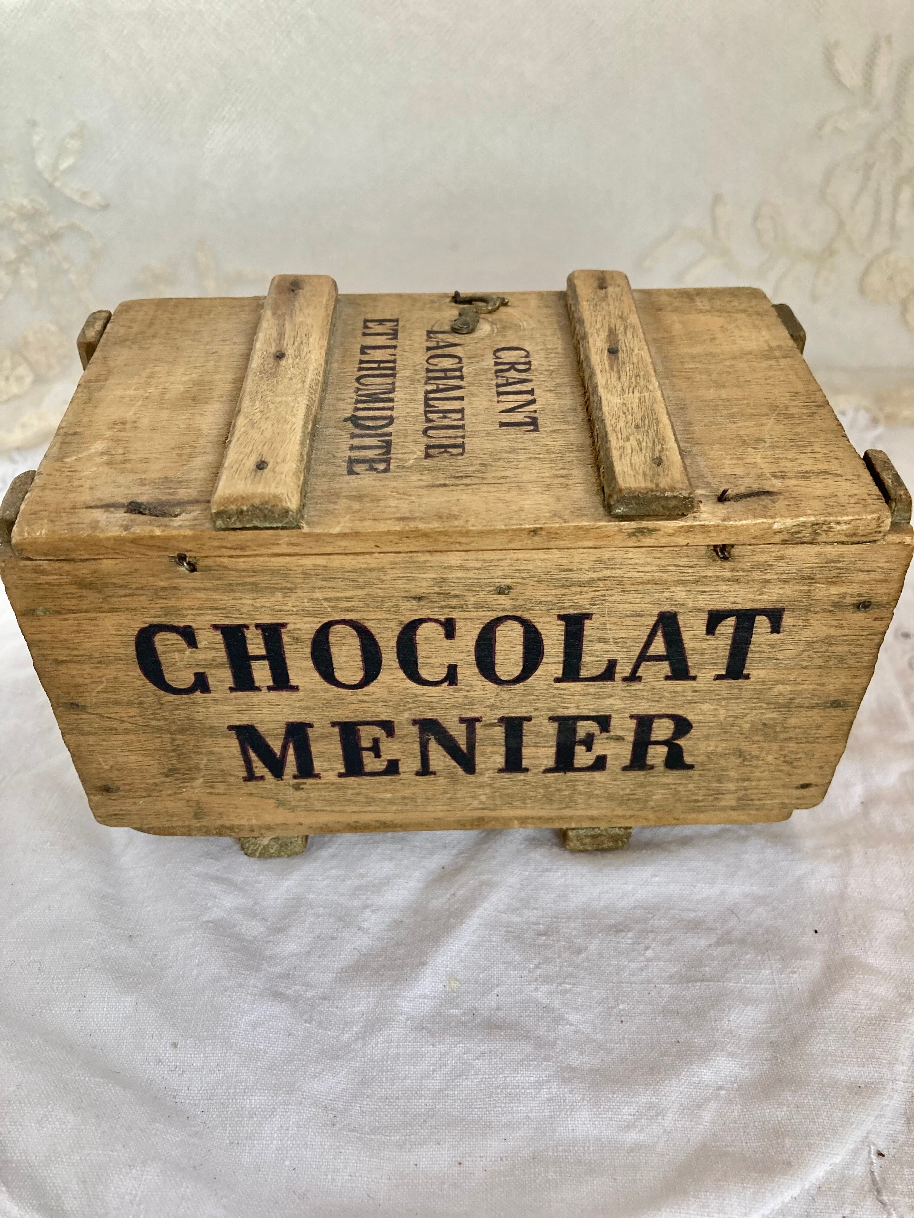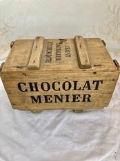 1816年創業『CHOCOLAT MENIER』のミニチュア木箱です。小さなサイズながら蝶番が付いていて凝った作りになっています。