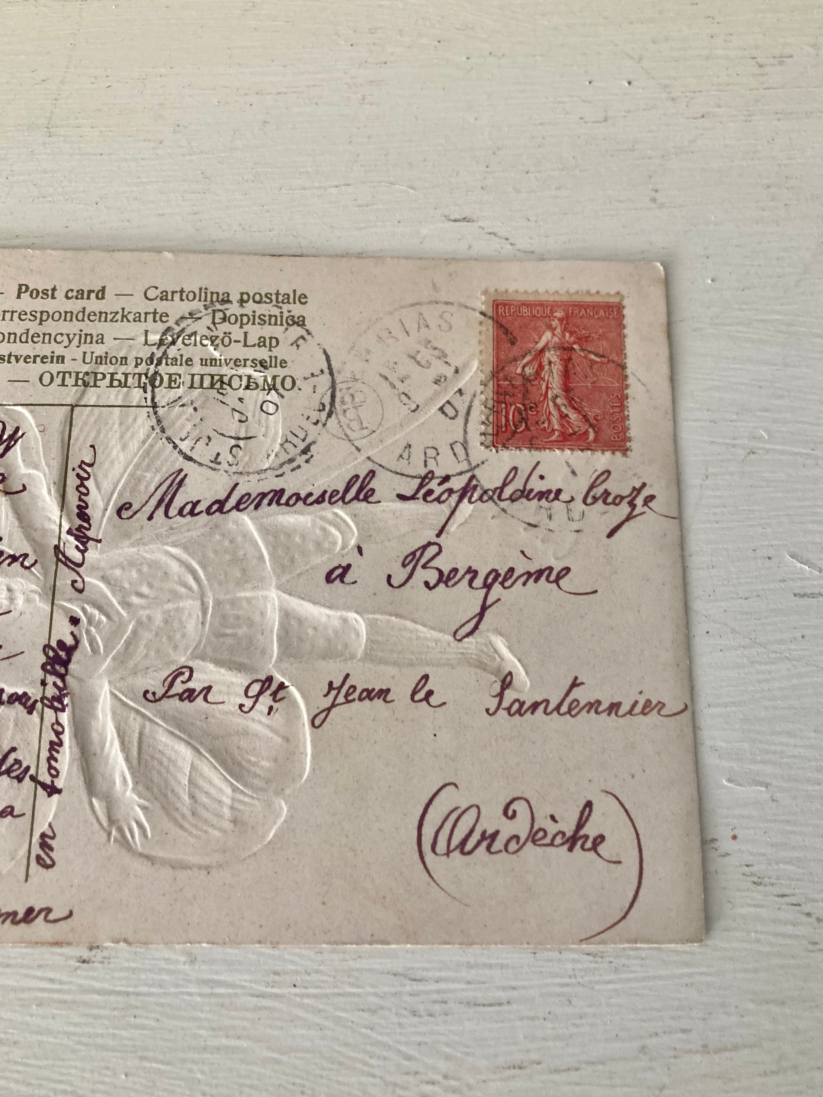 アンティークポストカード garçon et fille クローバー