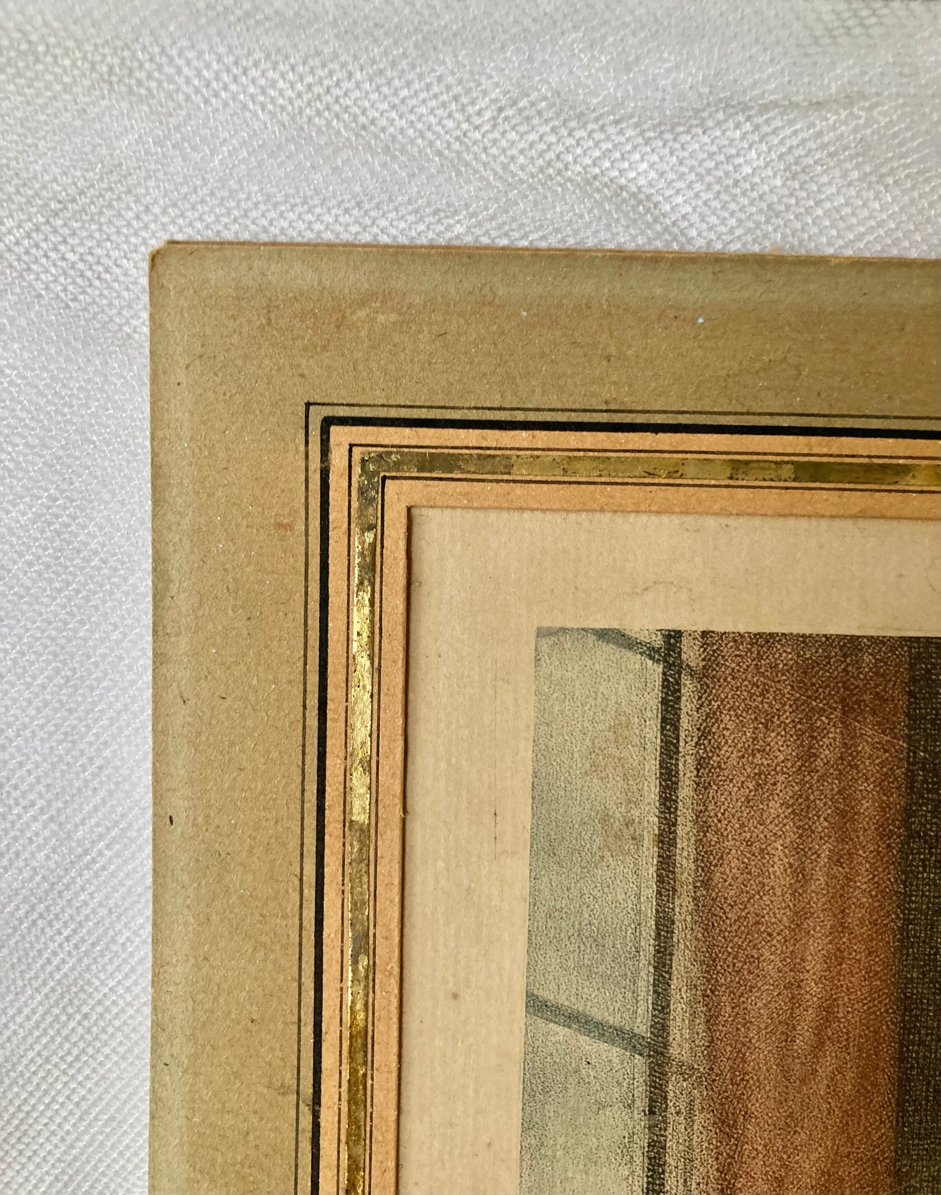 パリの蚤の市で出会った窓際で憩う母子の印刷画です。クラシックで優しい雰囲気に惹かれ手に取りました。薄いペーパーですが金彩の入ったマット付きで額に入れて飾って頂けます。