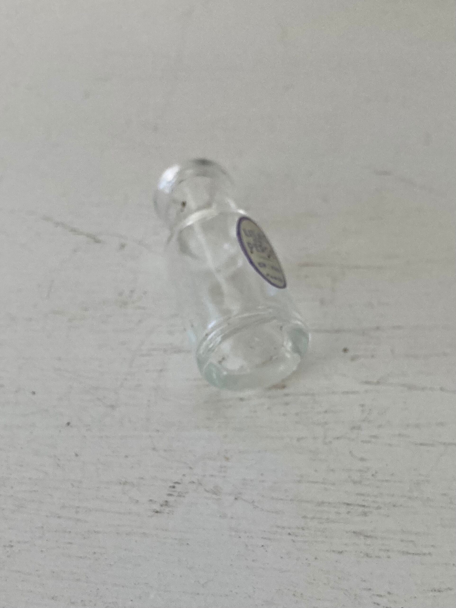 蚤の市で出会ったLILAS DE PERSEのステッカーが貼られた小さなガラス瓶です。