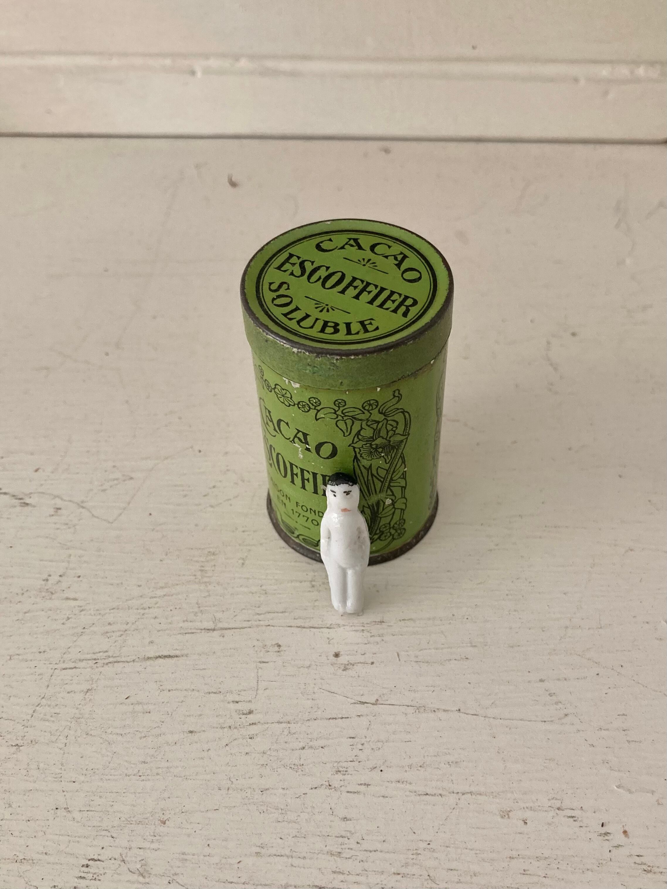 フランス中南東部の都市サンテティエンヌで1770年に設立されたチョコレートファクトリーESCOFFIER(エスコフィエ)のカカオパウダー用ミニチュアサイズの古いティン缶です。