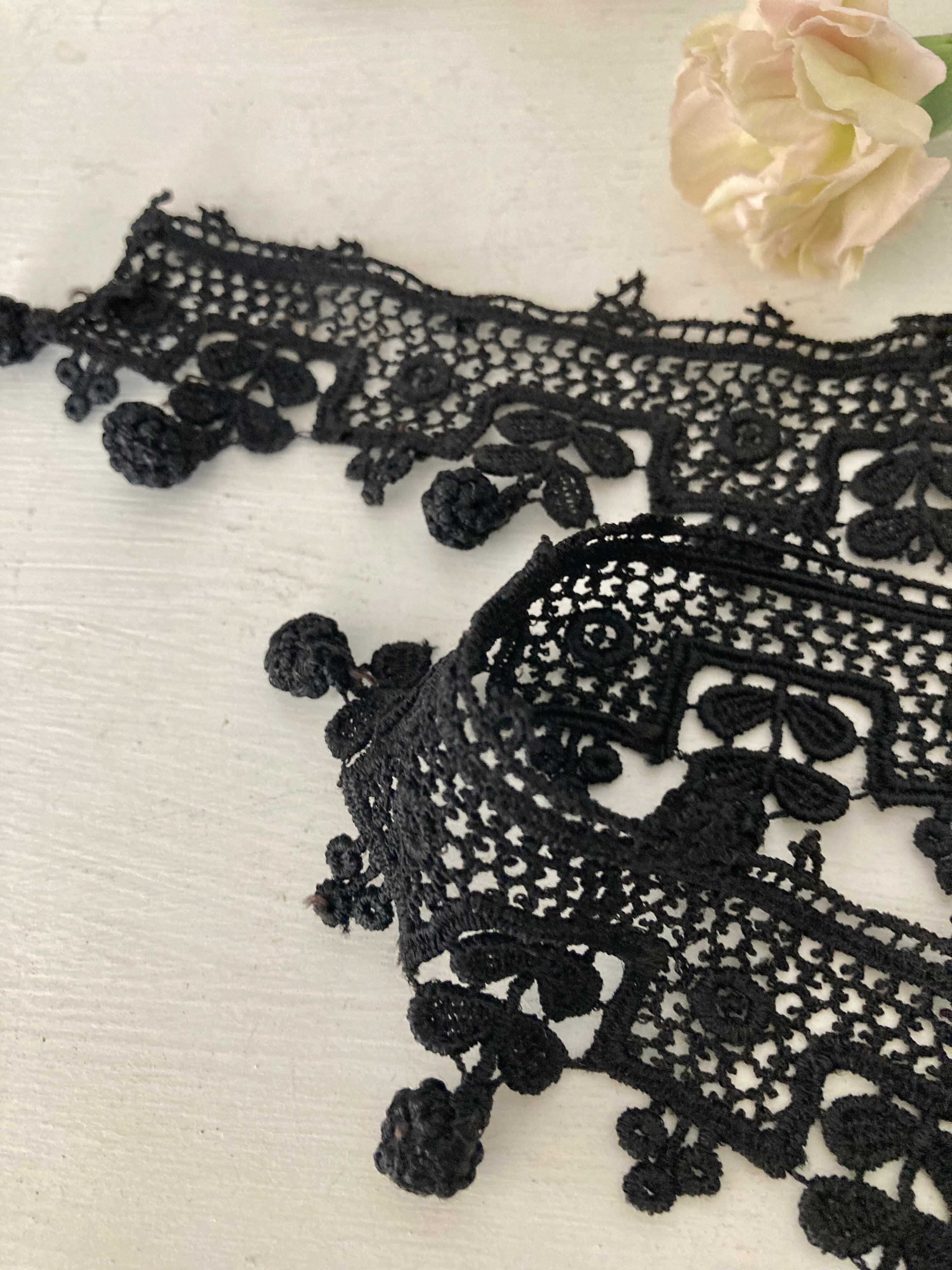 シックなノワール(黒)のレース飾りにはポンポンが沢山付いていて可愛いさもあります。