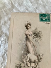 薄っすらシミや変色、角に痛みと破れはありますが、繊細で写真のようなヴィエノワーズスタイル(ウィーン趣味)のアンティークポストカードは一度手にするとコレクションしたくなるような魅力があります。Paris消印