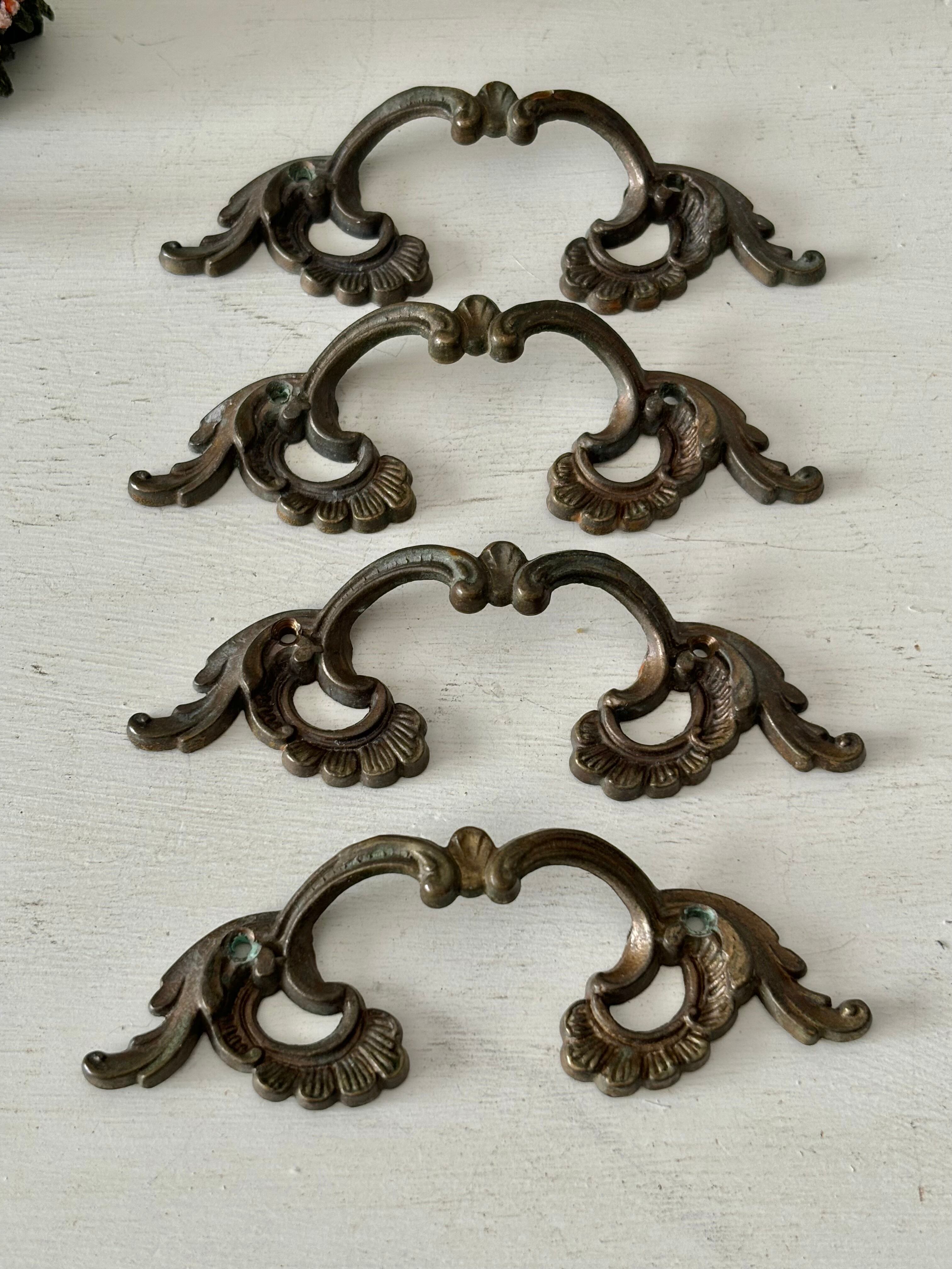 波打つロカイユが美しいハンドルはパリの蚤の市で出会ったもの、長い年月を経てメタル表面は落ち着きのある色に変わっています。在庫は4つ、小傷や所々に錆などありますが、状態にあまり差は無いのでこちらで選んで発送をさせて頂きます。